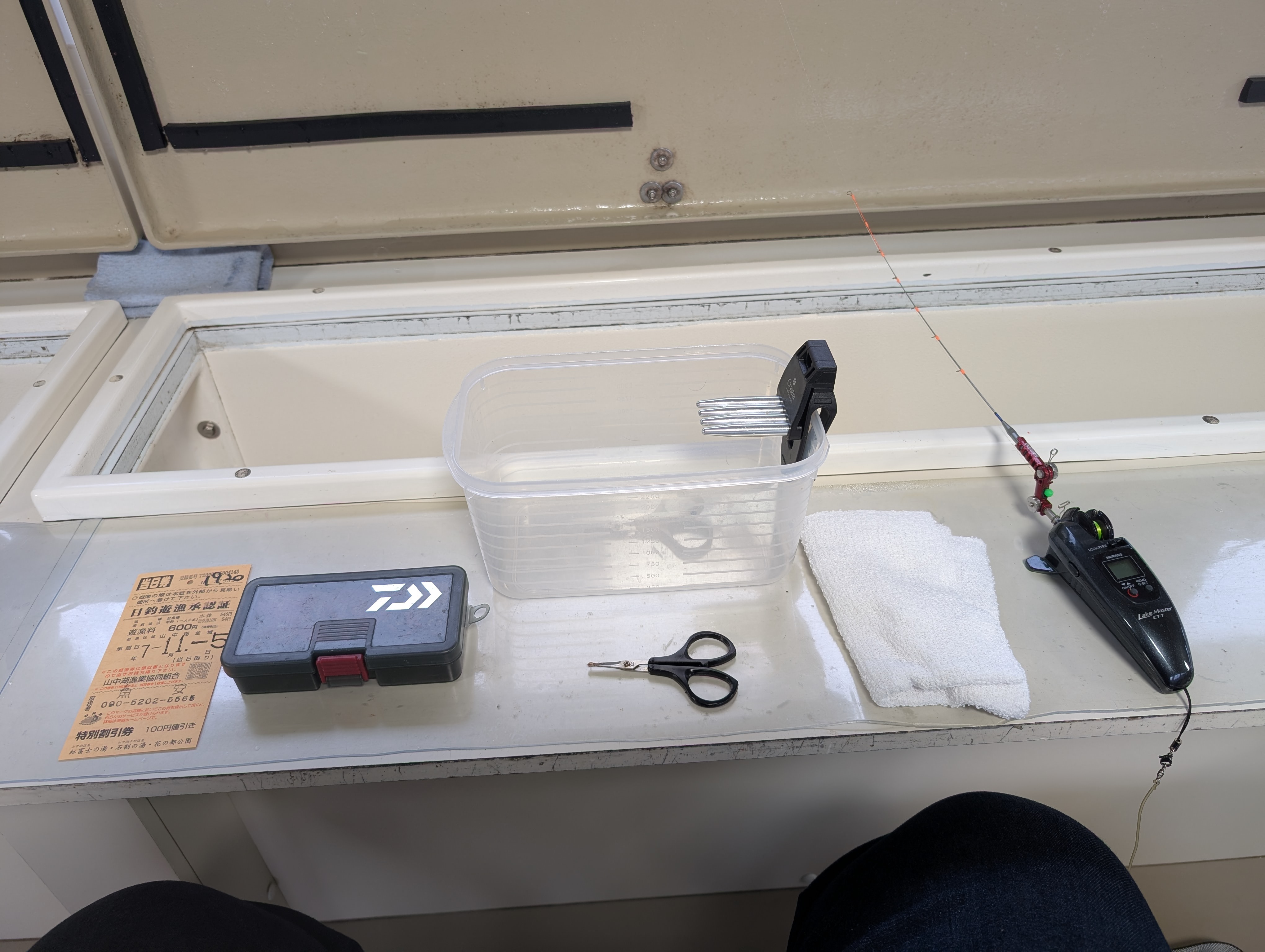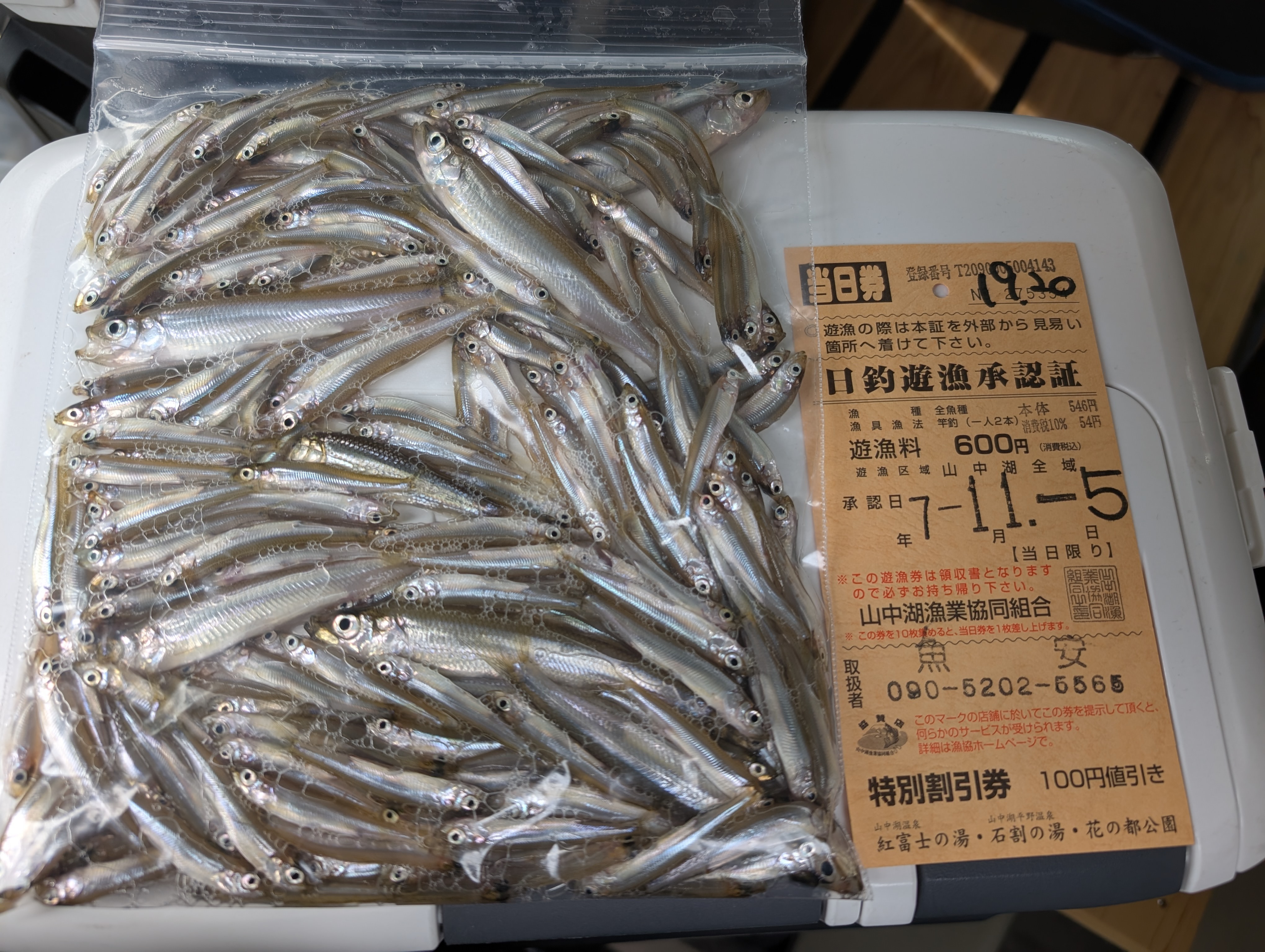そろそろ山中湖周辺の紅葉が見頃なので、紅葉を見るついでにワカサギドーム船へ釣行。いつも行くドーム船がお休みだったので、今回は「うおやすボート」さんというドーム船を初利用しましたが、船内がきれいで、椅子も大きくて体が大きい私でもゆったり釣りができて快適。