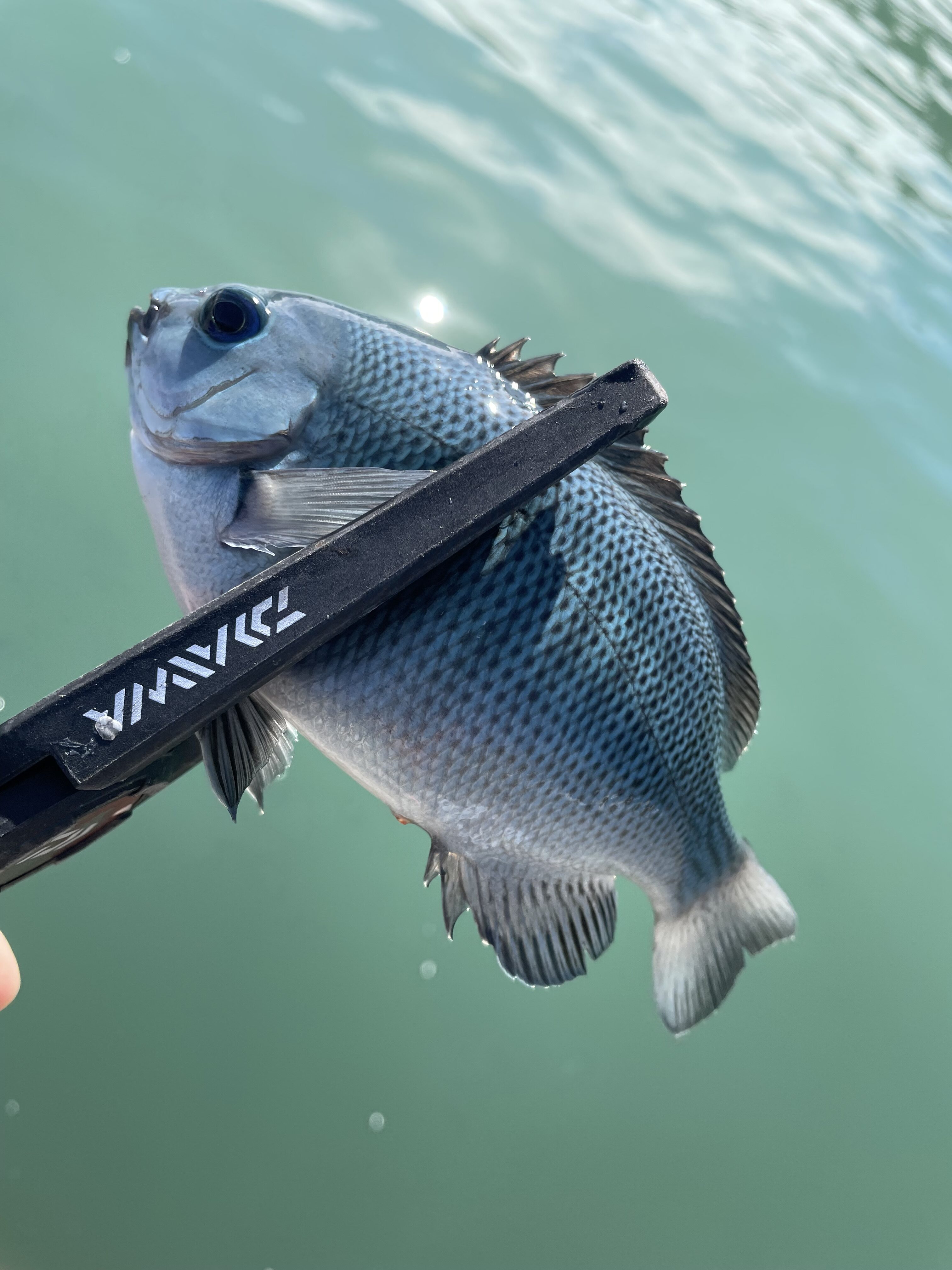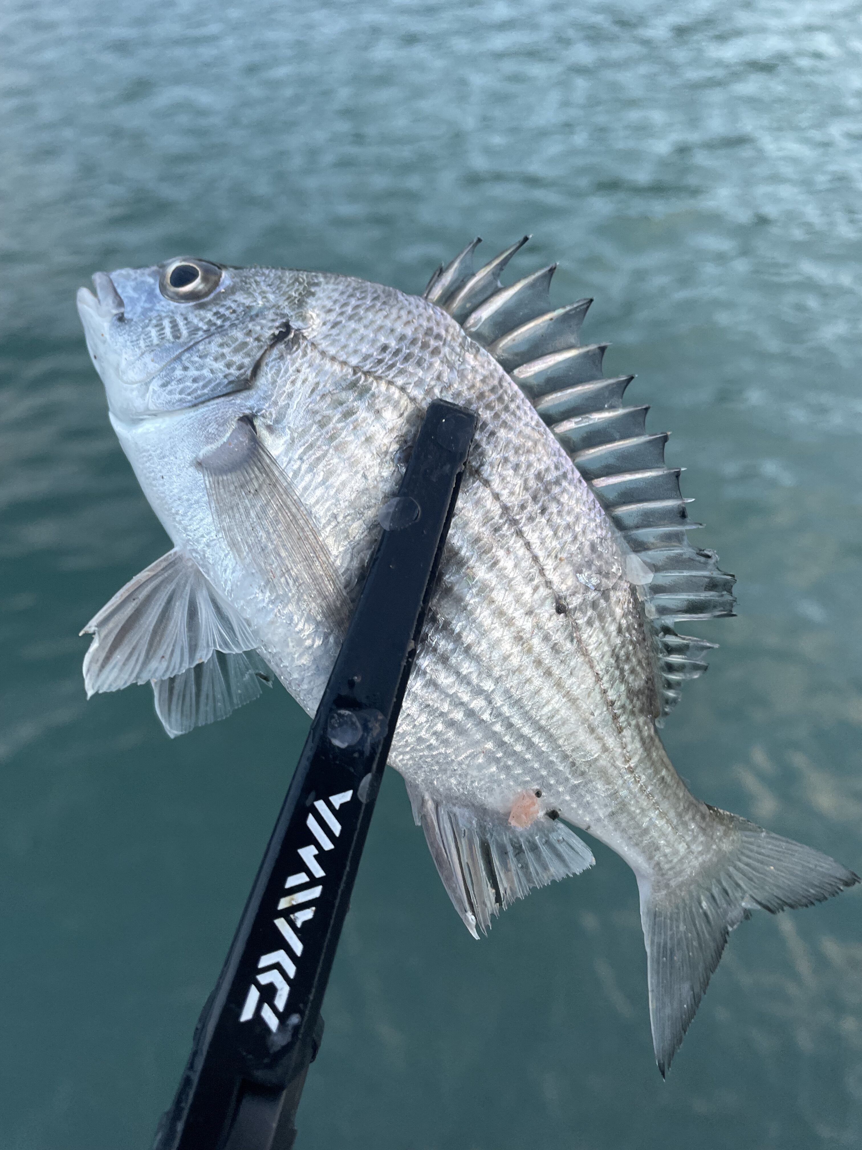 空いてるスペースがあったので、早速釣り開始です😊しばらくエサを撒いてると、コッパグレの群れが来ました💦
