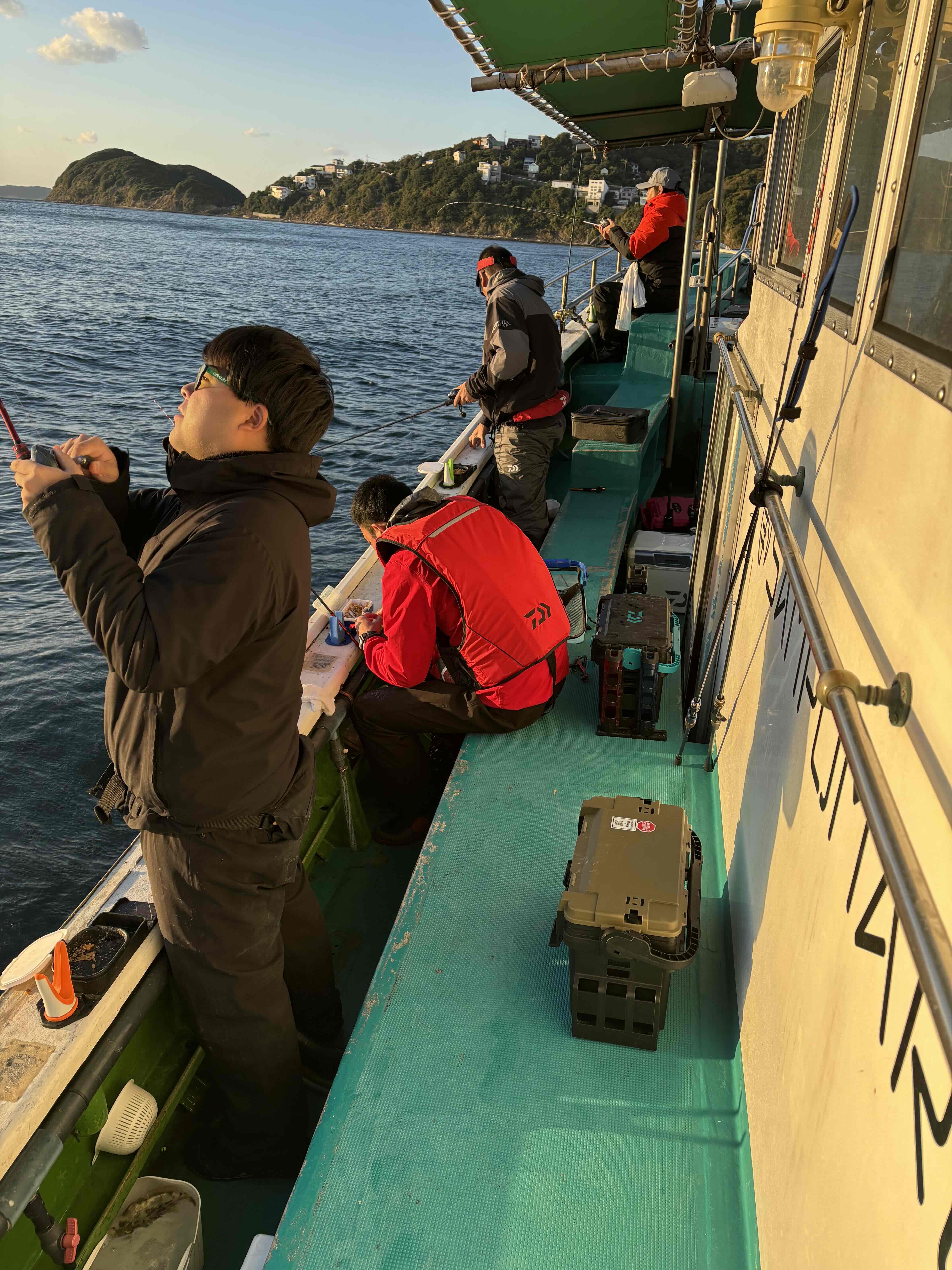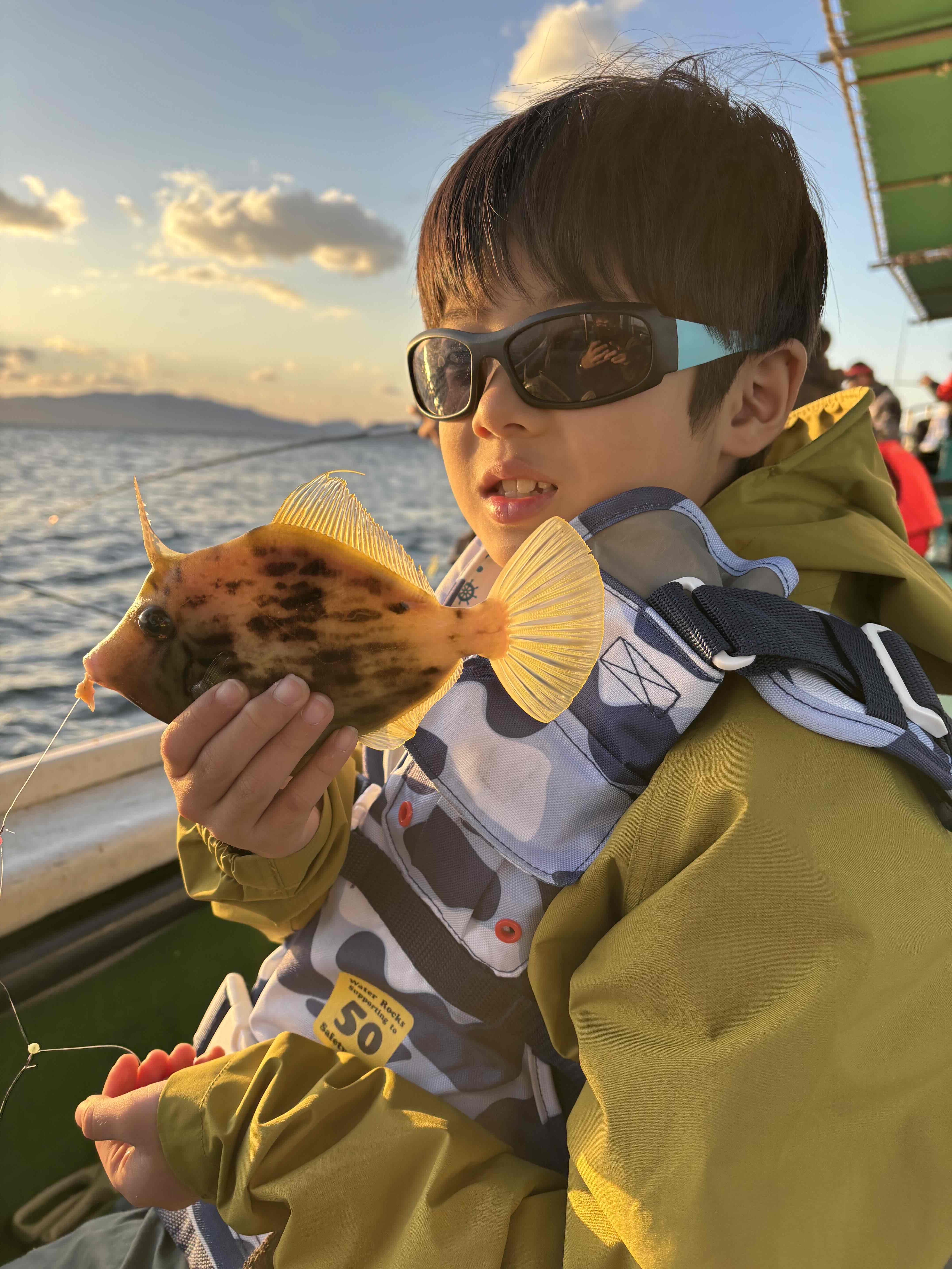 午後便でのカワハギ釣行会 ファミリーの方 女性の方 初めての船カワハギなどカワハギ釣りをしてみたい方多数での出船 小学生の方も3名あり 天候が良くなく風が強い中出船 ポイントも風をかわせるポイントのみ 初めは仕掛け エサの準備 誘いなど初めての方など中心にレクチャー 早速ヒットでカワハギを釣られる方も多数 アタリは多く外道のチャリコ ベラなど多く苦戦 潮も速くなり釣りにくくなるとお祭りも多発 仕掛けもロスも目立ってきます。カワハギはポツリポツリと釣れる程度 大型も少なく釣れていない方もいる状況 夕日がさしてくると状況が一変ヒットラッシュ ダブルヒットもあり船中大忙し この時間を逃さないと早速針を変えてヒットに繋げていきます 今回はカワハギが仕掛けについてきている状態でのヒット(潮が速く底でのアタリが少ない)ハリをキツネ系に変えるとヒットにつながりました。女性の方が大型27cmをゲットして中学生の方も7匹 トップで12匹 平均4~5匹ありました。 これからがカワハギシーズン本番です。チャレンジしてみてください。