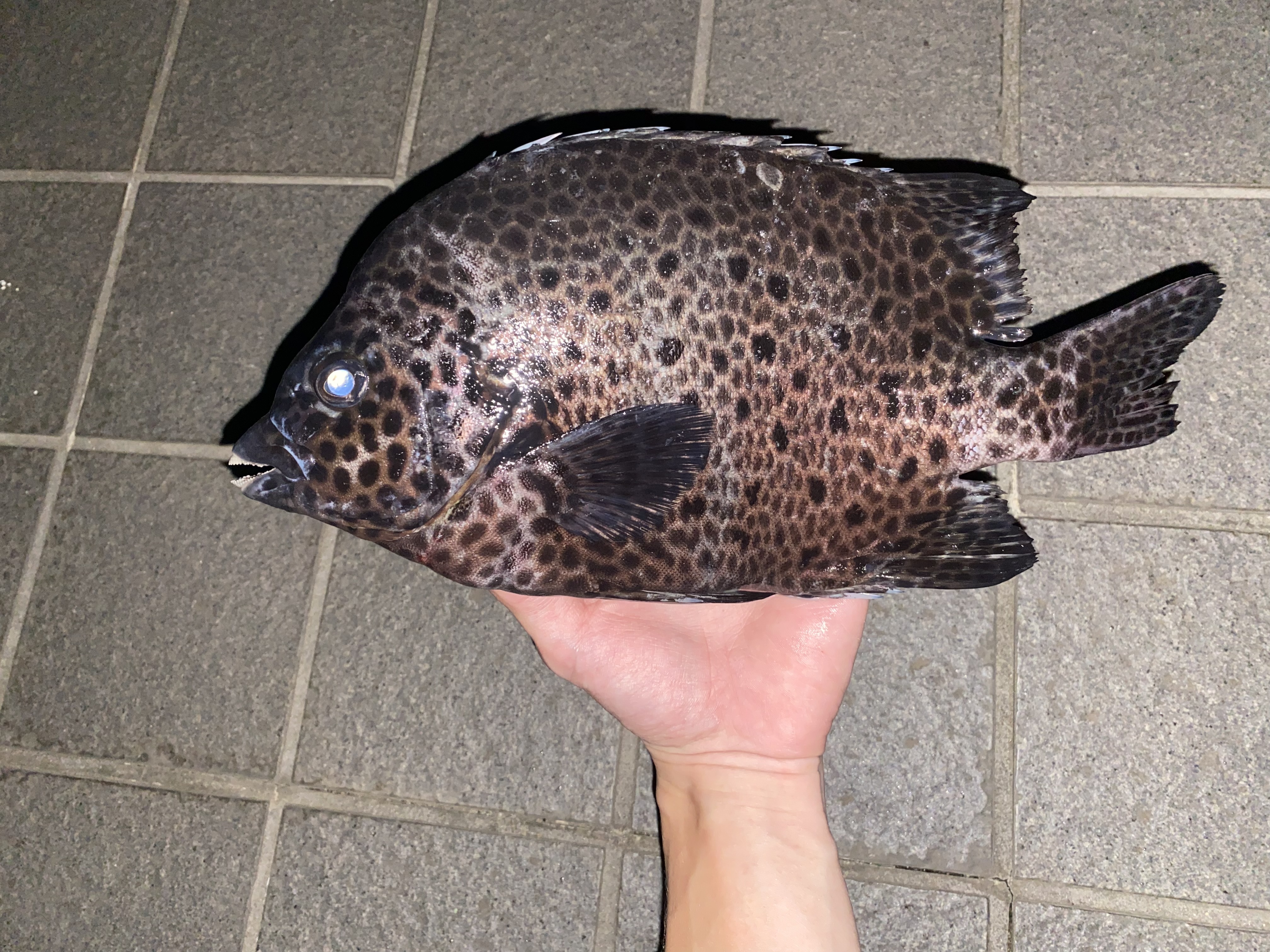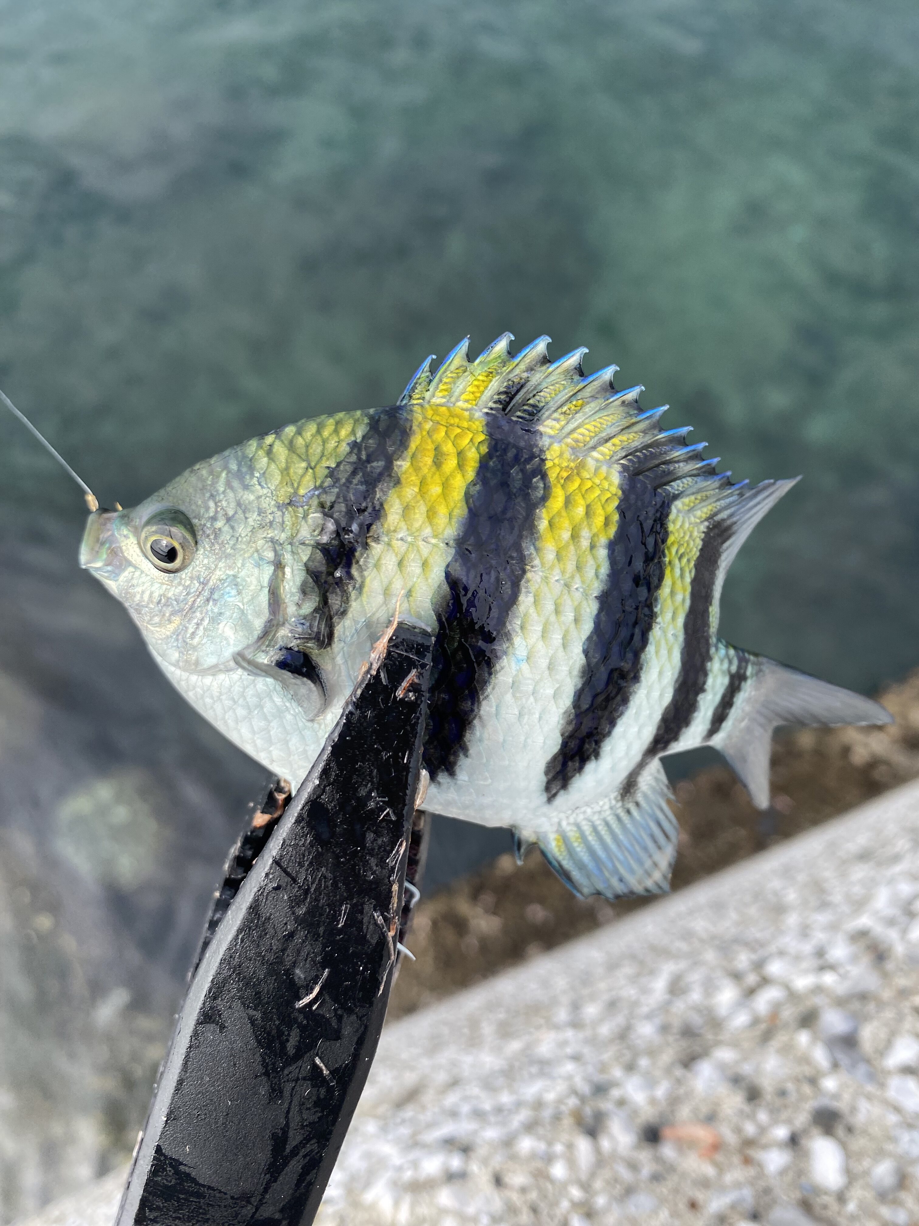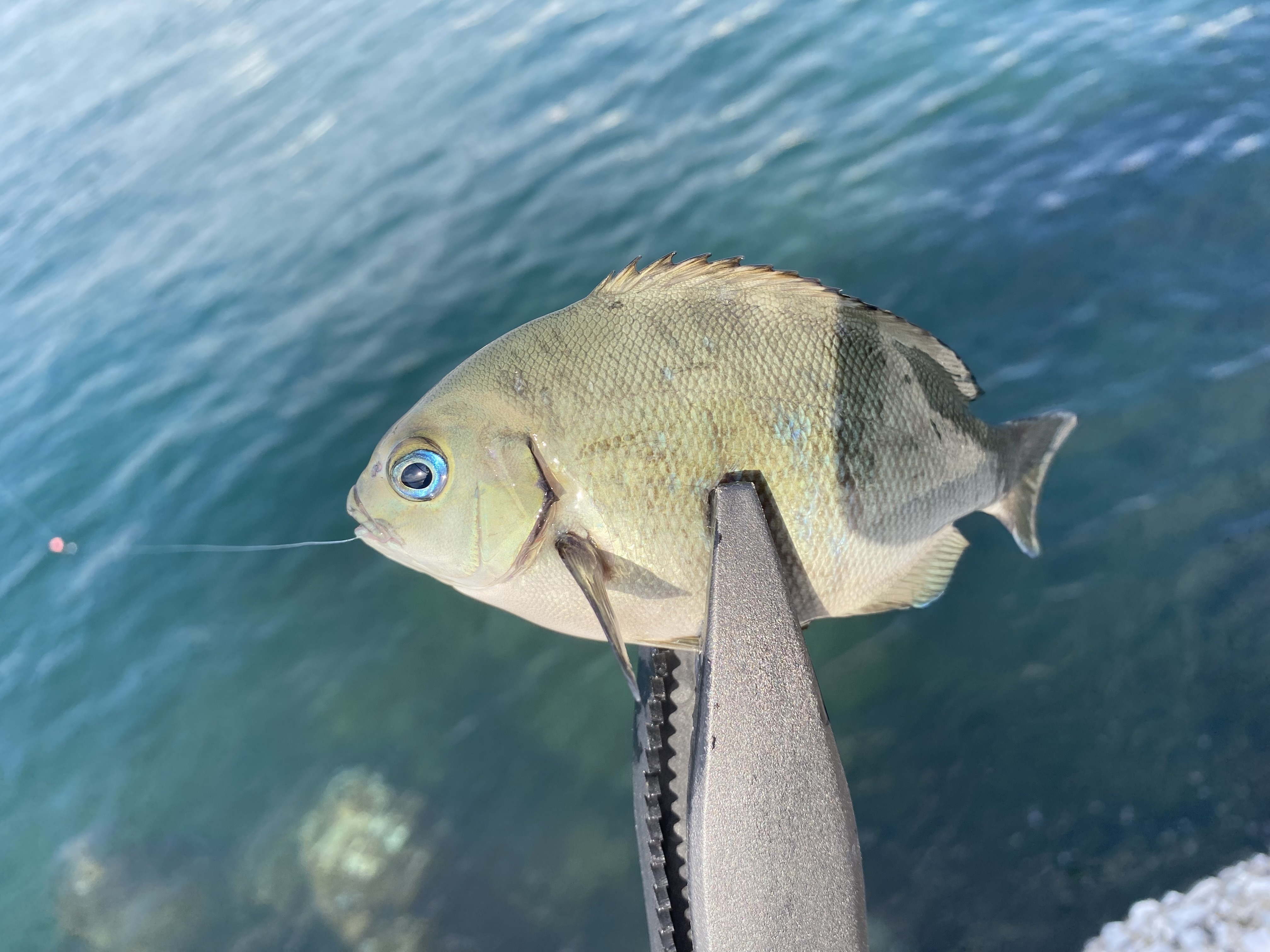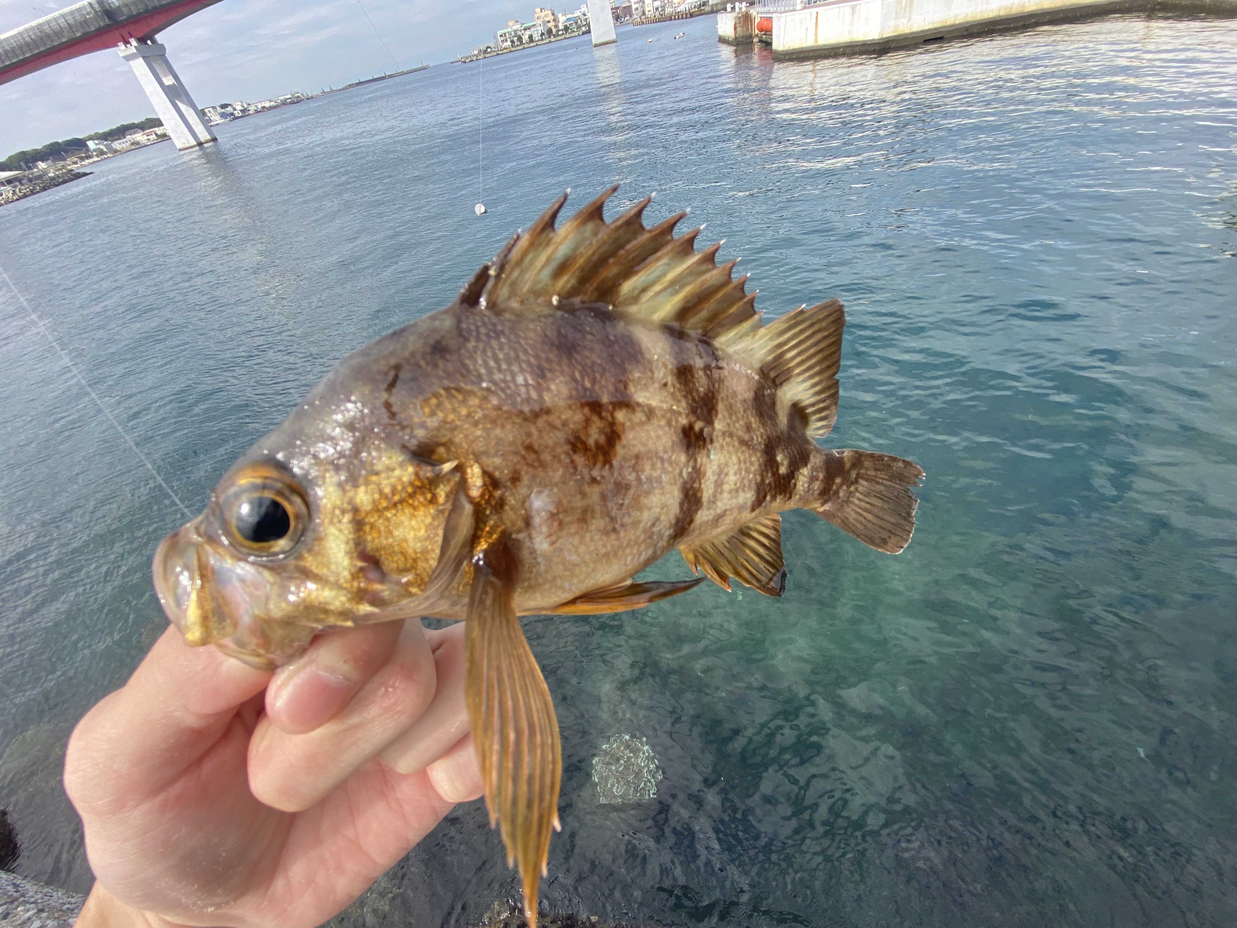 シモリ玉がいきよいよく吸い込まれすかさず合わせを入れ、ファーストフィッシュは手の平より少し小さいグレ❗️その後もテトラの際、底、海藻付近と攻め方を変えながら探っていると手のひらサイズのメバルやキタマクラ、安定のアイゴがたくさん釣れてくれました!