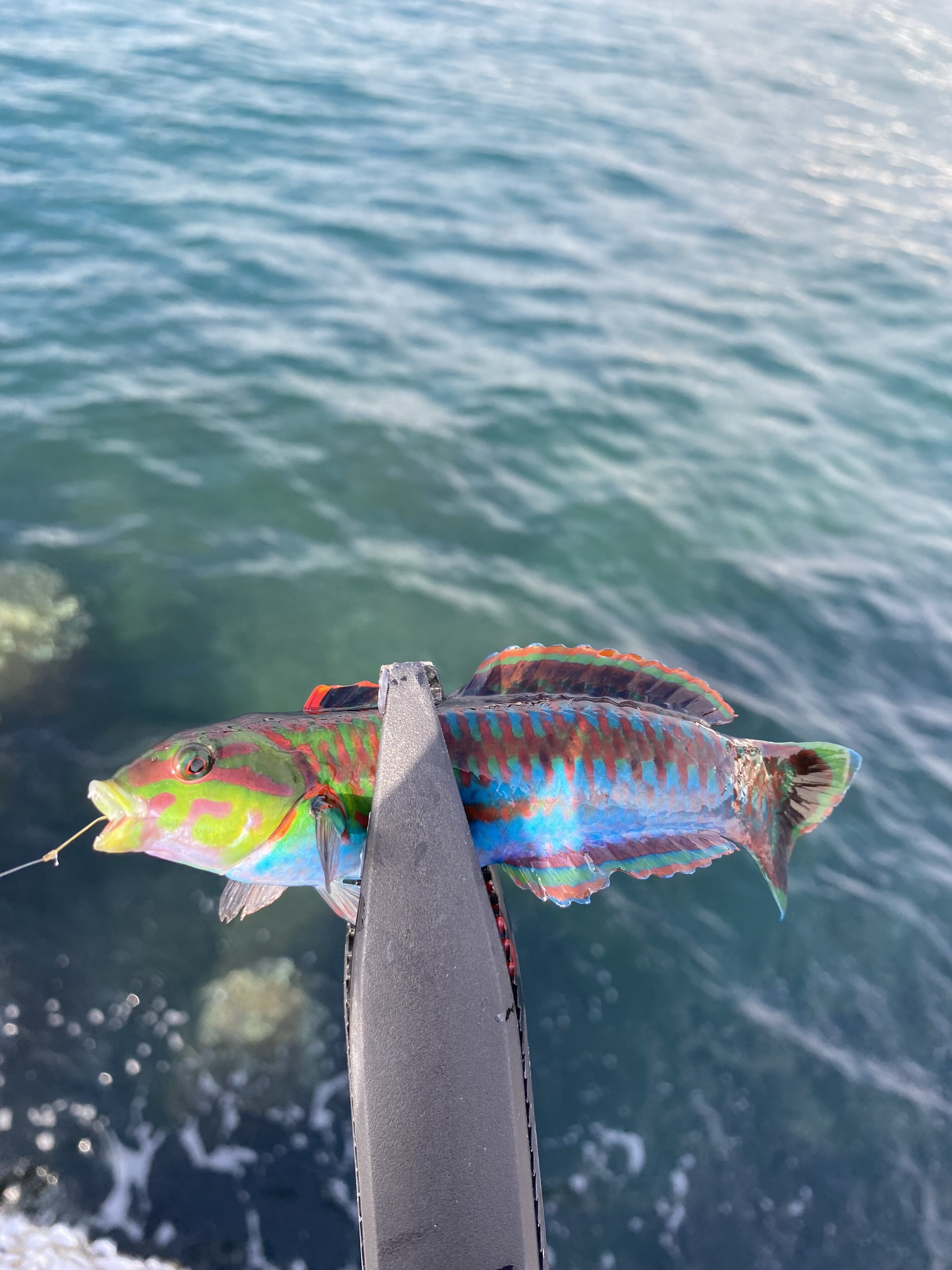 するとコッパグレ、キタマクラ、カワハギ、ベラなど色々な魚種がいることを確認でき、道糸2.5ポンドに袖針6号を結びさっそく仕掛けを投入‼️