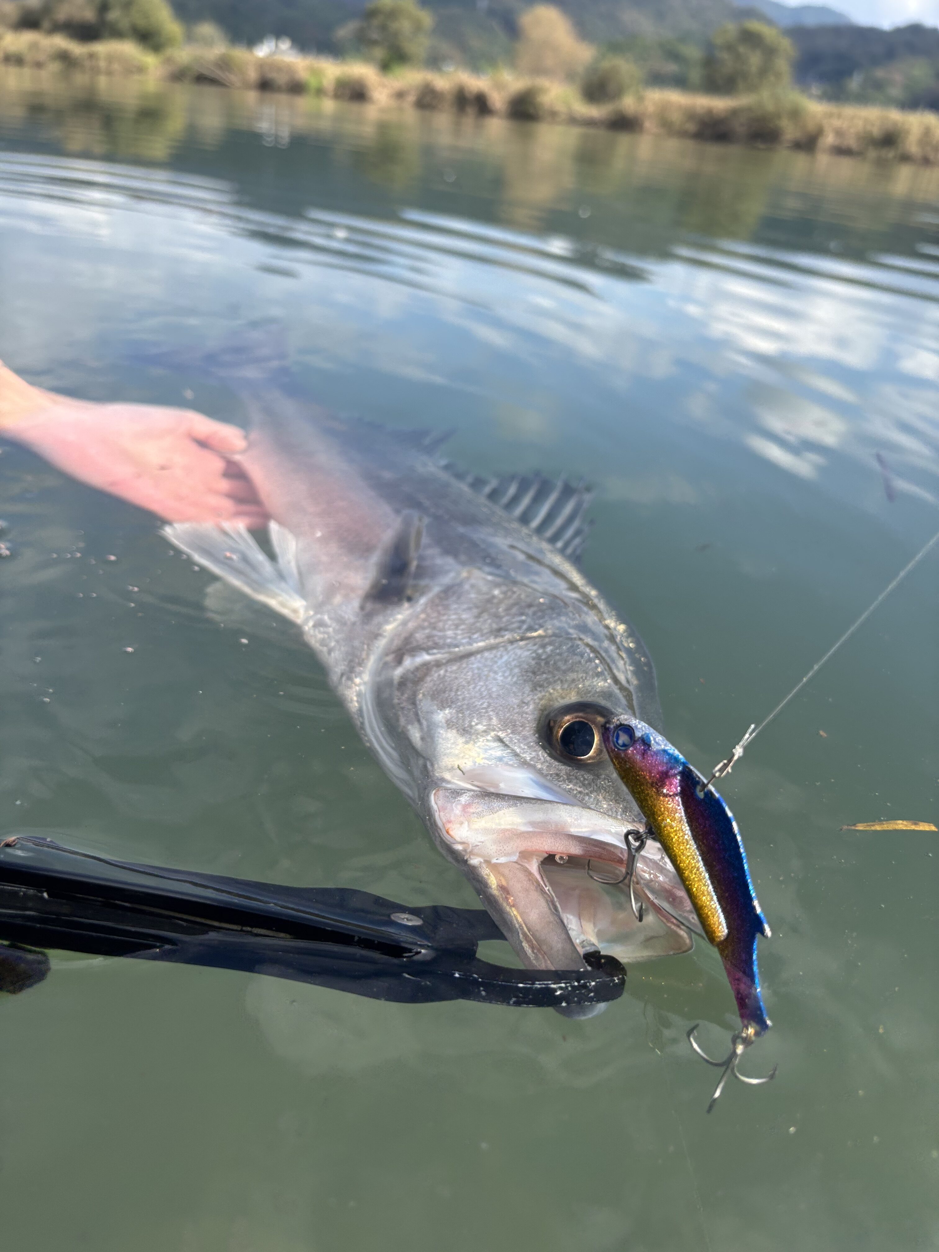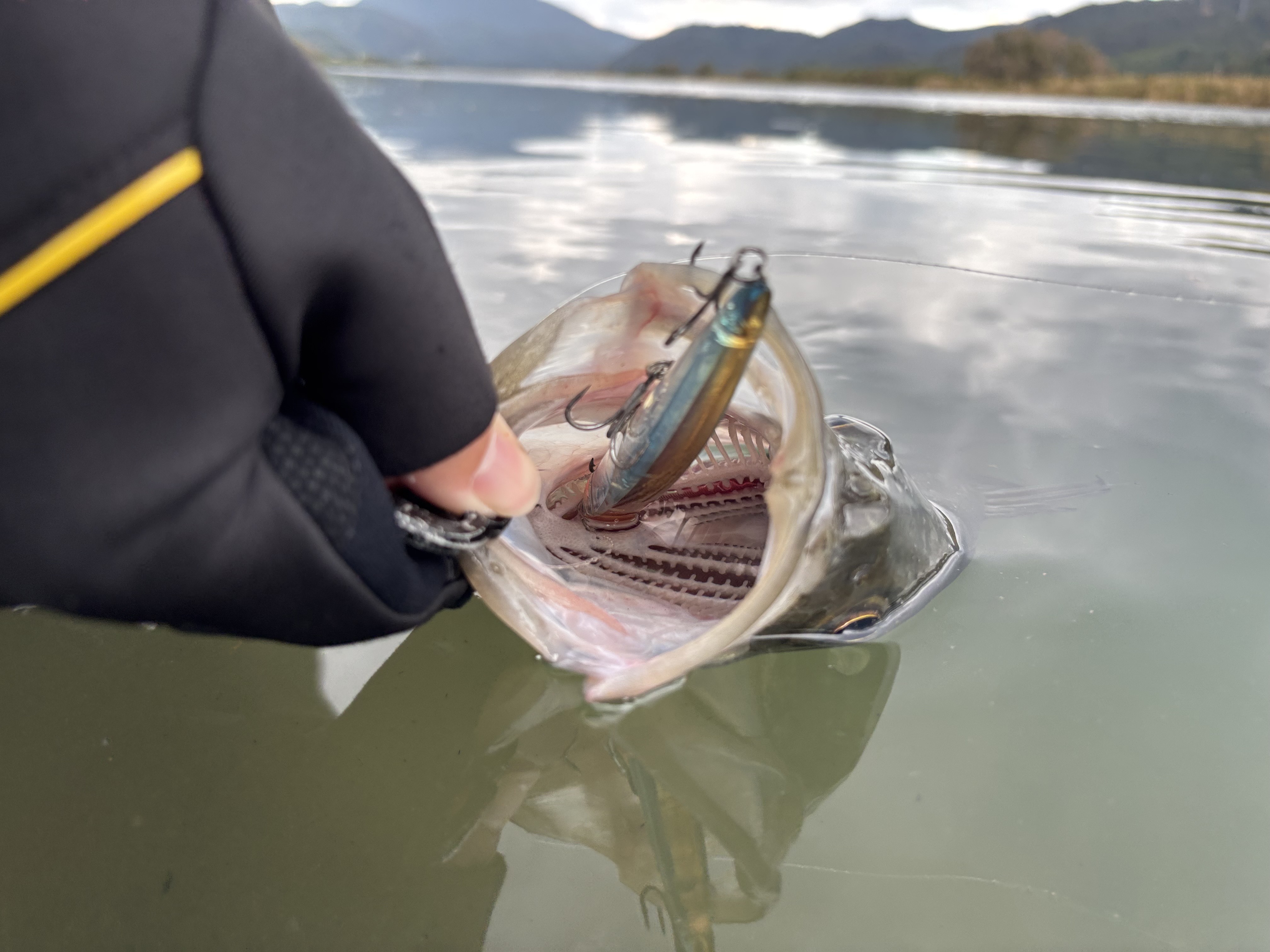 気を取り直して本命のデイゲームへ、上流よりも水深がある中流域を選択してバイブレーション主体に探っていきます。