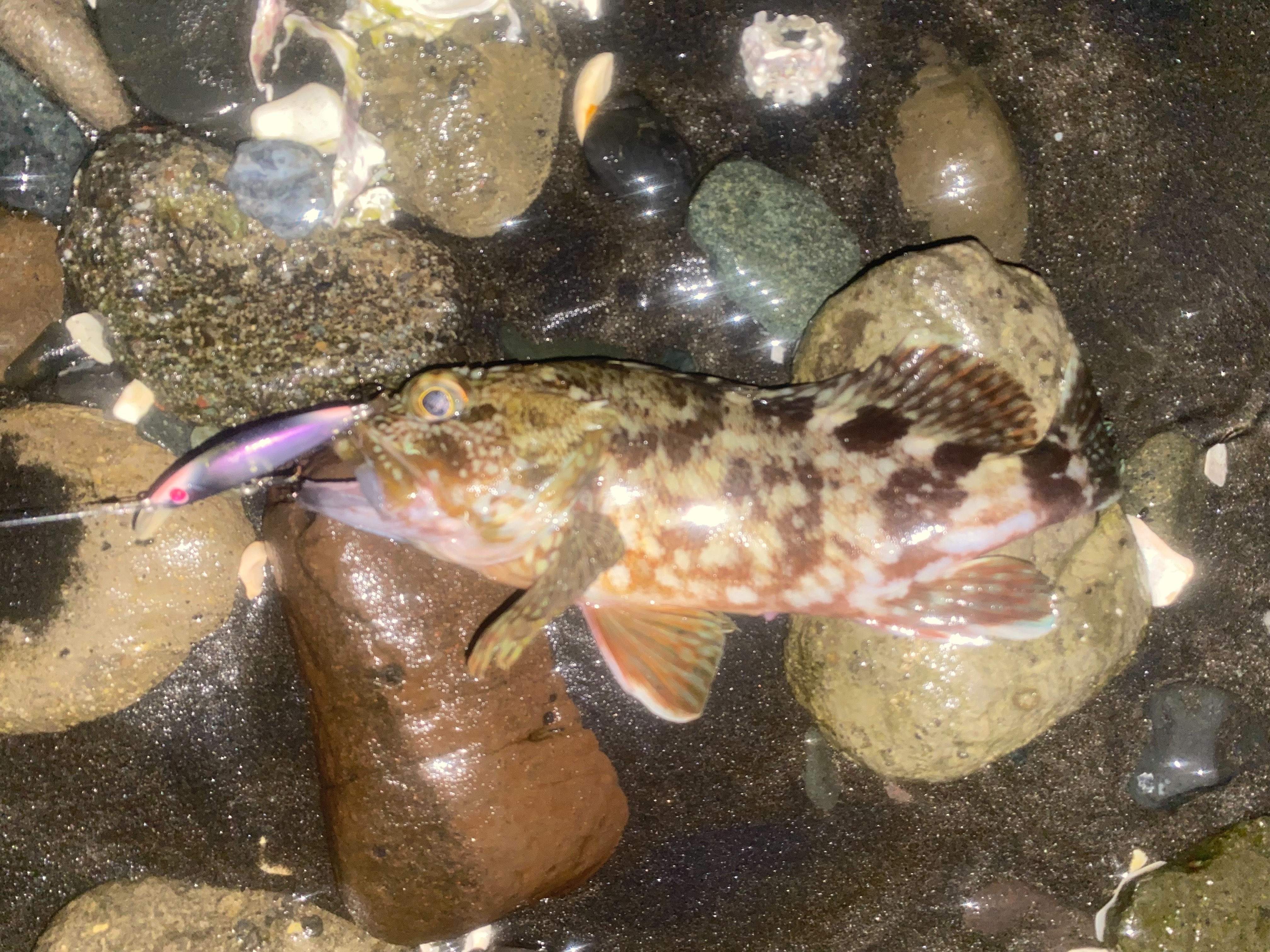ピロピロしている小さいベイトが入っていて、たまにライズもありトップ(タックルハウス ショアーズリップル)から試すも無…メバリングで超絶信頼しているミノー(アピア ドーバー46)でスリッドを通すと反応が‼️しかしミスバイトで乗らず、もう一度ストップさせながら通すとヒット❗️