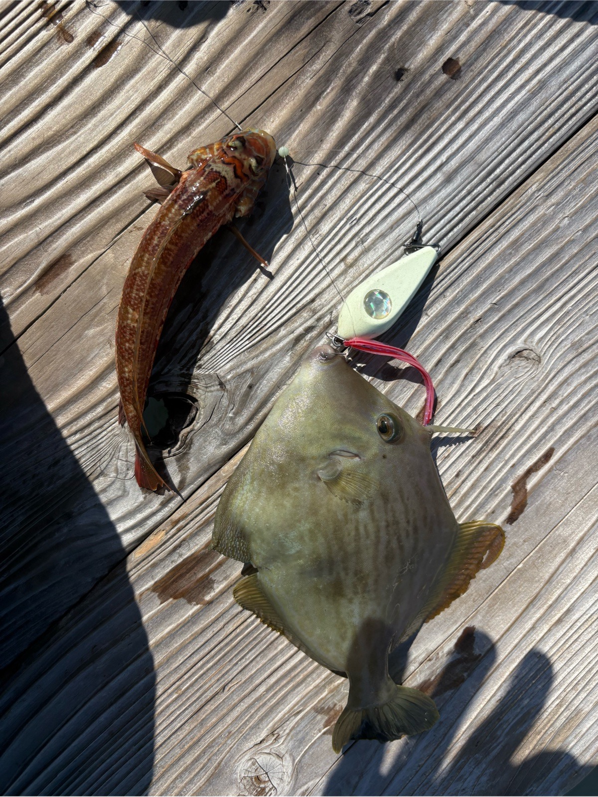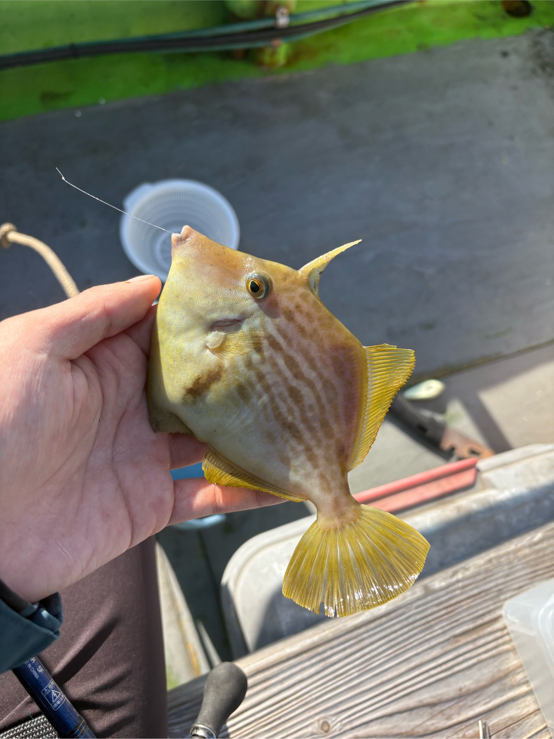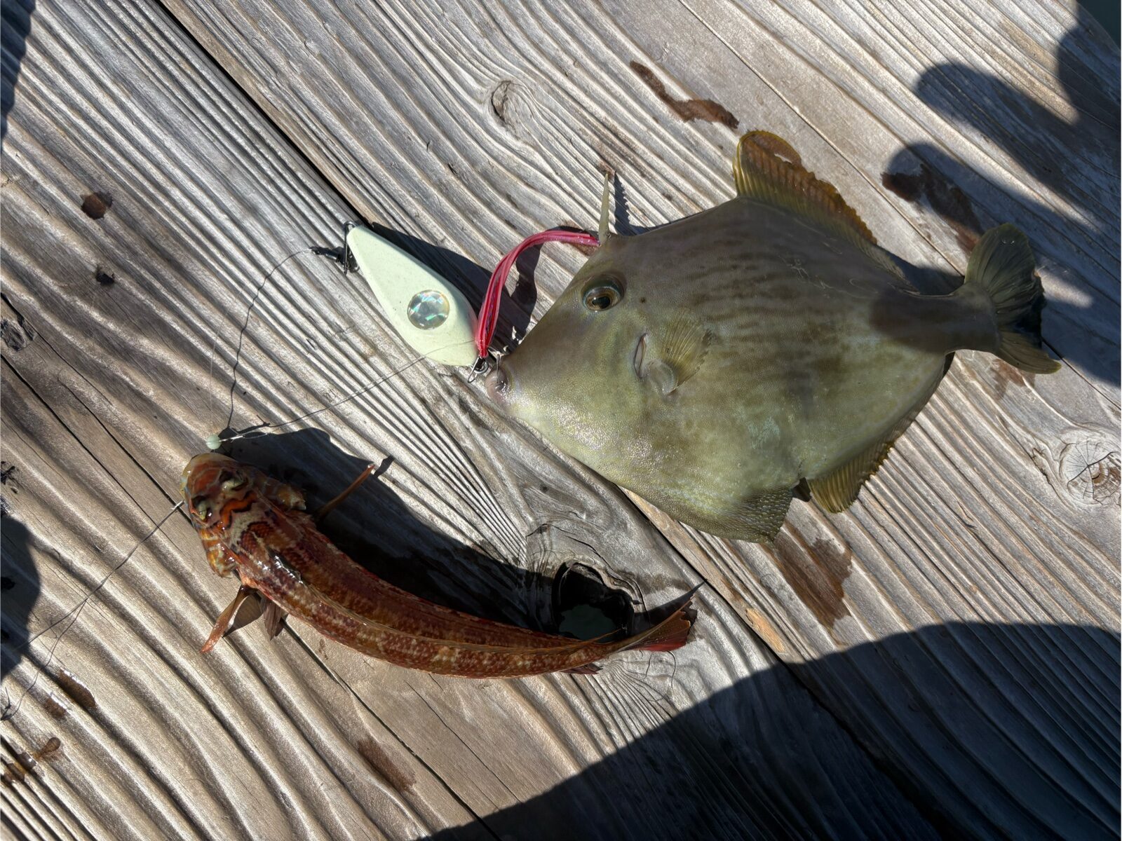 アオリとカワハギはおそらく似たような場所にいると思われるので、ちょこっとカワハギ仕掛けを落とすと1枚釣れました!