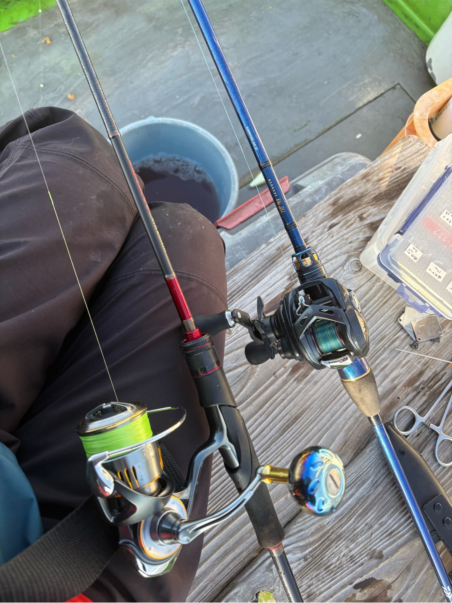 やってはみますが、深場で2度当たったのみ、浅場に移動してからは釣れる気配0、、、 フルキャストしてもすぐに船下で、こればっかりはどうしようもないといった感じです。