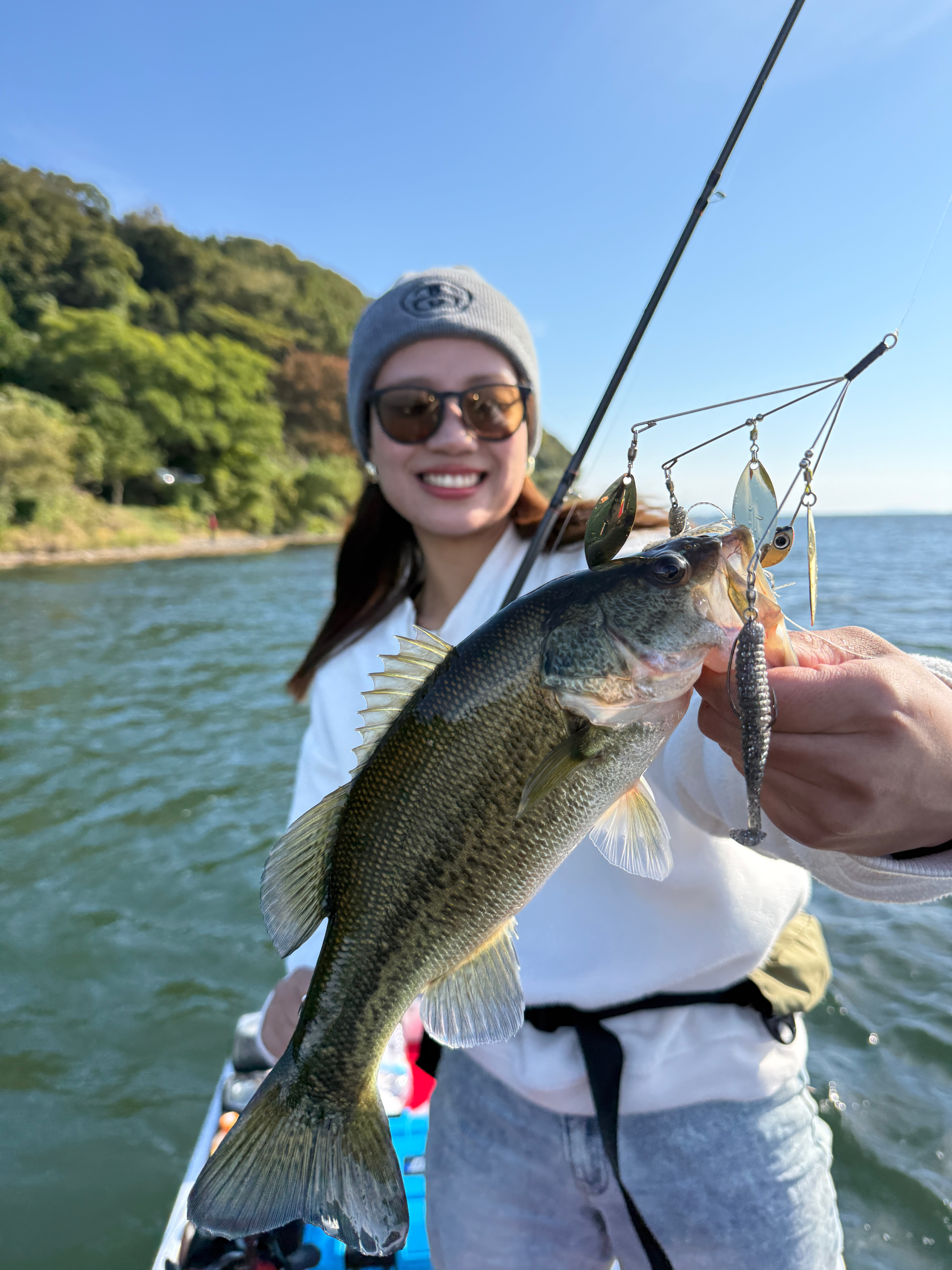 2025.11.11 印刷する 琵琶湖バス釣り🎣⛰️ 魚種 ブラックバス 釣り方 ブラックバス(ボート) 場所 滋賀県 スタッフ 丸谷 侑梨 店舗 本社 釣行日 2025.11.08 コメント 今回は久しぶりに琵琶湖へ行ってきました!天気も良く、風もなく釣り日和。 朝イチは「トップで出ないかな」と期待しながら、高速トゥイッチなどを試しましたが反応はなし。少し移動すると子バスがたくさんいるエリアだったのでデラクーで数釣りを楽しませてもらいました^^ お昼休憩は湖上でカップラーメン!やっぱり自然の中で食べると、いつもより何倍も美味しく感じます^^ 午後からはサイズアップを狙って、「ブンブンオリジナルのベイトスクールスピン」をアレンジしたルアーを使いました!ゆっくり巻いていると、ドンッ!と手応えがあり、少しサイズアップしたバスをキャッチできました‼︎ 綺麗すぎる景色の中での釣りは最高で、とても充実した一日になりました。今回使用した仕掛け(ベイトスクールスピン)は、ブンブン各店で取り扱いがあります。ぜひ使ってみてください!おすすめです🎣 使用した釣具 ロッド CORZZA リール ストラディック