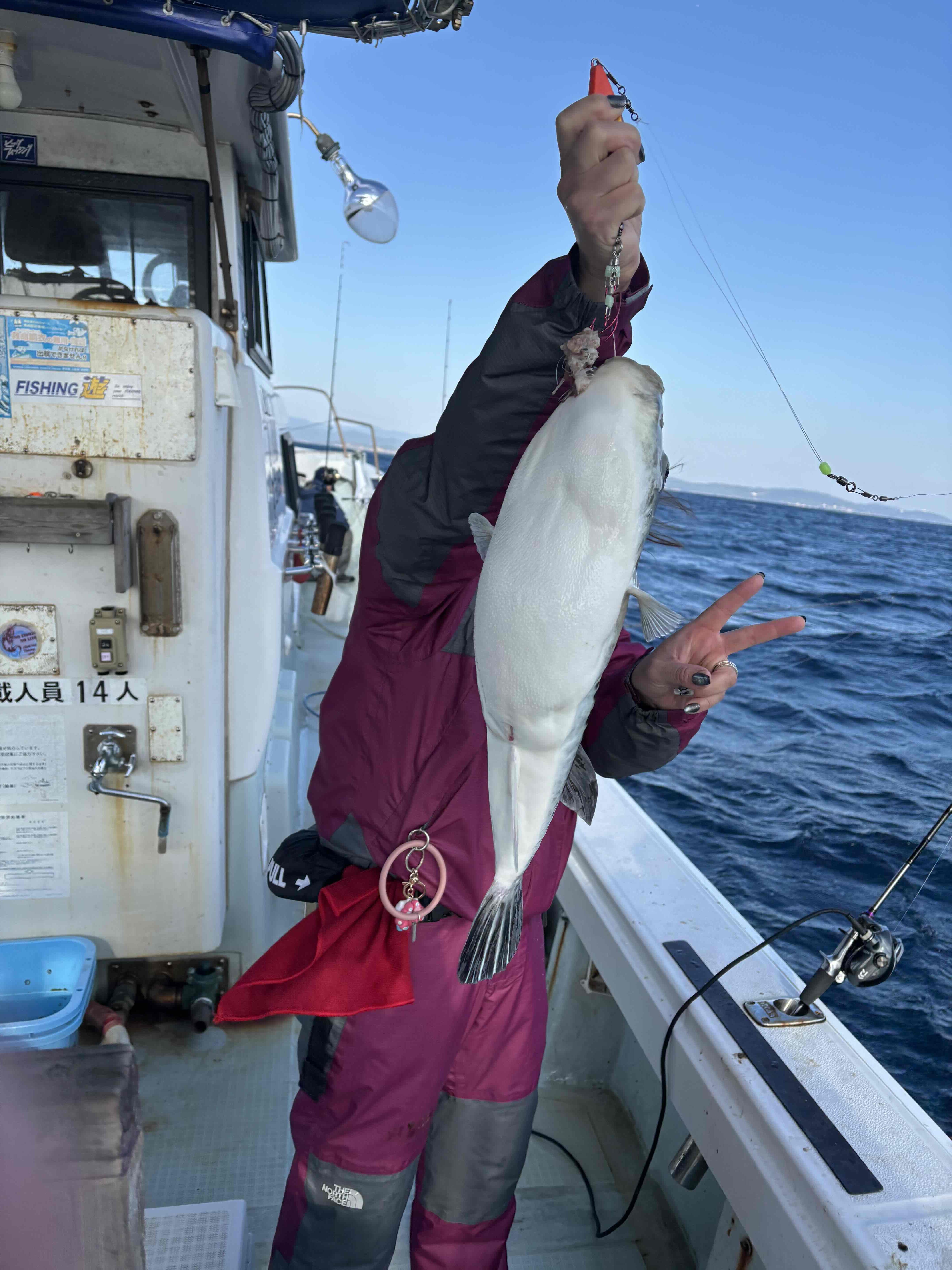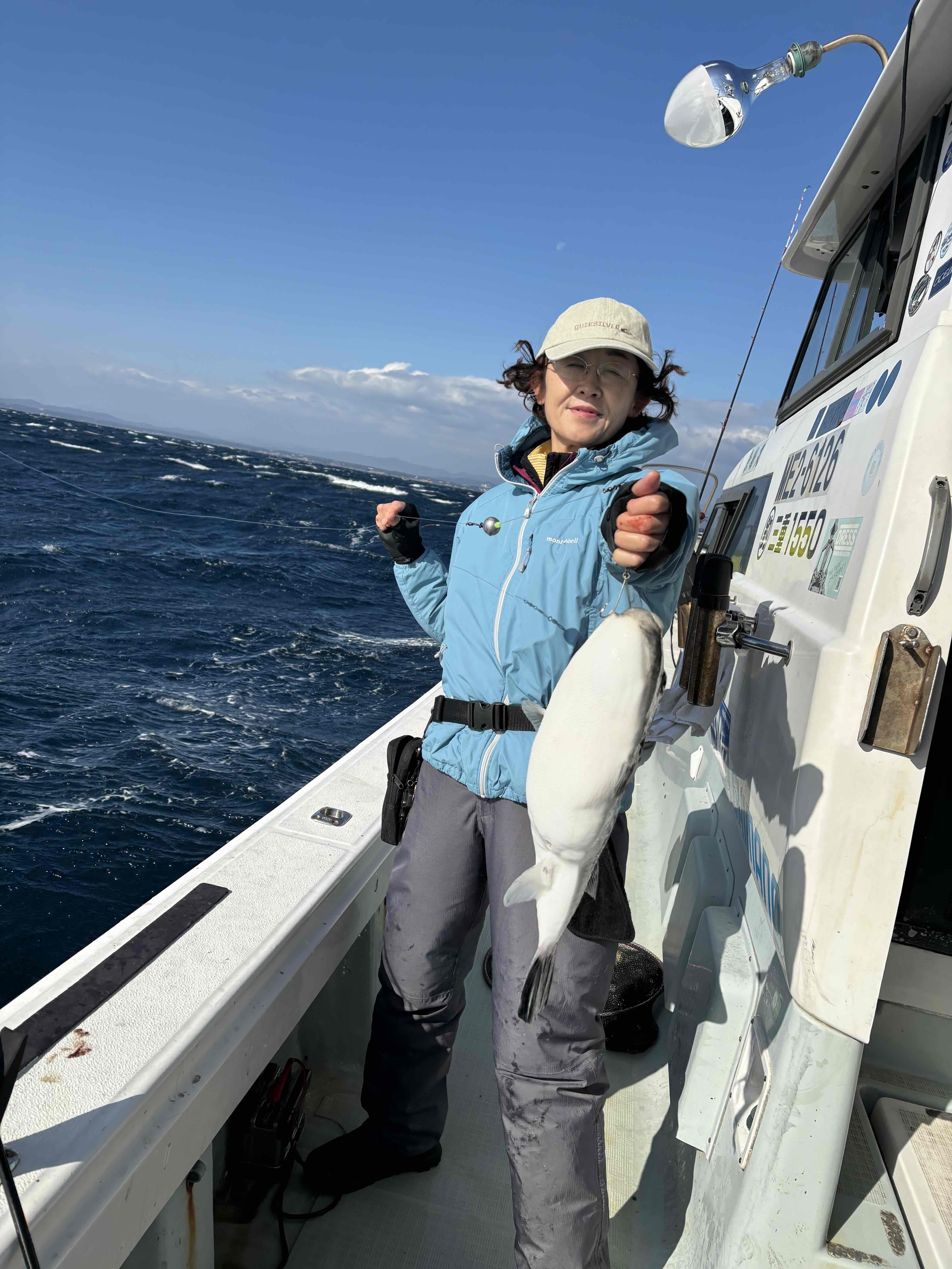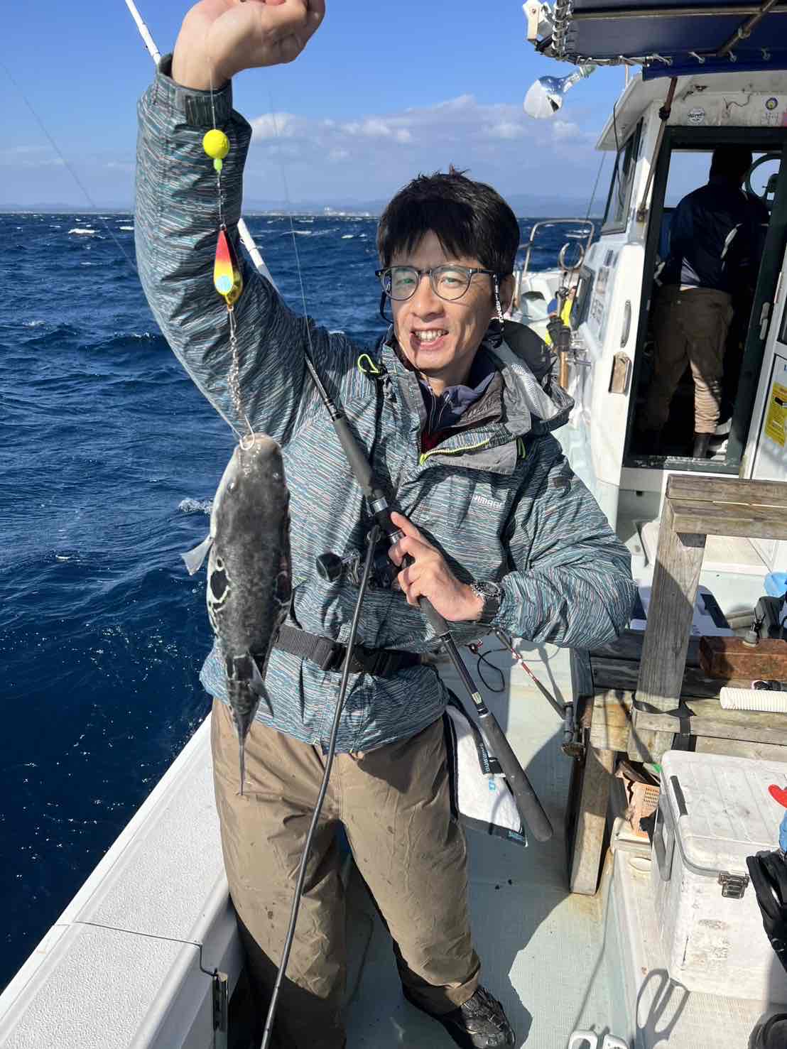 が上がってきました 9時までは天気も良いので早めに釣りたい まわりは釣れているも中々ヒットまで至らず苦戦 麗香さんは2匹ゲット 内1匹は小型の為強制リリース 風も強くなり釣りにくい状態でやっと本命ヒット ゆっくり上がってきたのは少し小型なトラフグでした。一安心です。 その後はかなりのウネリ 風でアタリが取れずヒットも無いまま終了となりました。今季はトラフグも多く釣りやすい状況 超高級なトラフグ釣りにチャレンジしてほしいです。