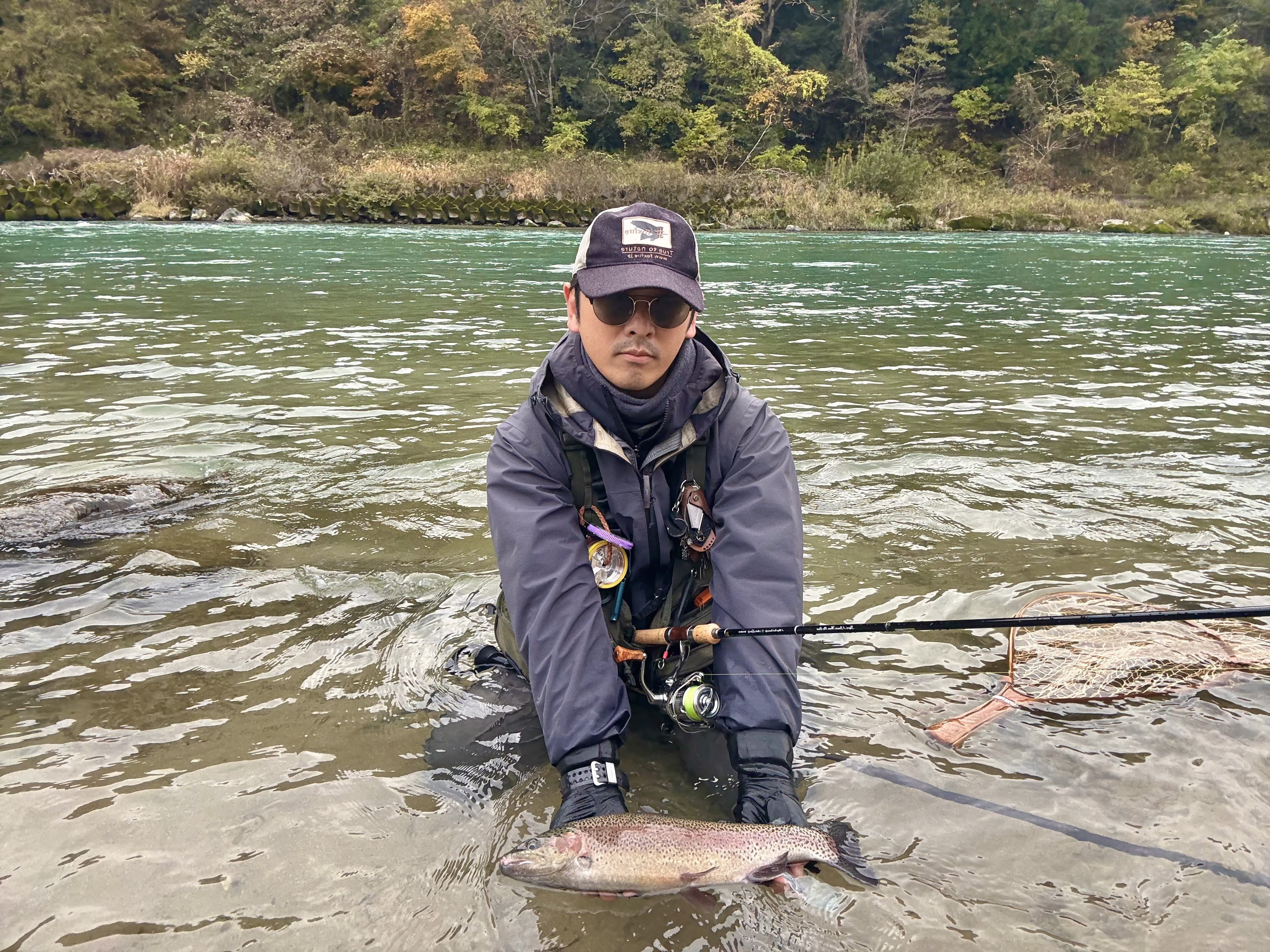 - リトルプレゼンツ:W-47 N3 AQ ZIP ウエーダー、SH-07 ミッドストリームWDシューズ II(ピンフェルトソール)、パスデザイン:PAC-366ウェーディングスタッフⅡ+自作ホルダー