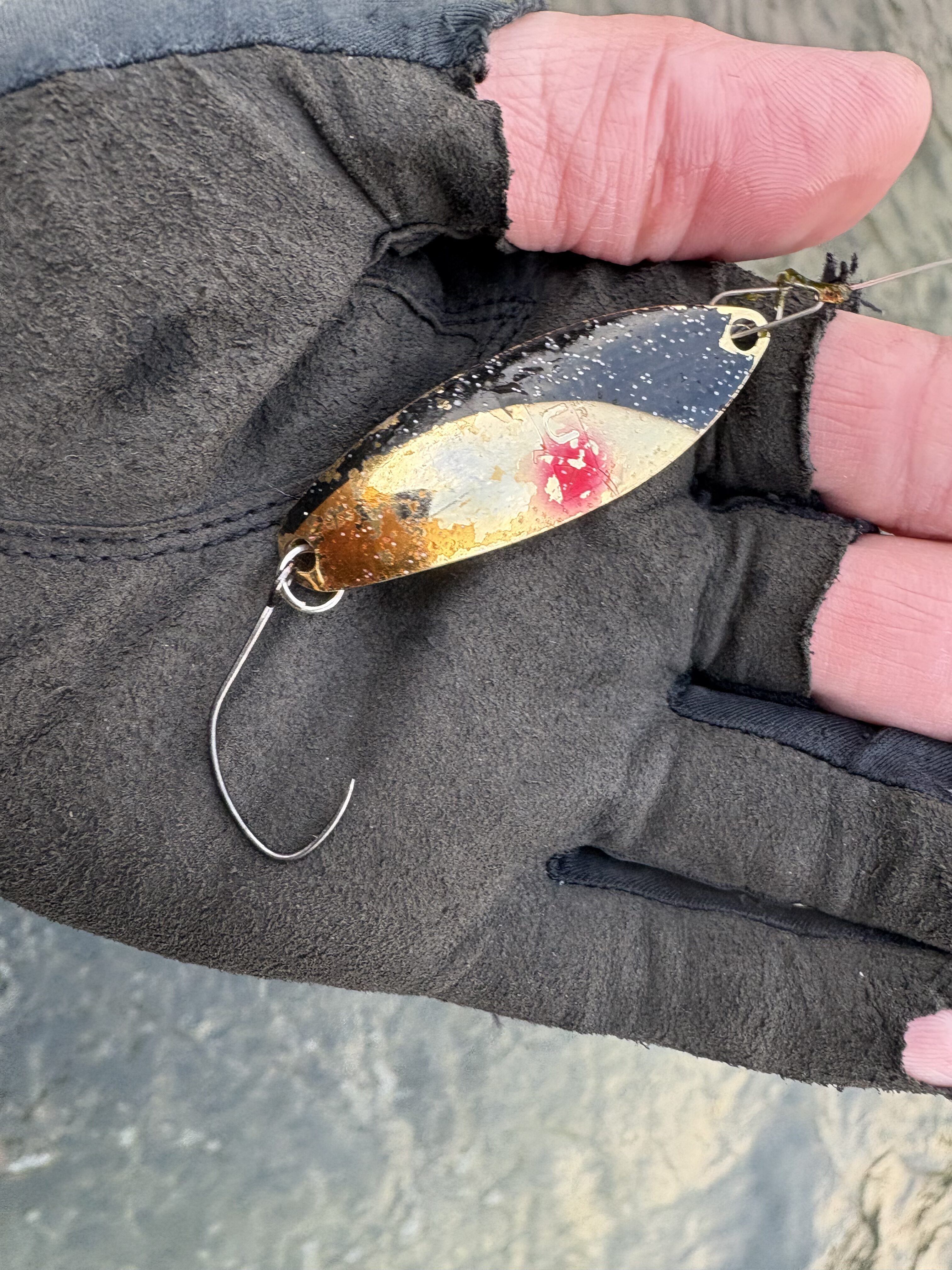 竿が硬くバラシ対策とスプーンを馴染ませたいのでライトタックルに変更