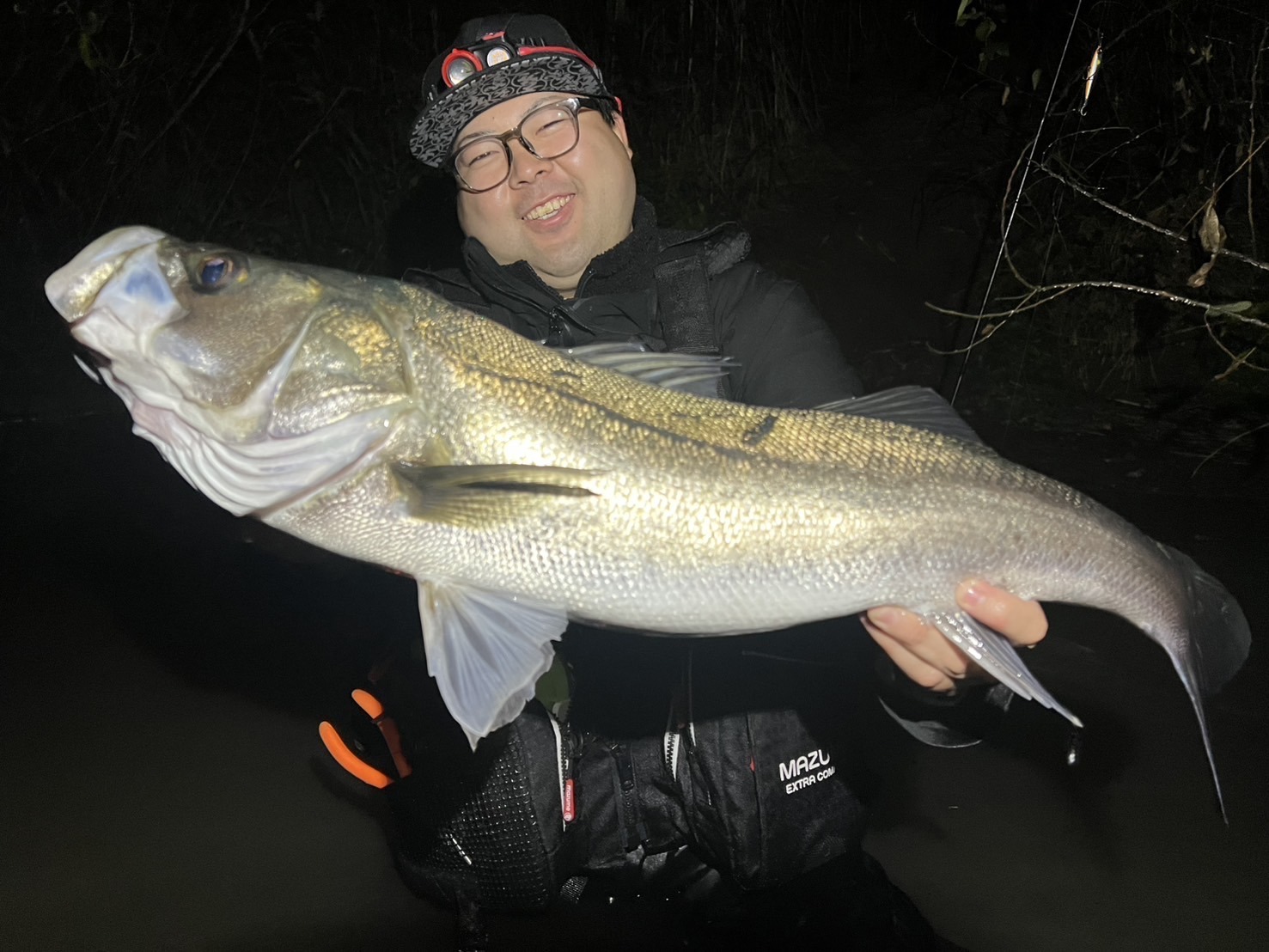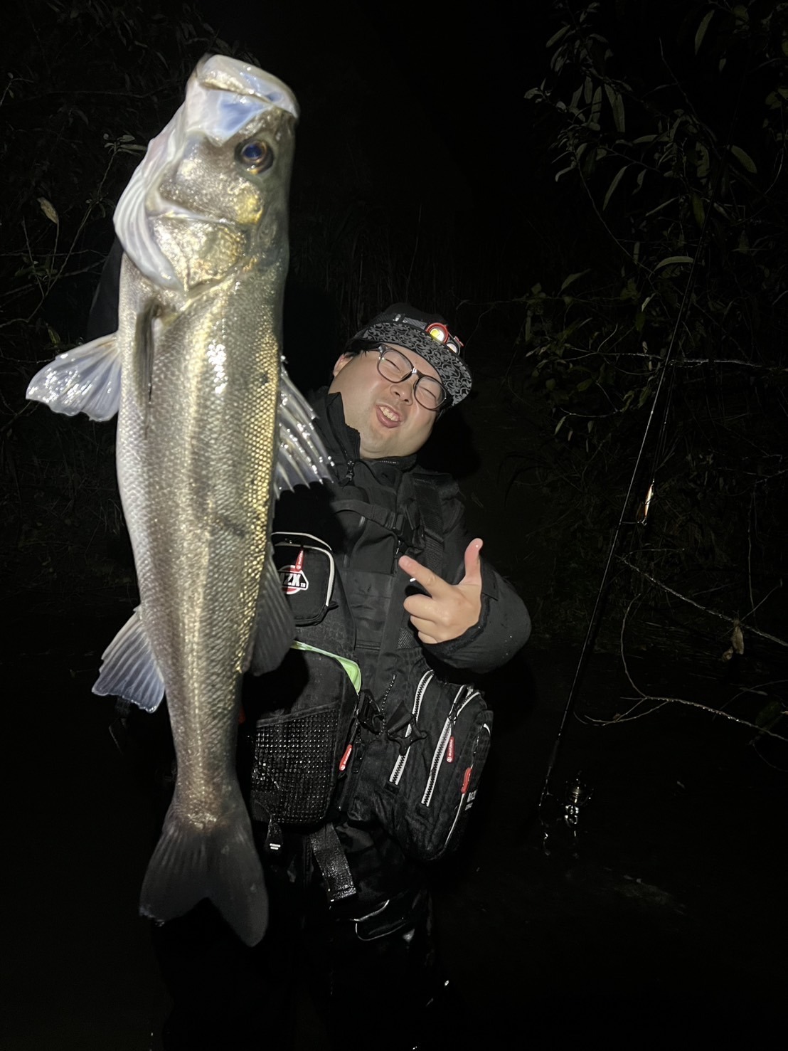 シャローランナーから攻めていくものの、反応なく、、スタッフ藤原はハダラトラップを沖に投げ巻いている様子。するときたと言って竿を曲げてます!!取り込んでみると細身でしたが元気なシーバス😊さすがですね!反応がなくなり2箇所目へ!こちらも水位が上がって魚っけありあり!