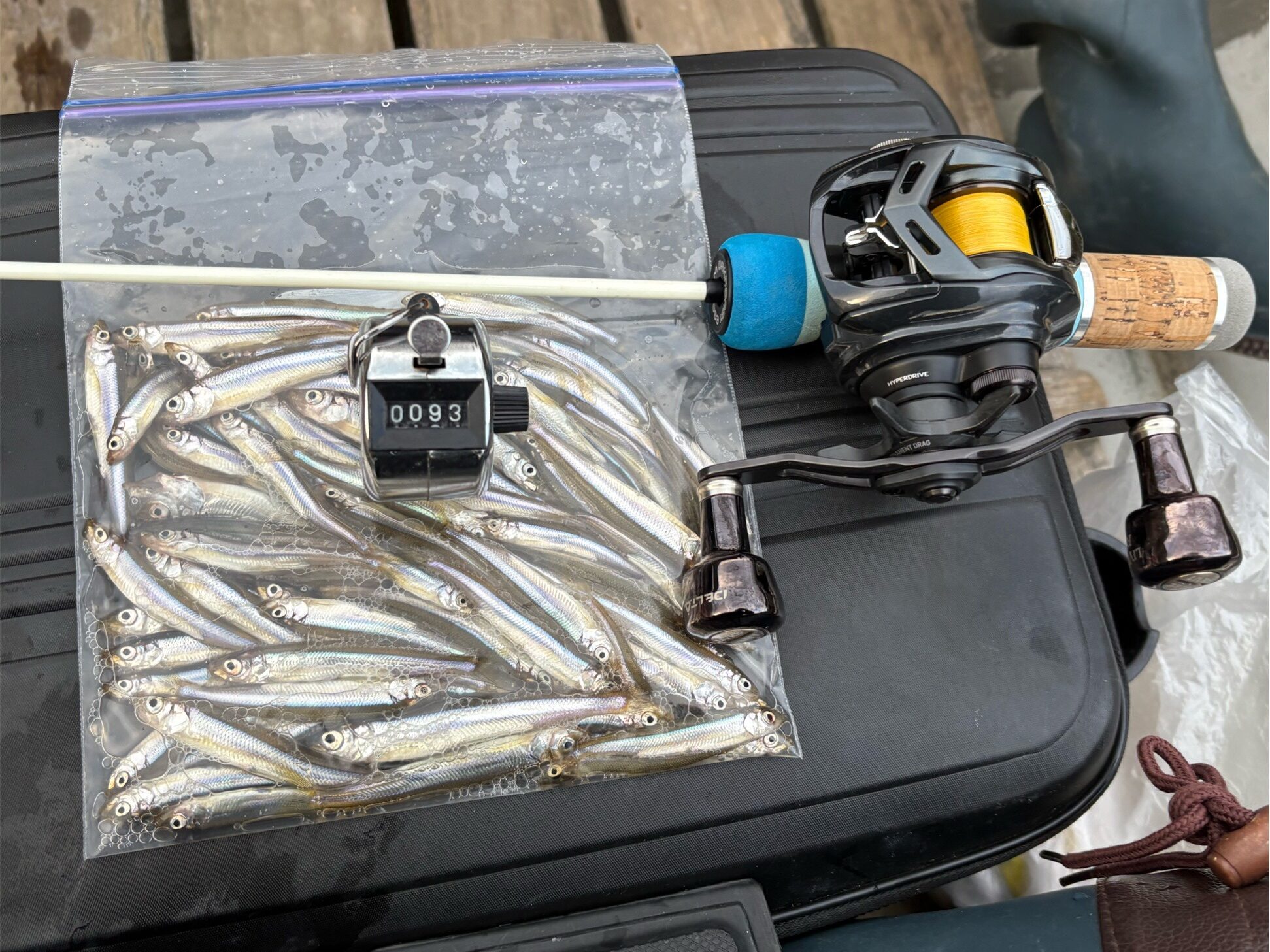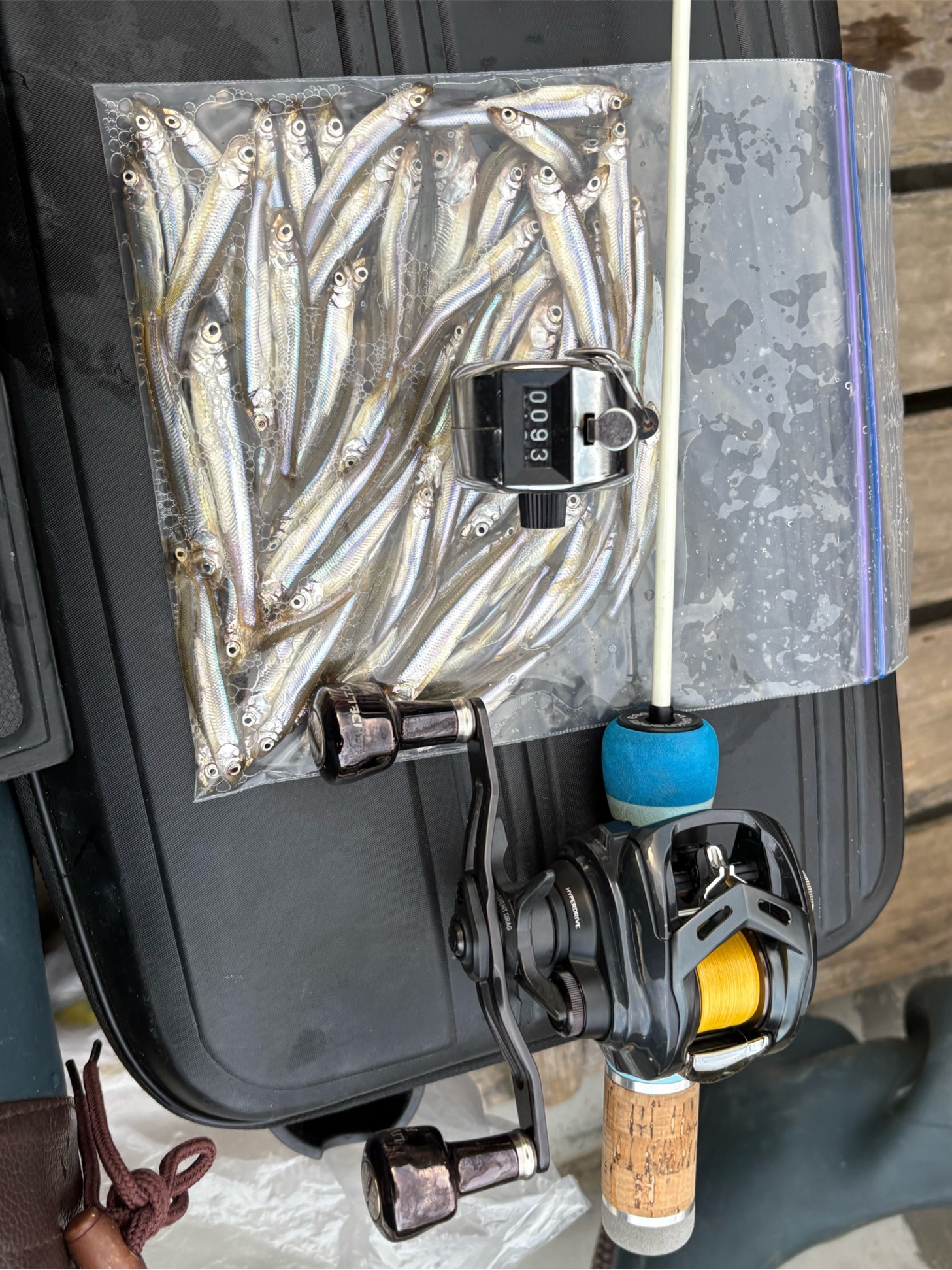 実釣3時間強で釣果は93匹。 釣れない時はあまり釣れませんが、昨年は束釣りもでき今回も予想以上に釣れてくれ、今年も期待できそうです。