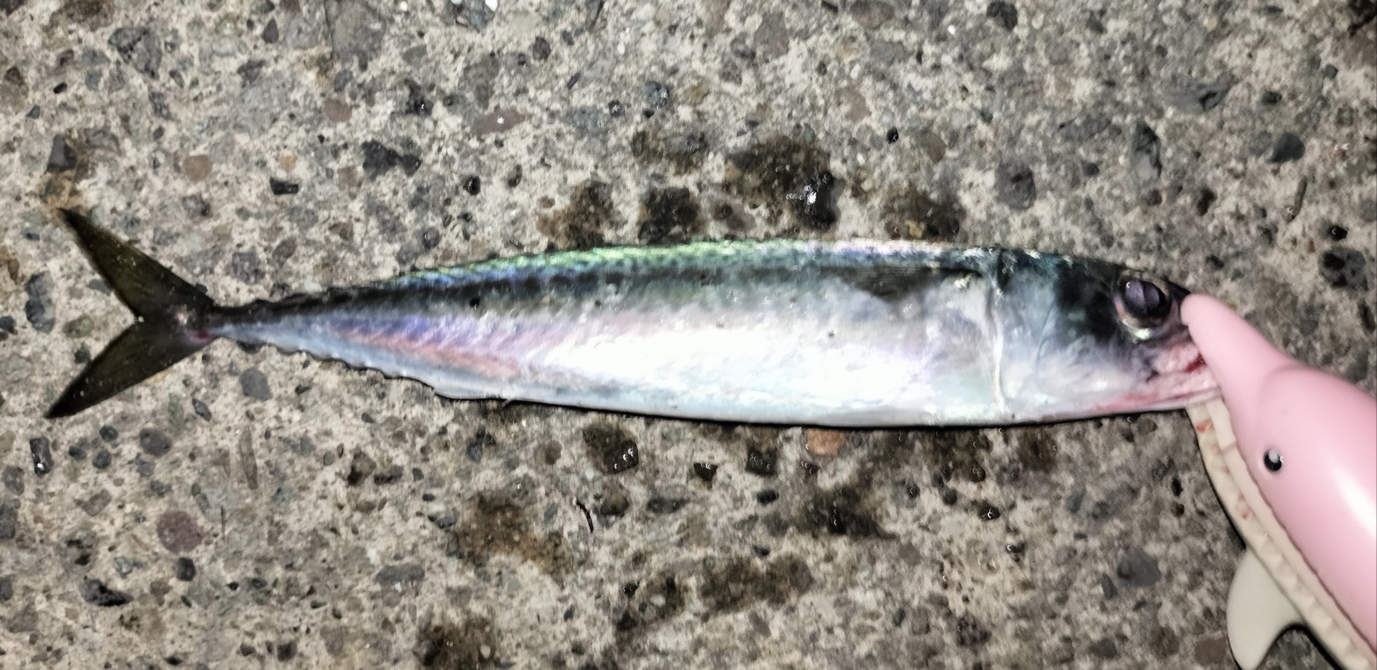 港内奥側の堤防ではサビキで中型のサバが釣れているが向かい風で厳しそうなので、反対側でカマスを狙いながらベイト溜まりの様子をチェック。