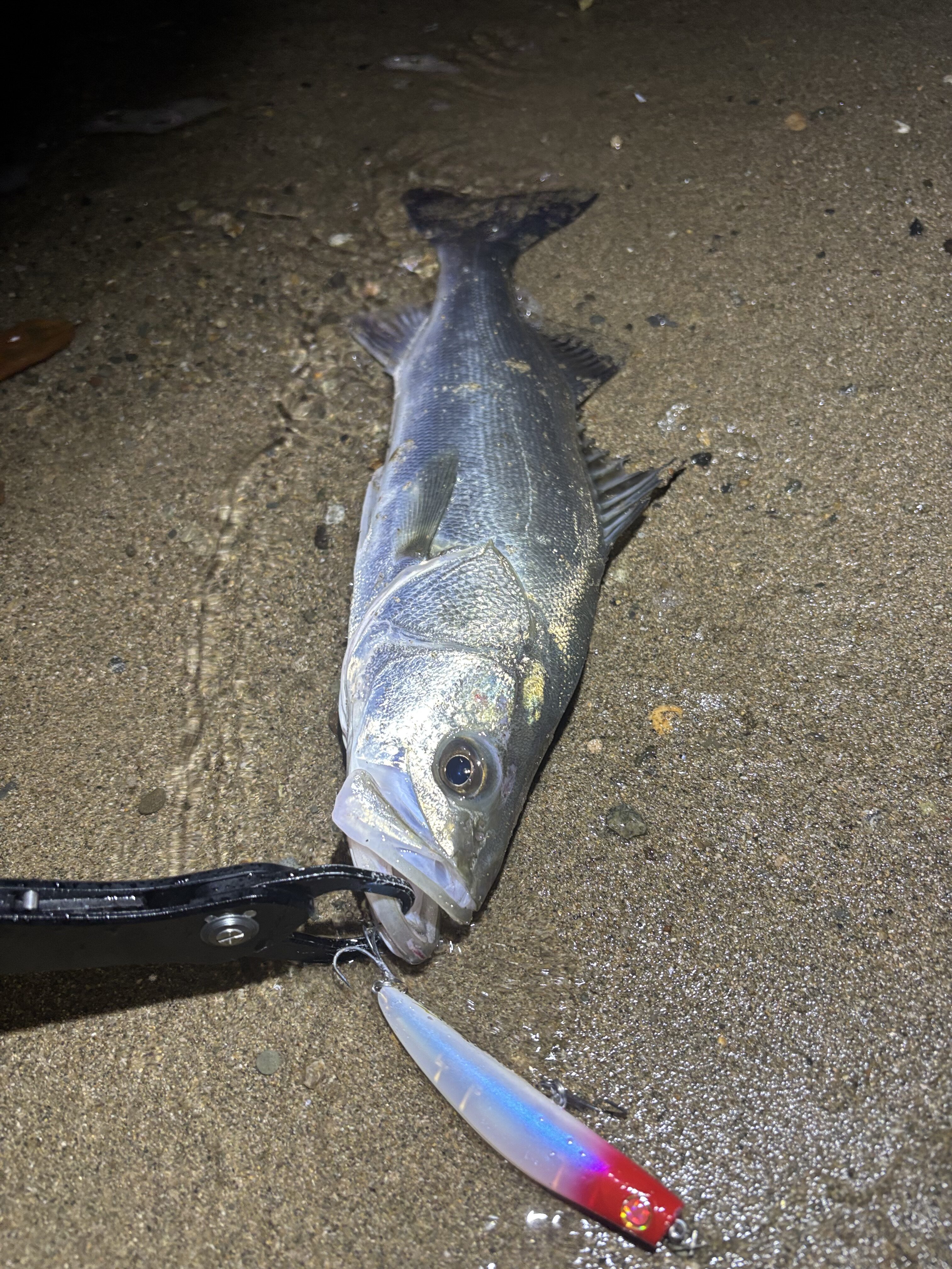 サイズは大きくないですが50センチほどの元気なシーバスでした😊