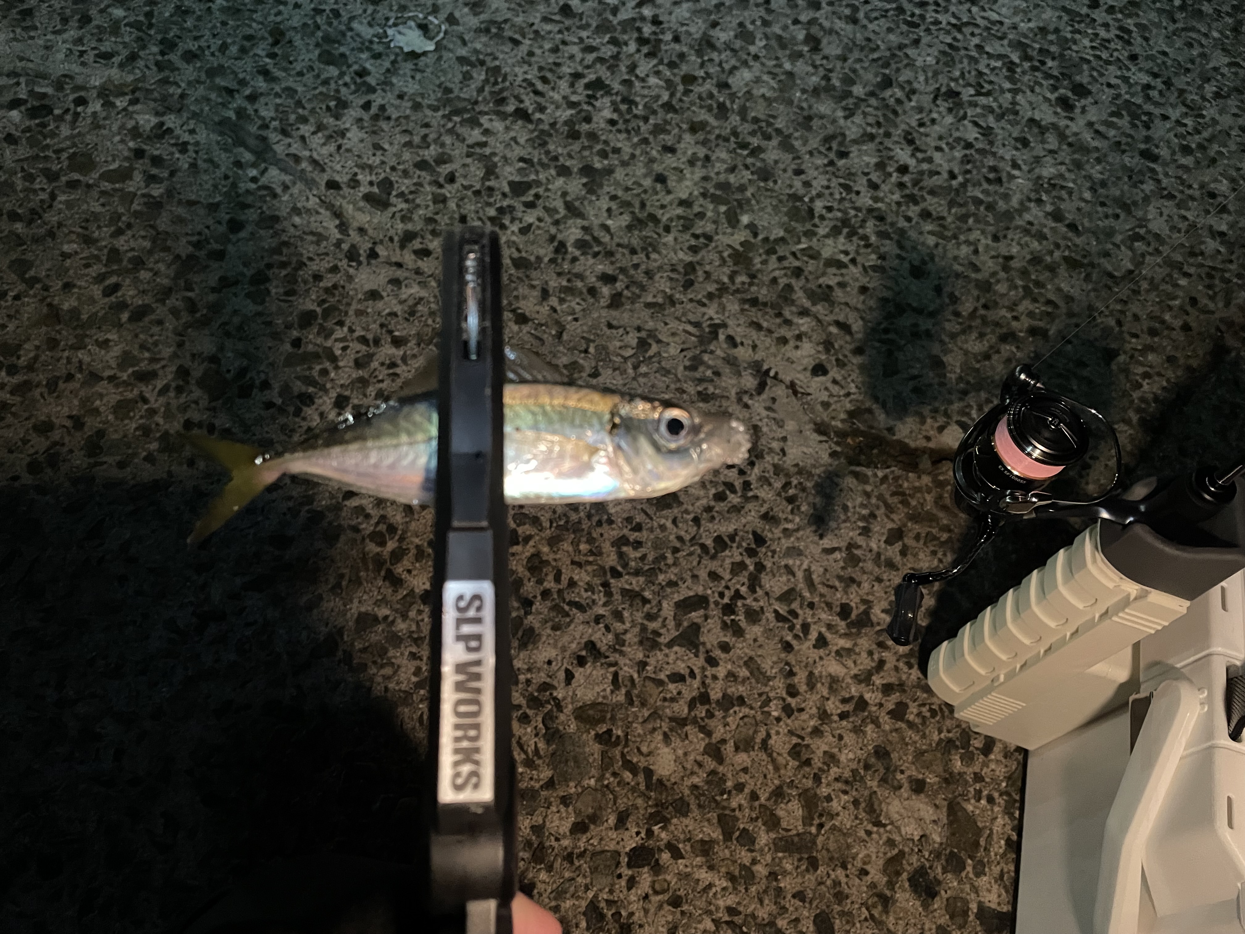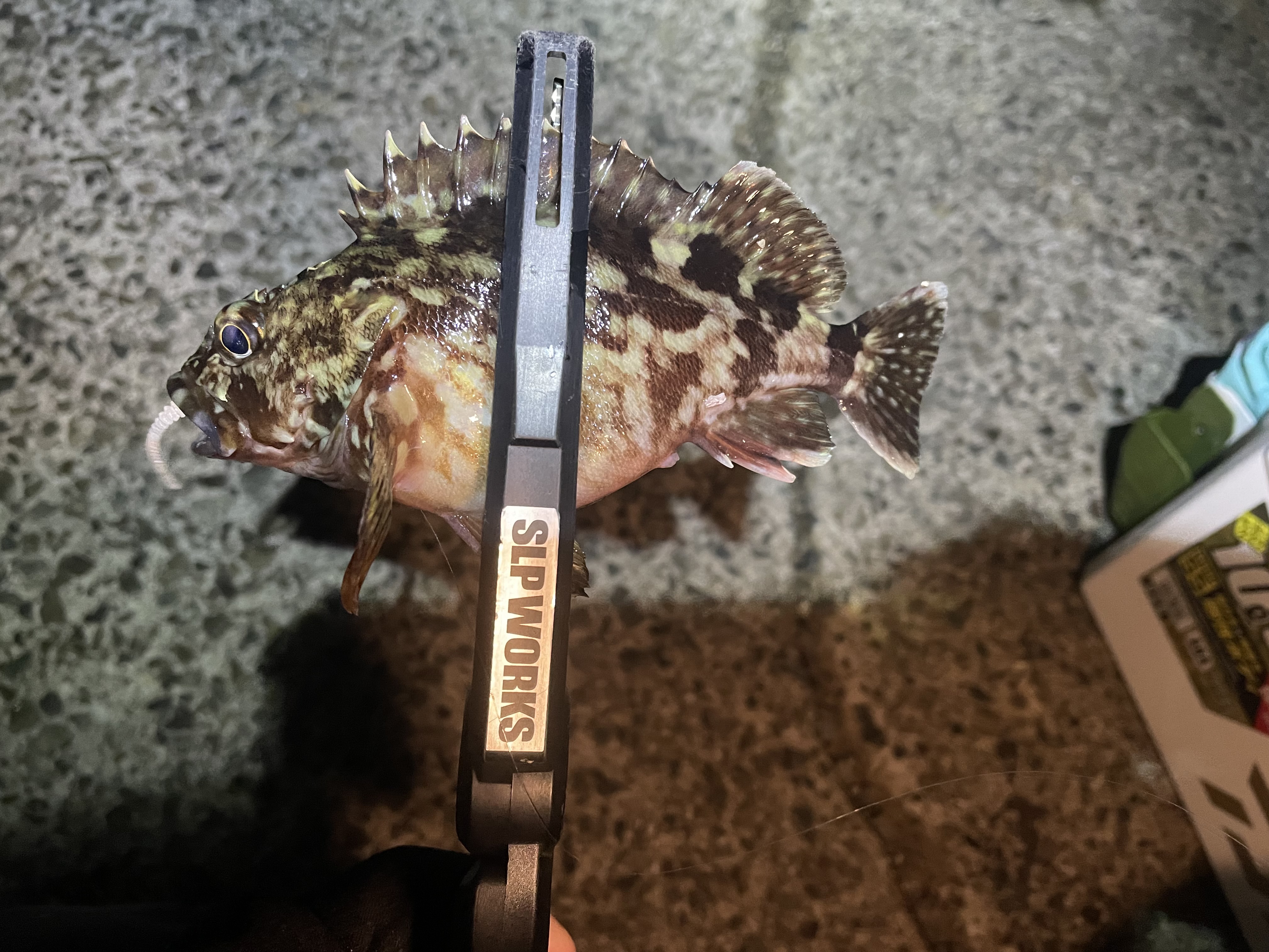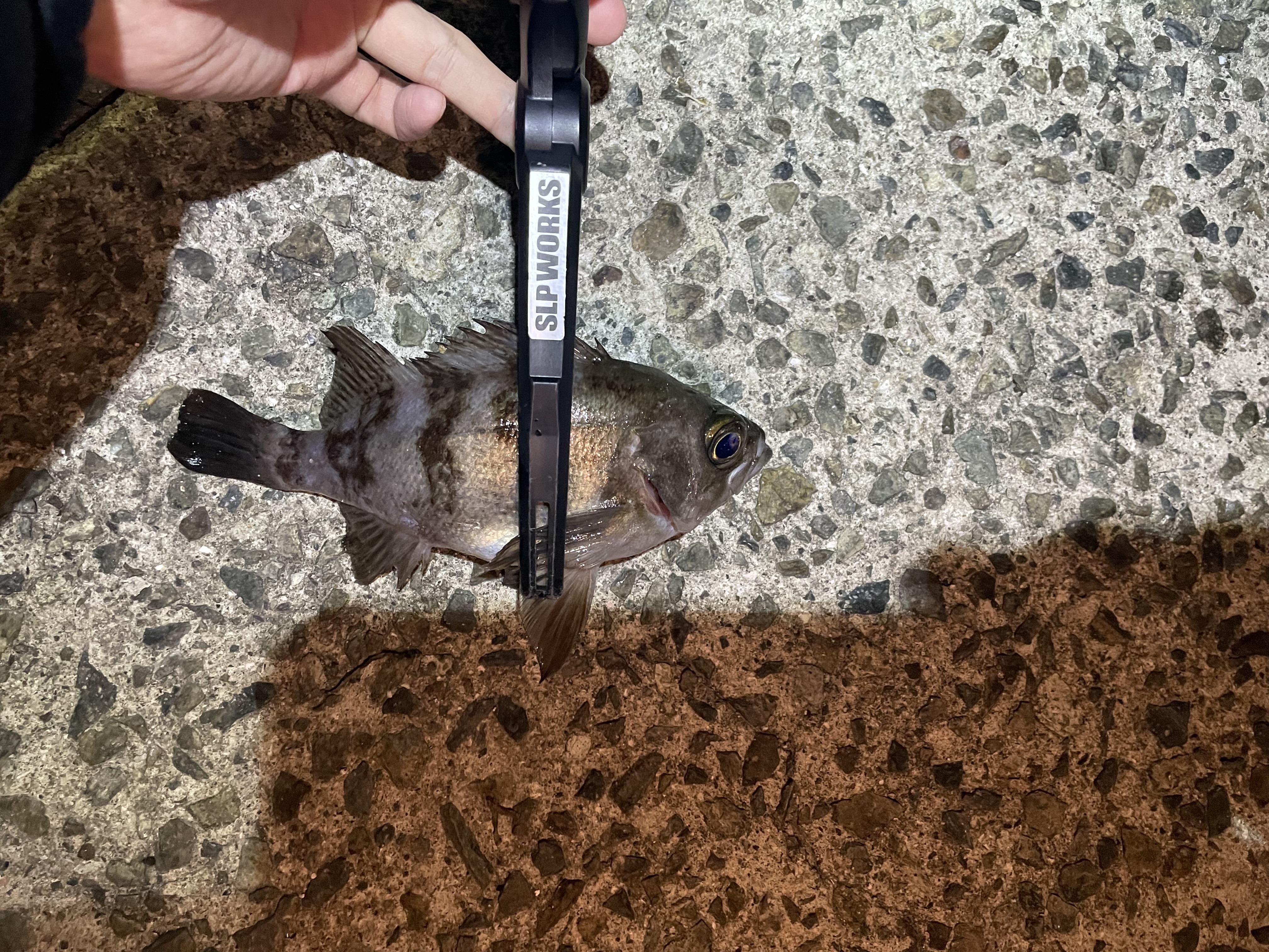 デカアジ釣れないかなと頑張っていると21cmのメバルが釣れました