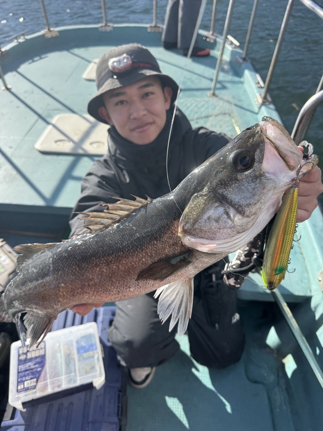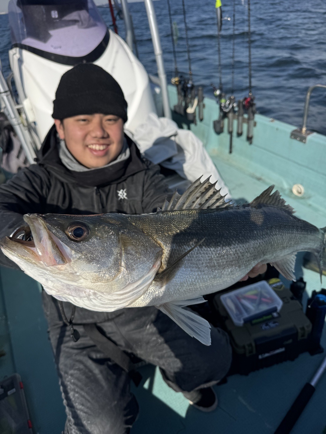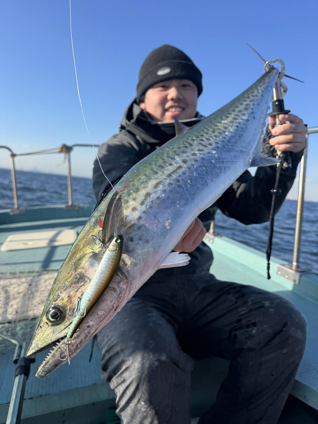 そんな中船長のアドバイスを忠実に守りひたすらジャーキングしていた岸本君にいいサイズのサワラがヒット!