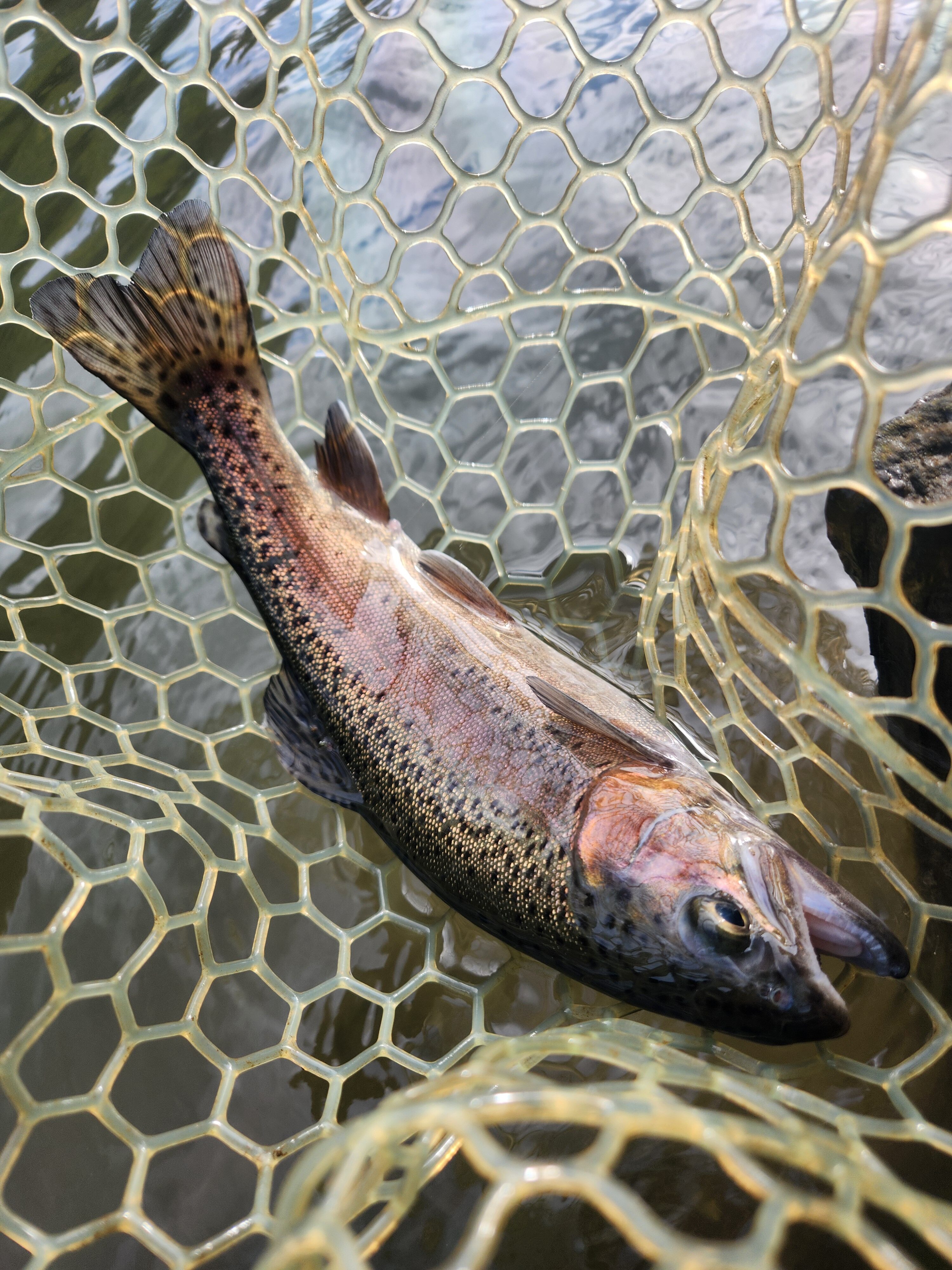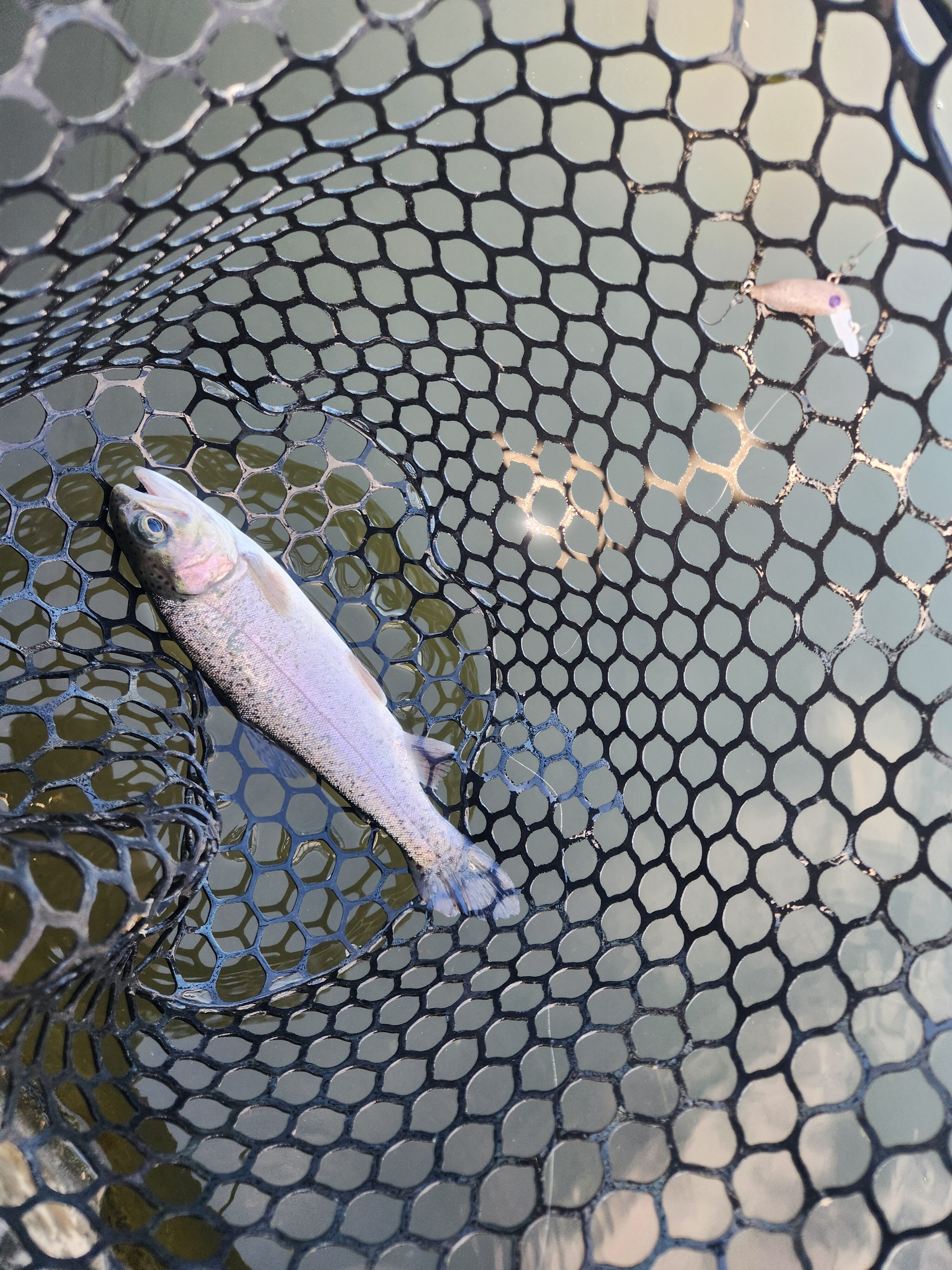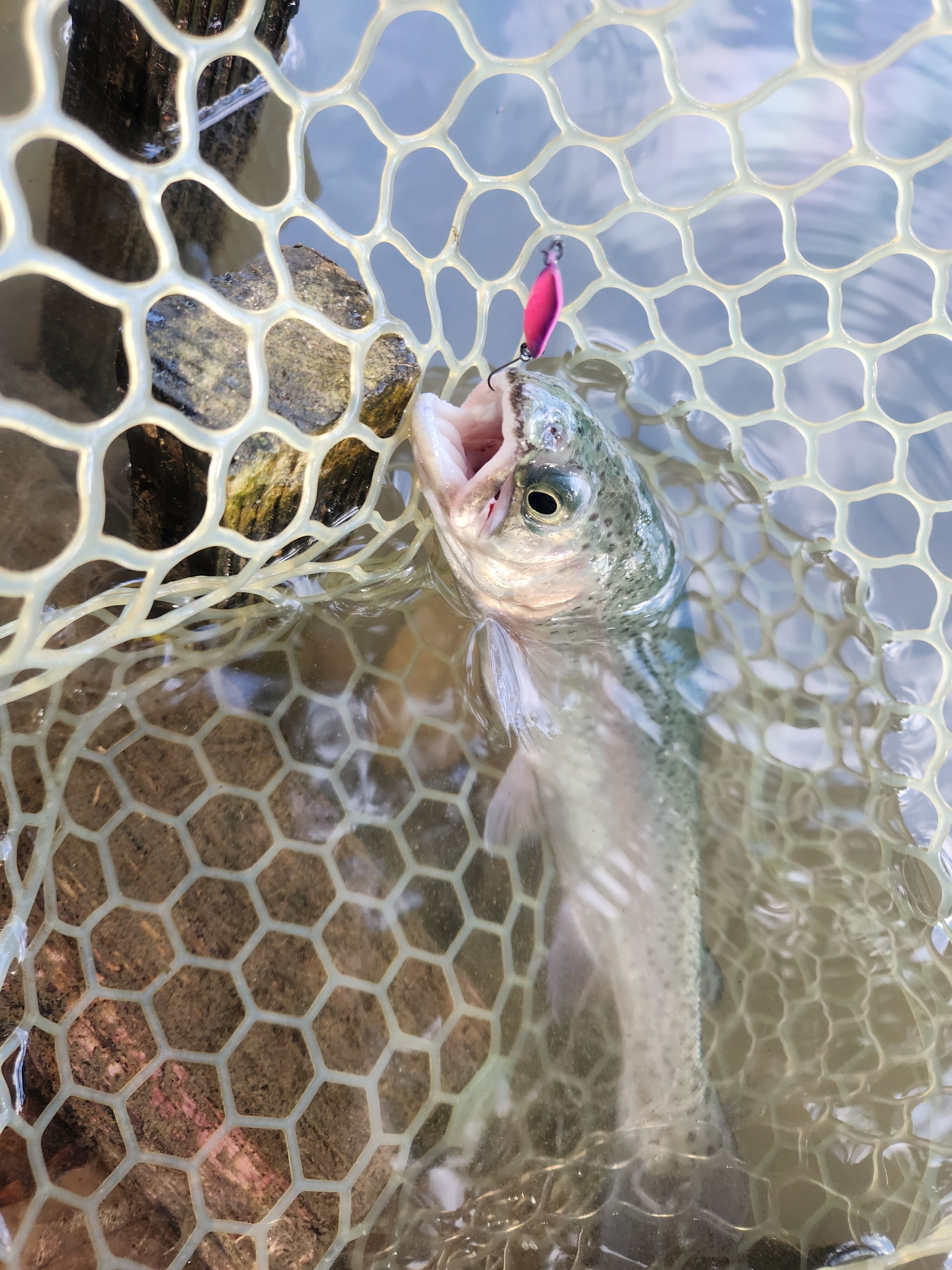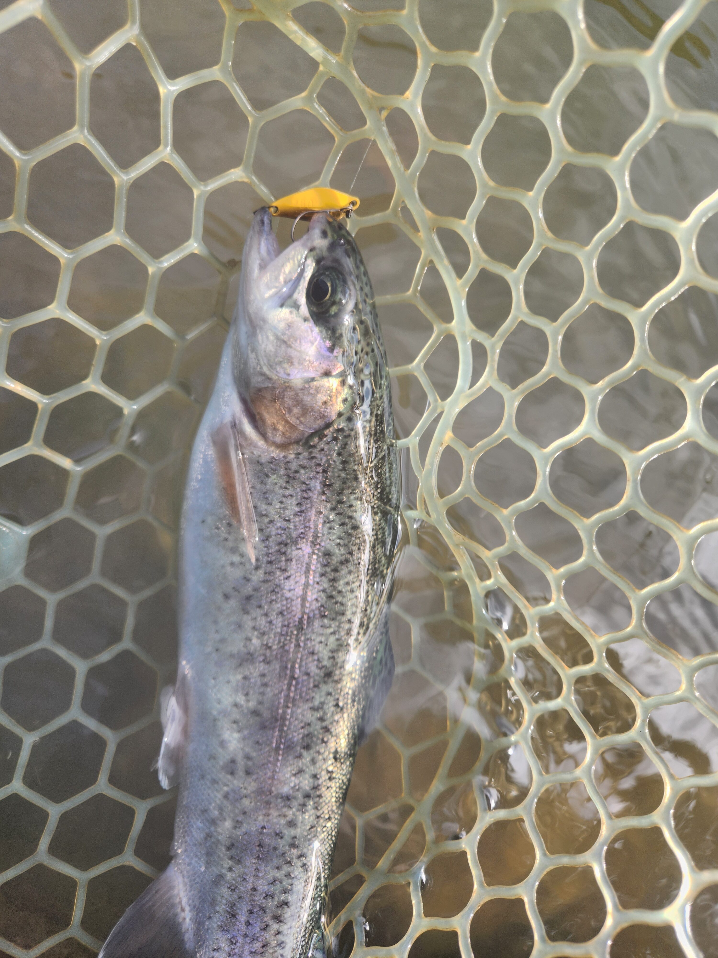 その後はポンド中央部の止水エリアも攻めましたが、流れに付いてる魚は上を見ておりレンジ浅め。