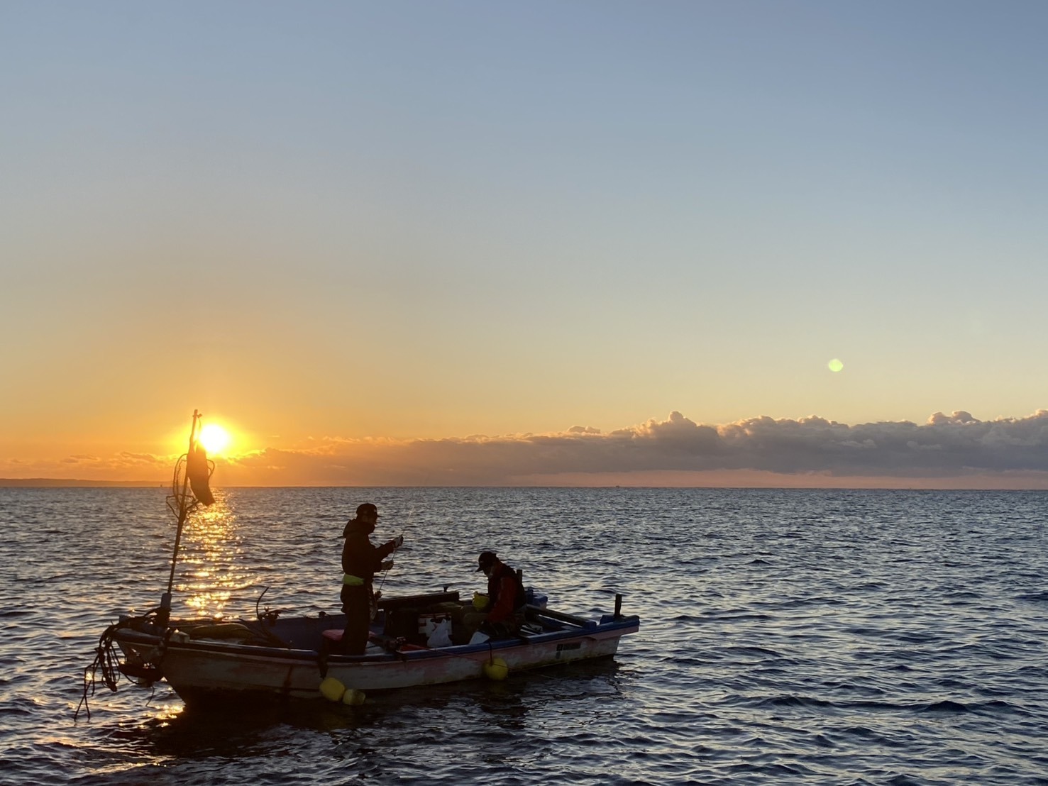 自分たちが乗る小船を親船に引っ張ってもらい、ポイントにつくと錨をおろして、そこが今日の釣り場になります。プライベートな空間でもあり、他の釣り人を気にせず、自分たちのペースで釣りに集中できます。またエサ釣りやルアー釣りなど、様々な釣り方を試すことができます。