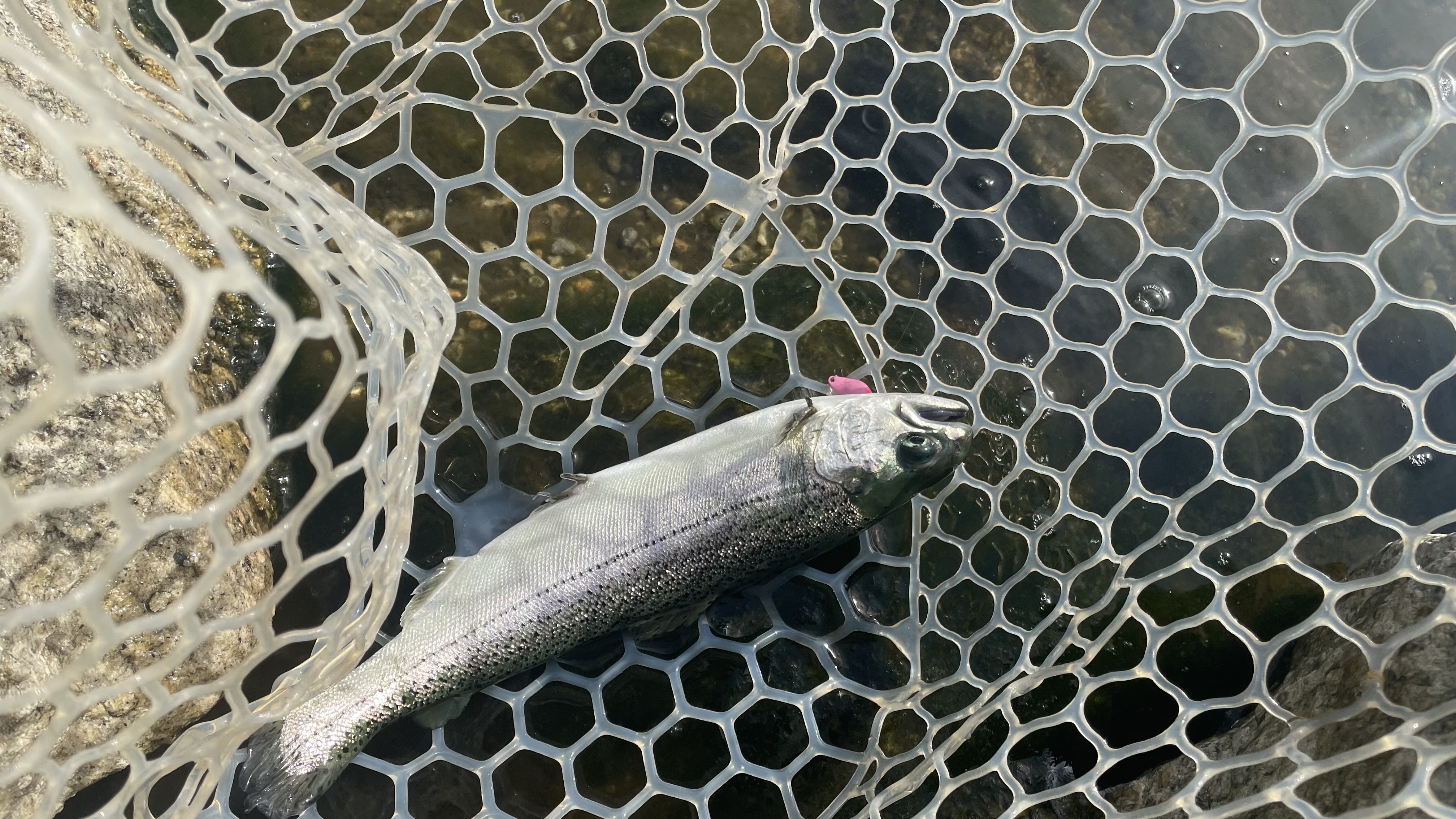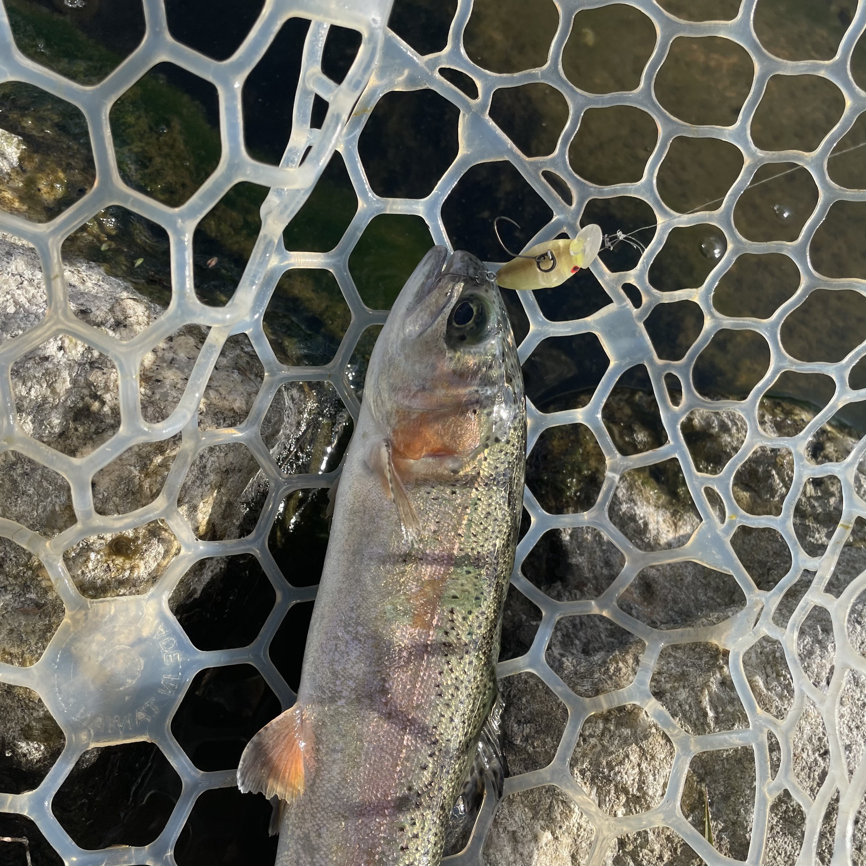 風もなくいいお天気☀️でしたが、祝日。人多し。プレッシャーかかりまくりのタフコンディション。私大好きなマイクロクランクが発動しない。そんな中活躍したのはなんとスプーン。他のアングラーさん達が使うクランクやサクラマスでミノー、初心者向けルアー等にスレている状況でノア1.8g、ハントグランデ1.3g、デイジー1.3gと軽量~中量級スプーンの表層巻きが好反応でした!やはり管釣りはスプーン!