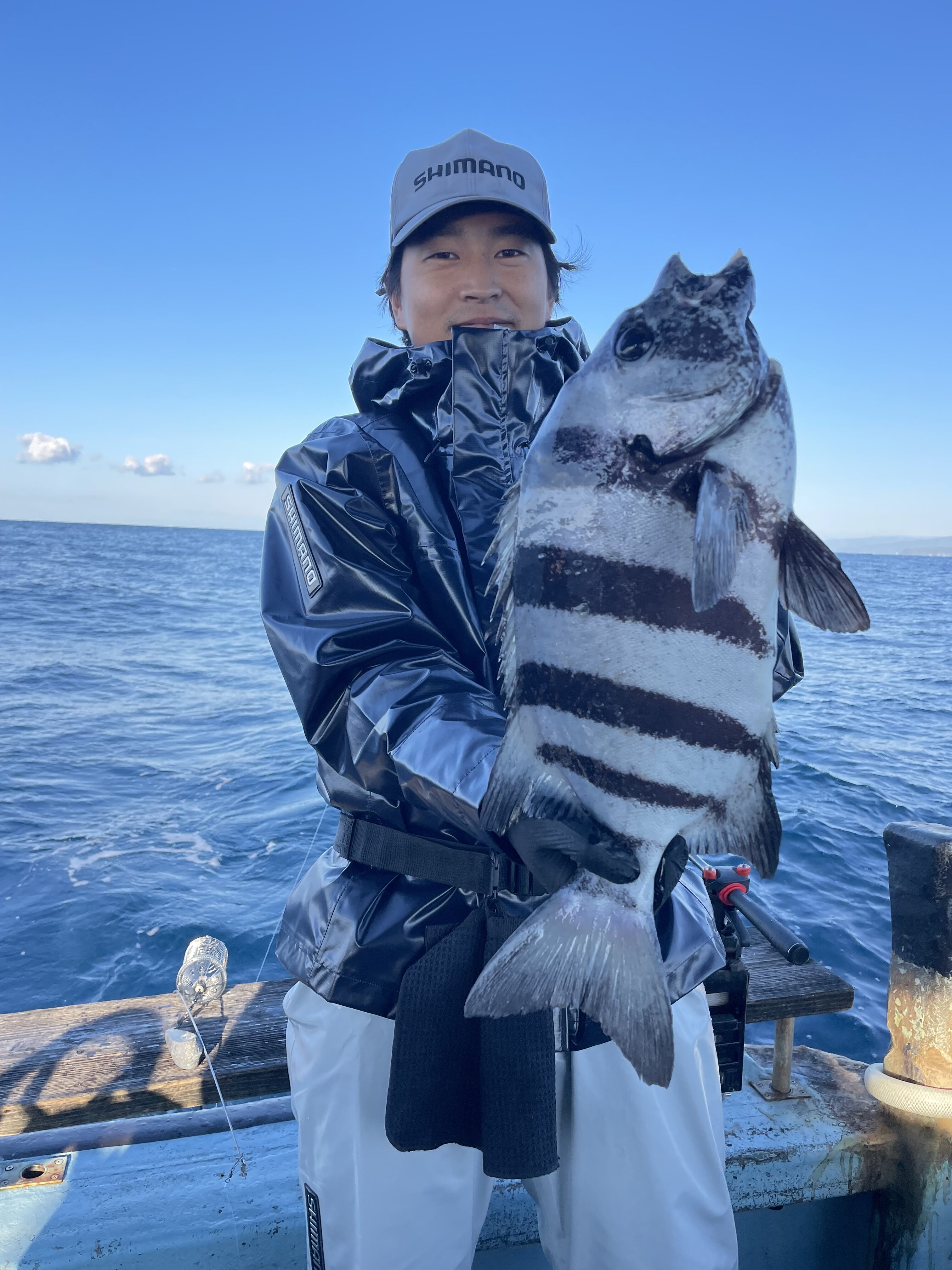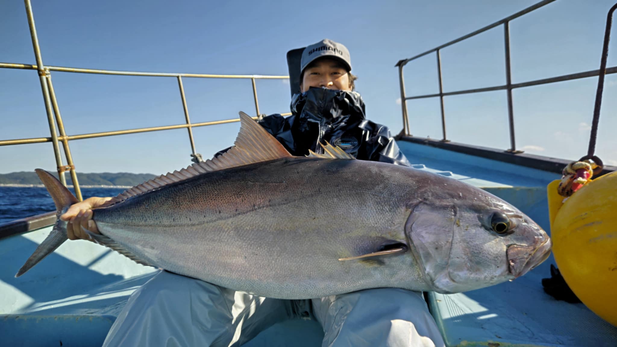 2025.11.25 印刷する 室戸遠征DAY② 魚種 カンパチ クエ/モロコ 数 ウツボ メイチダイ 尾長グレ オジサンなどなど 釣り方 泳がせ釣り 場所 高知県 天候 晴れ スタッフ 平山 武 店舗 リンクスウメダ店 釣行日 2025.11.20 コメント 前日は良いところがないまま終わってしまいました。 二日目は風とうねりが落ち着くという事で待望の本命ポイントに入れるとのこと。 否が応でも期待は高まります! 二日目は、I君も参加。 準備を整えて出船! 穏やかな天候の中、20分ほどでポイント到着。 アンカーを入れてまずはエサとなる釣り開始! と仕掛けを下した瞬間あっというまに斜めになる道糸。 本命ポイントは激流でした… それもそんじょそこらの激流ではなく、試しに落とした泳がせ仕掛けのオモリ500号が吹き上がってしまうほど。 追加のオモリを200号追加して合計700号でも吹き上がるのでもう打つ手なし(泣) とりあえず岸寄りに船を移動させ水深30mラインの場所で釣りをしてみることに。 500号でも仕掛けは斜めになりますが、吹き上がりはしていない様子。 ここで潮が緩むまで釣りをすることにしました。 エサ釣りのオモリは300号を付けて釣り開始。 おそるべし黒潮… このポイントでもエサとなる魚はかかってこず、底を狙うとイシダイやイシガキダイなど嬉しいゲスト。 昼過ぎになったころ、少し潮が緩み始めたので、本命ポイン手前の40mラインに移動。 ここでもなんとか釣りは出来ますが、本命ポイントはまだまだ潮が速すぎて断念。 最後までこのポイントで粘ることにしました。 前日購入したメジカにウツボがポツポツ当たってきます。 美味しいというのでキープ。 終了の時間が近づいてきて、ダメかと思い始めたときにI君の竿が大きく曲がります。 明らかにサメともウツボとも違う引きで上がってきたのはカンパチ! サイズは13キロほどですがこんな状況でよく釣り上げてくれました! 12月にまた室戸チャレンジします! 使用した釣具 ロッド 剛樹 スタンディングアーバスMR17 リール シマノ ビーストマスターMD6000