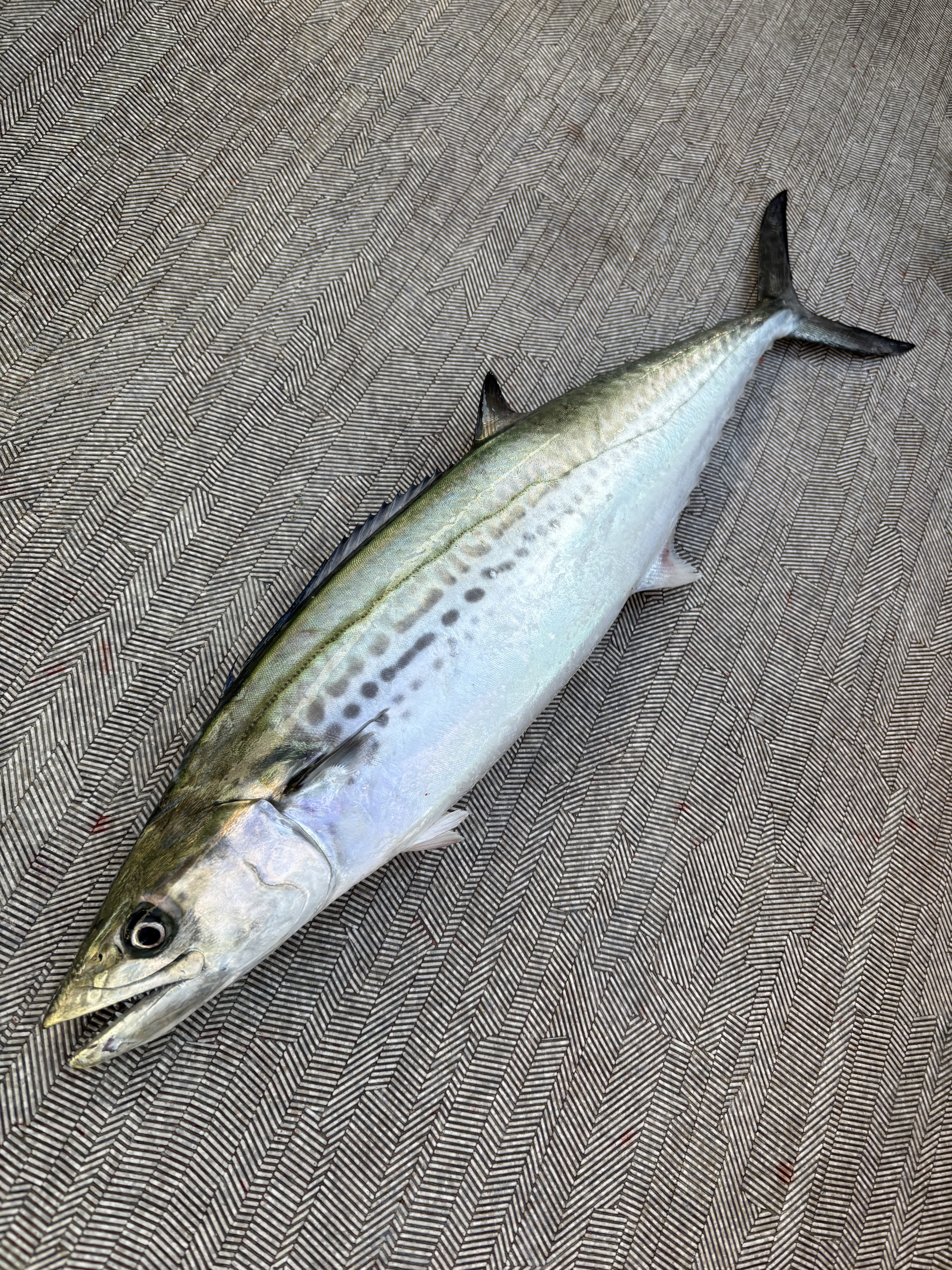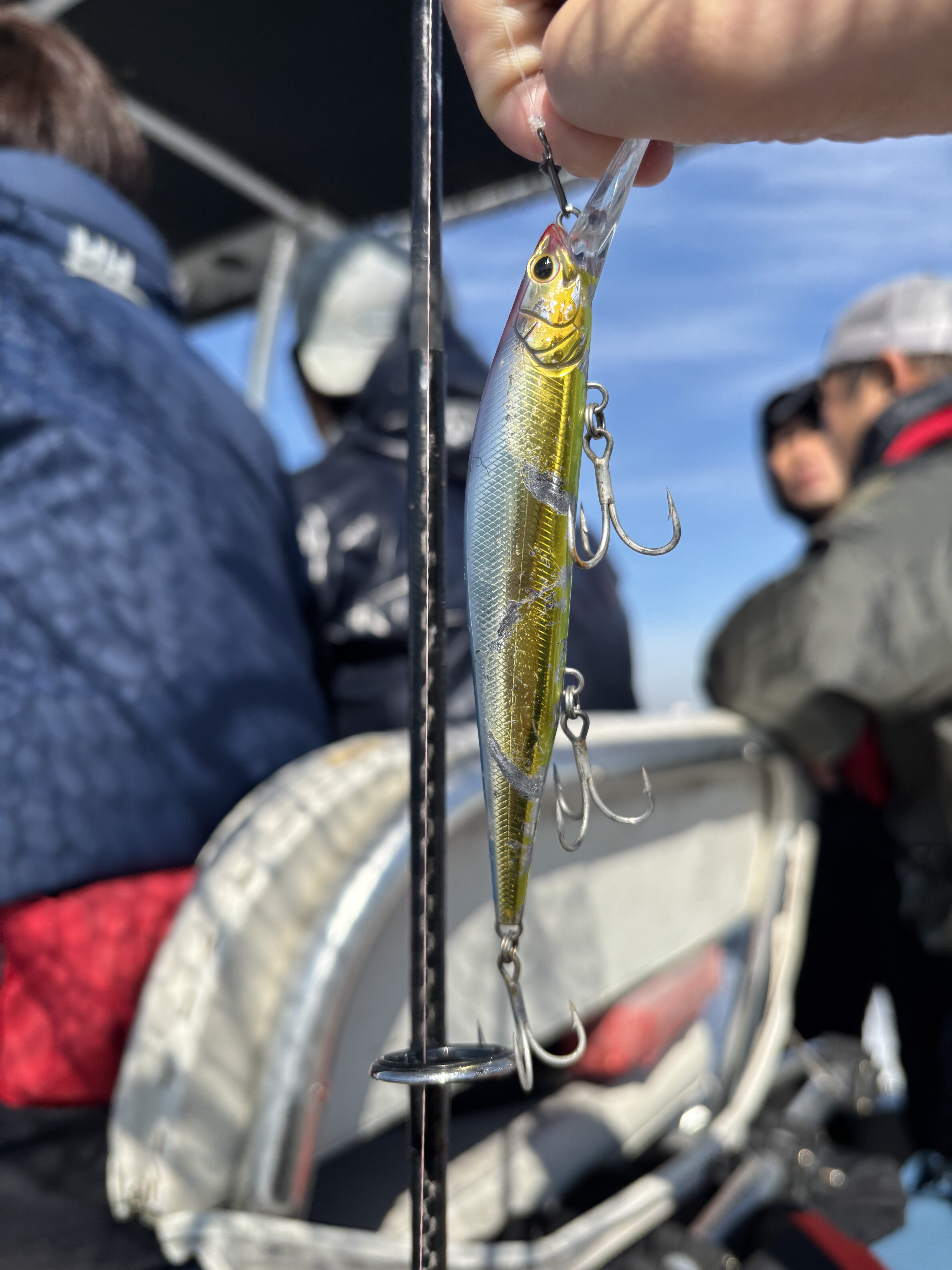 周囲がサゴシをポツポツ拾う中、ついに自分にも強烈なアタリ!しかしドラグが強すぎてフックアウト…。続けてサワラカッターでルアー2つ殉職と不運続き。それでも活性が上がったタイミングで本命をキャッチでき、ワチャワチャしながらも嬉しい1本に。