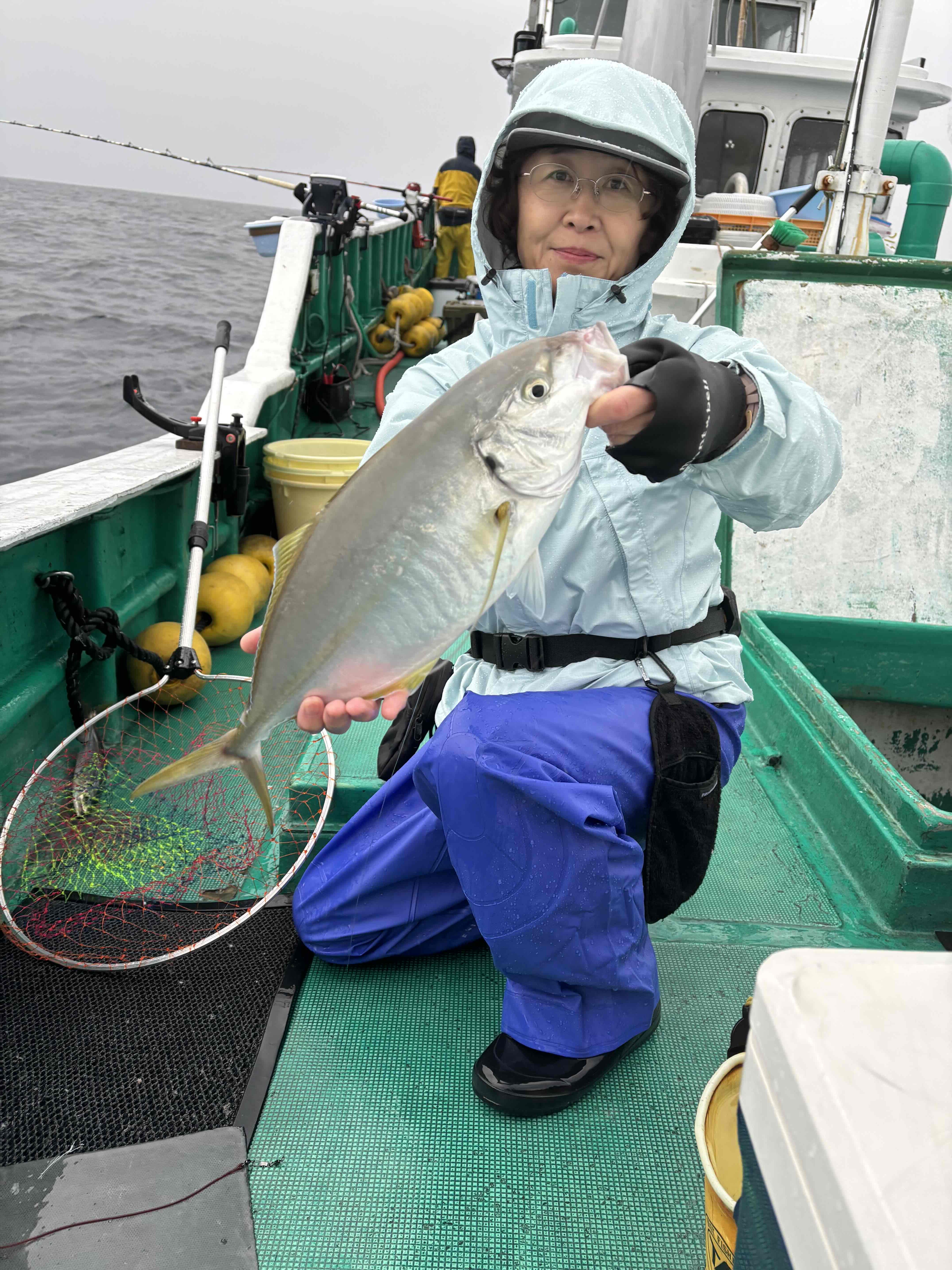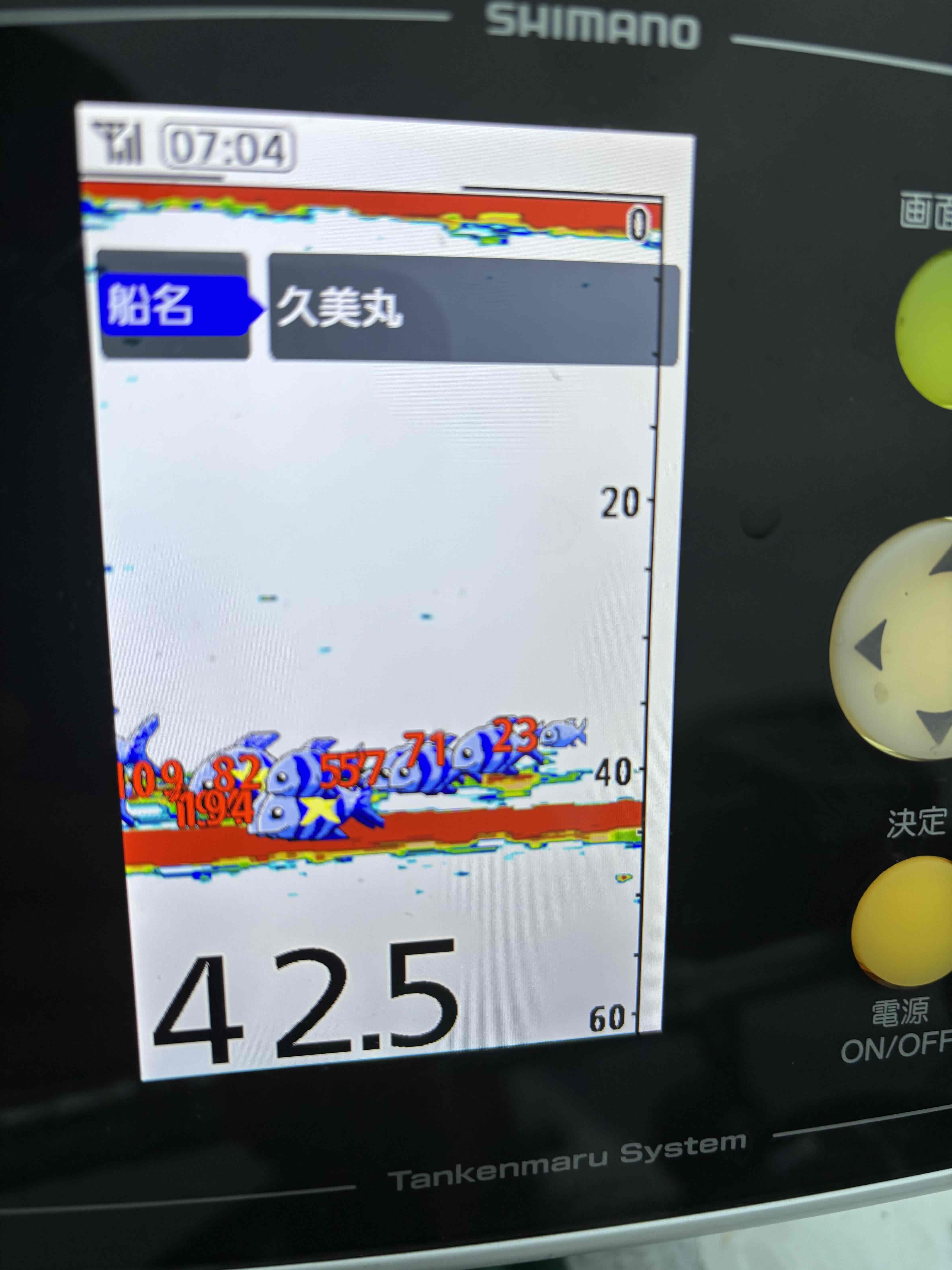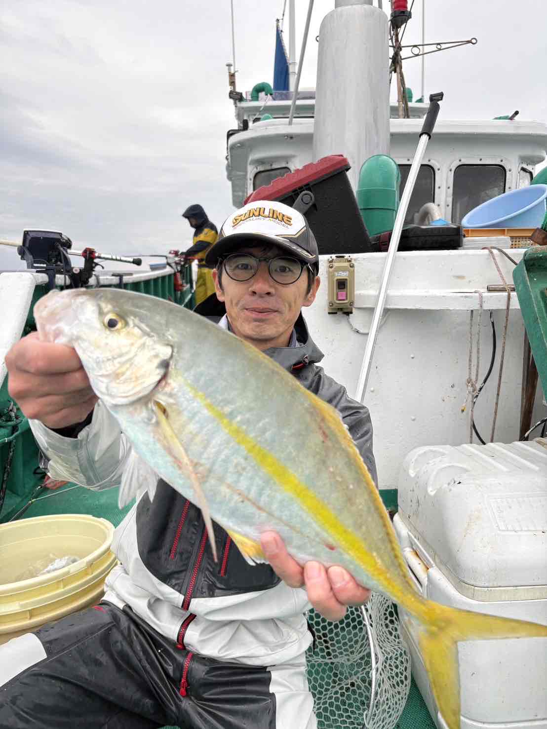 やっとシマアジが回遊開始しての釣行が出来ました。急遽決まりお客様との釣行 いつもの久美丸さんでシマアジ狙いです。今季のシマアジポイントは前年とポイントが違い見老津に近い為久美丸さんからは近い 水深も40m前後 ポイントに着くと探見丸にも反応が映ります。仕掛けを投入して底で待っていると隣の竿が一気に入り電動リールから糸が出ていきます。シマアジは底で頑張るのでなかなか上がってこない引き ゆっくり手でサポートしてあげてきます。上がってきたのは良型シマアジ かなりの期待が持てる感じ 天気が悪いので雨が降り出しやりにくいですが船中シマアジが上がっています。僕も魚はヒットしますが真鯛 鯖 ムロアジと外道ばかり 仕掛けも長さ2m 4m ウイリー仕掛けなど変えていくもシマアジからの反応が無く苦戦 隣は4匹良型が釣れています。持っていた細い仕掛け 小針に変えて投入 コマセを打って待っているとヒット ドラグがなり上がってこないゆっくりやり取りしながら上がってきたのはシマアジゲット やっとシマアジを釣りあげることできました。 今季はシマアジ回遊が遅かったですが終わるのは例年と同じ感じ?釣果があるタイミングでの釣行をお勧めします。