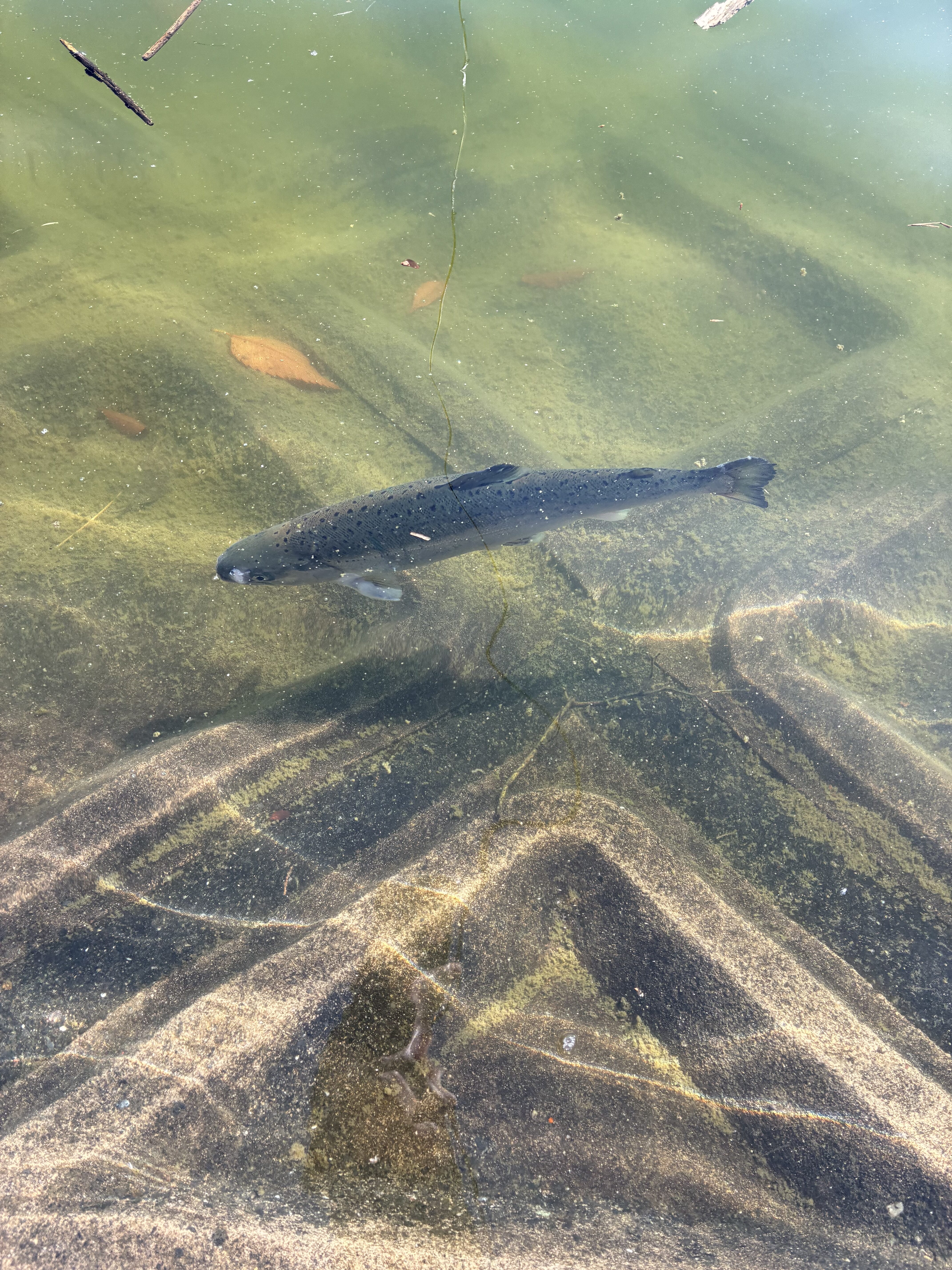 ぱっと見では魚は浮いている感じなのでスプーンの表層巻きから始めますが、あまり早い動きには反応を示さず、、、