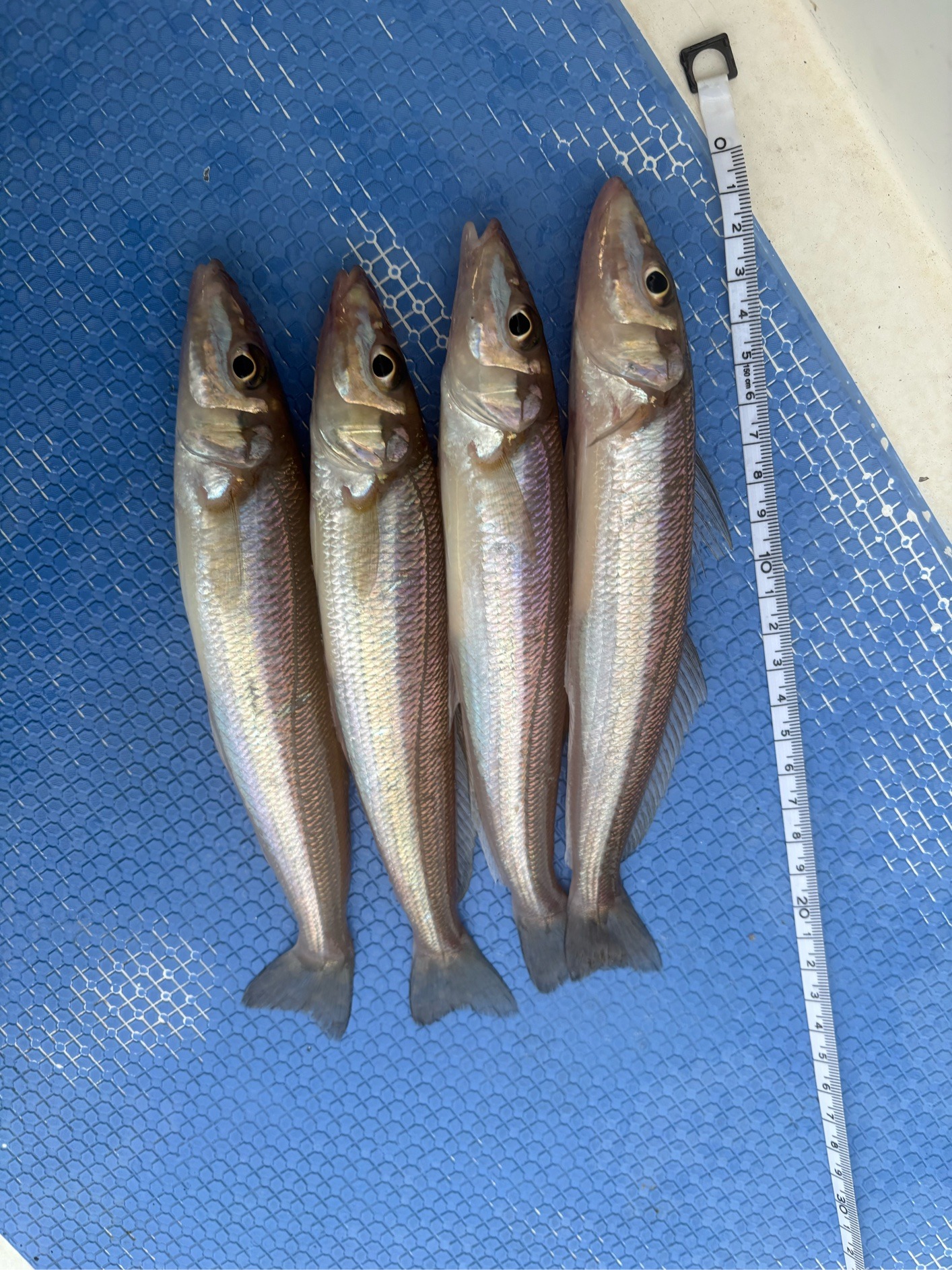 キスは比較的よい型が多く混じり、いい感じに肥えていて脂のノリもよくなってきていそうです。 その中でも超ピンギスみたいなサイズも数匹混じったので、即リリースしました。