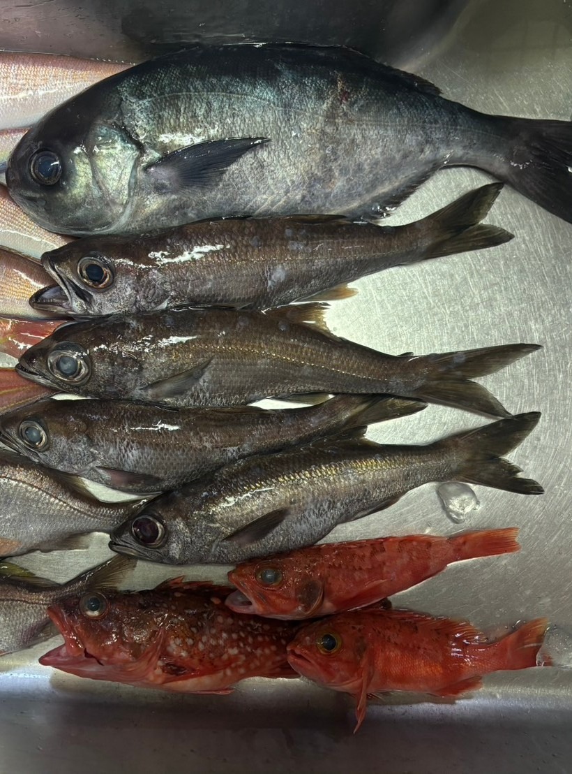 シロムツが1匹ずつ、メダイが0〜1匹、ユメカサゴが0〜3匹混じり、実釣時間を考えるとG氏の釣果は十分だったと思います!!