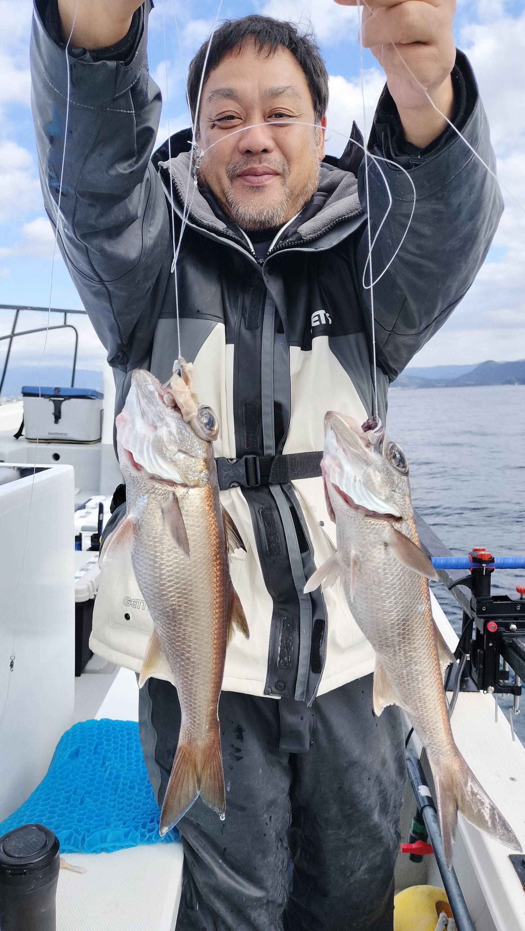 すると次の流しで自分が苦戦する中、G氏はクロムツの2匹掛けを達成して更に1匹追加。