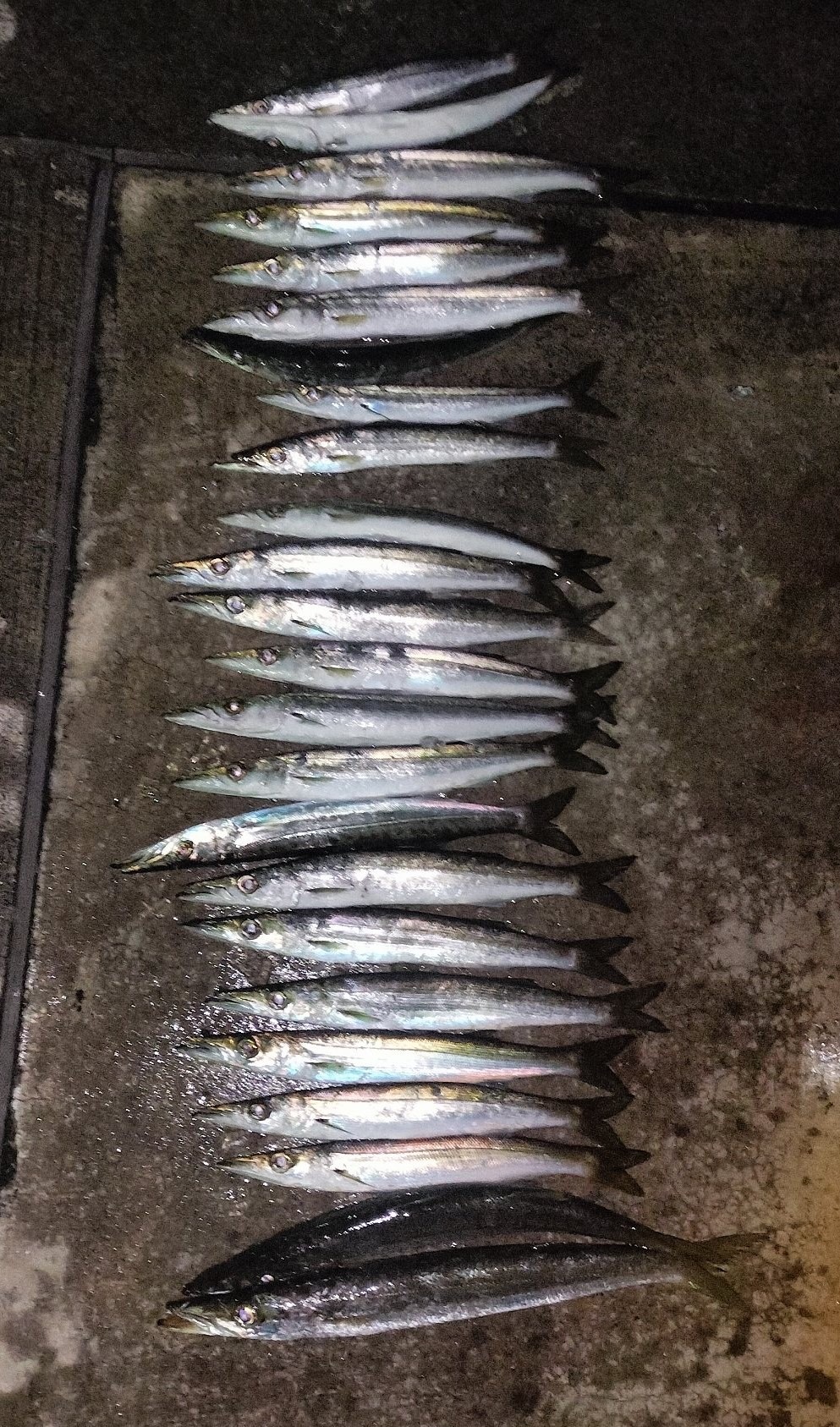 28〜34センチのヤマトカマス14匹に30〜38センチのアカカマス3匹の計17匹。陸っぱり初心者を含む2名で24匹。