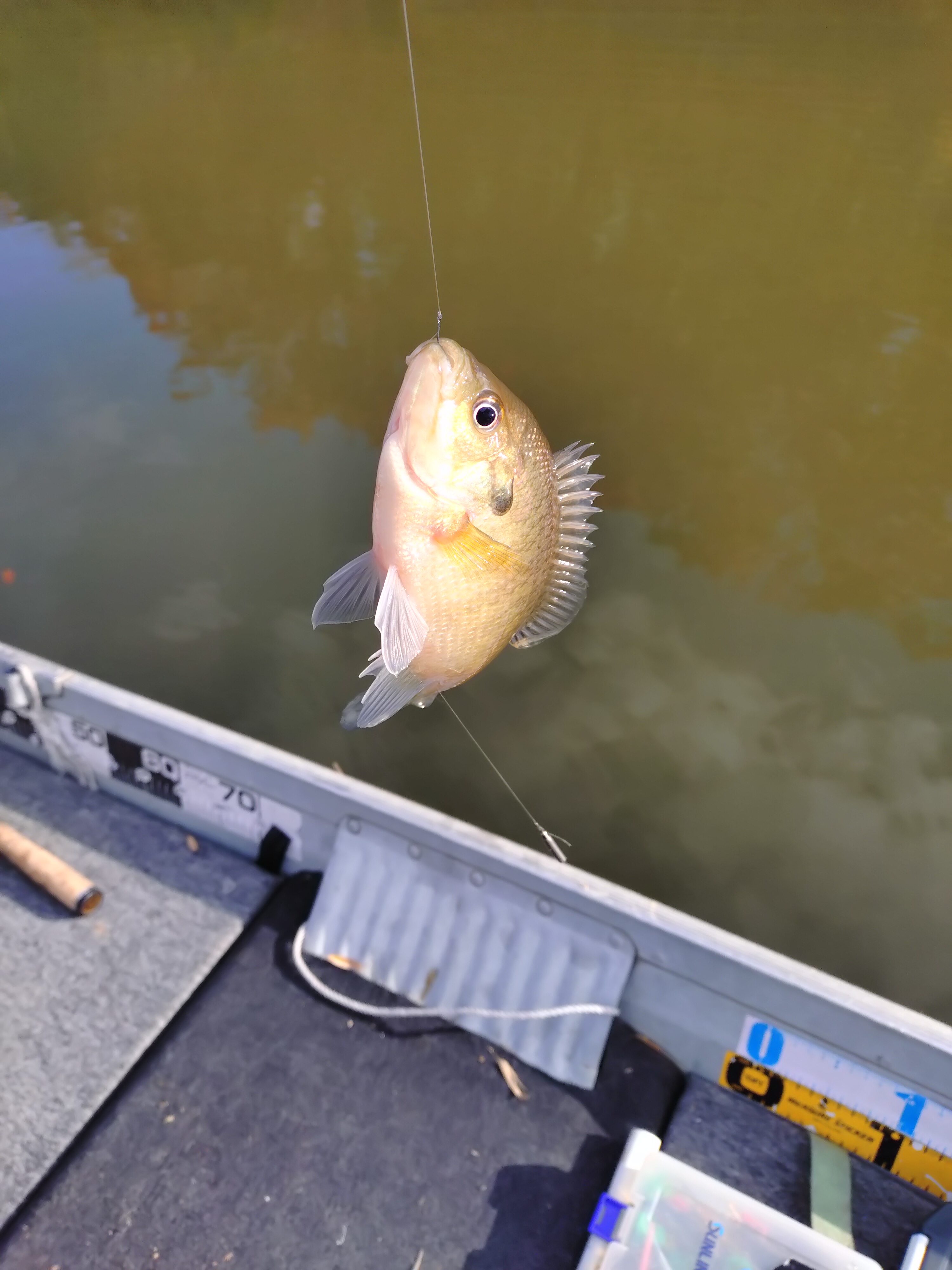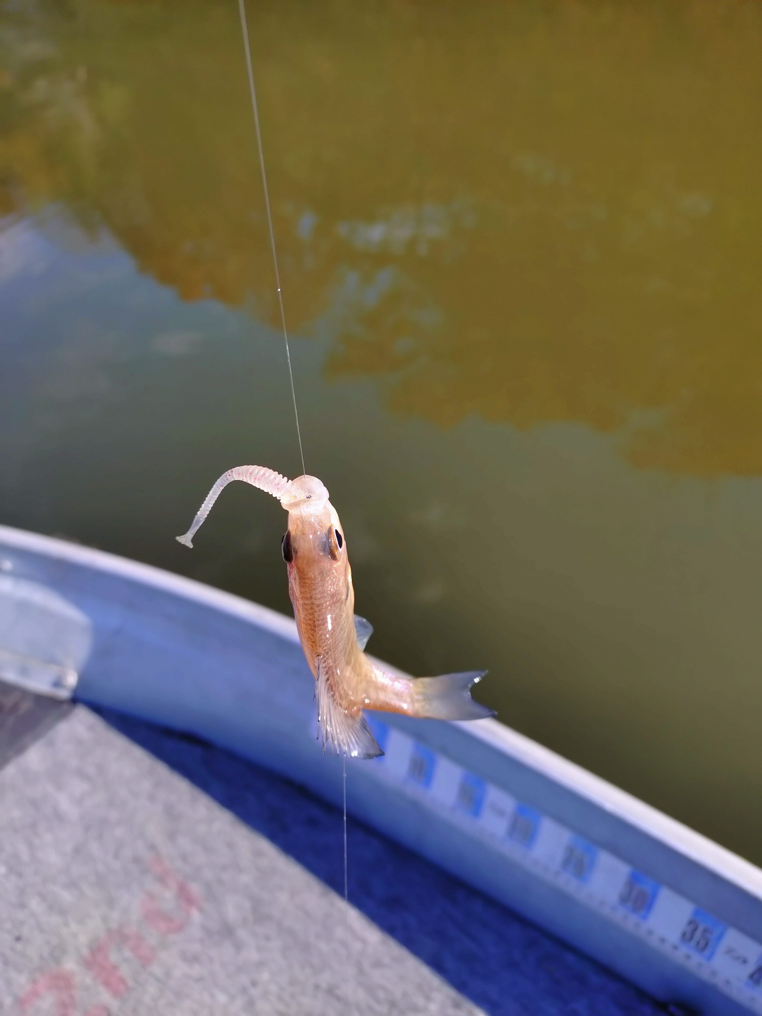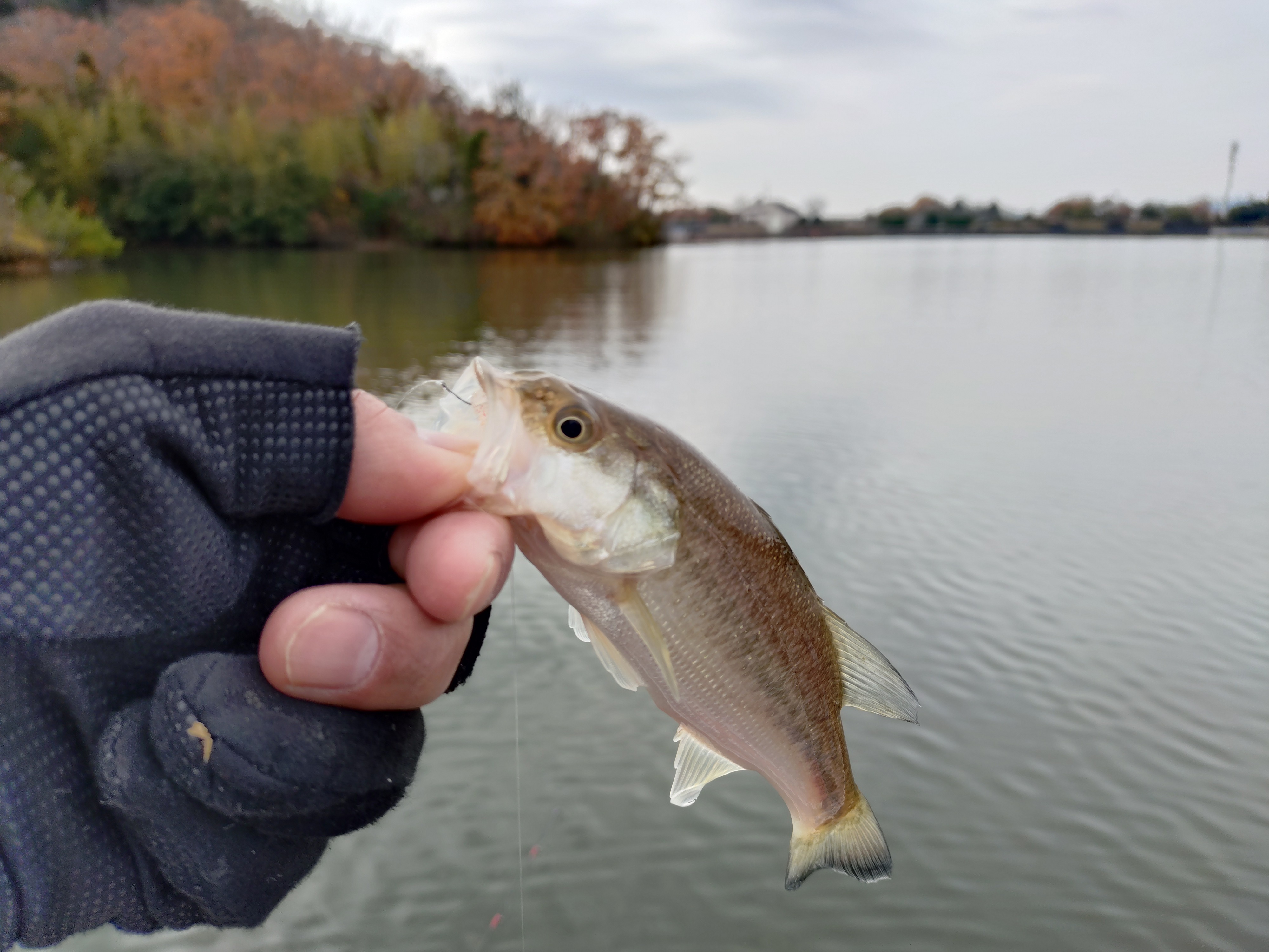 しかし久しぶりの青野ダムなので、今の状況を見極めるために、ミノー、ヘビキャロ、ラバージグ、通常のメタルバイブ、ミドスト………色々試した結果、6〜8mに雰囲気があり、ブルーギルと小バスをダウンショットで数本釣ったあと、11時頃にスロープから近いエリアの本湖側に伸びてる水中岬に移動しました(@@)