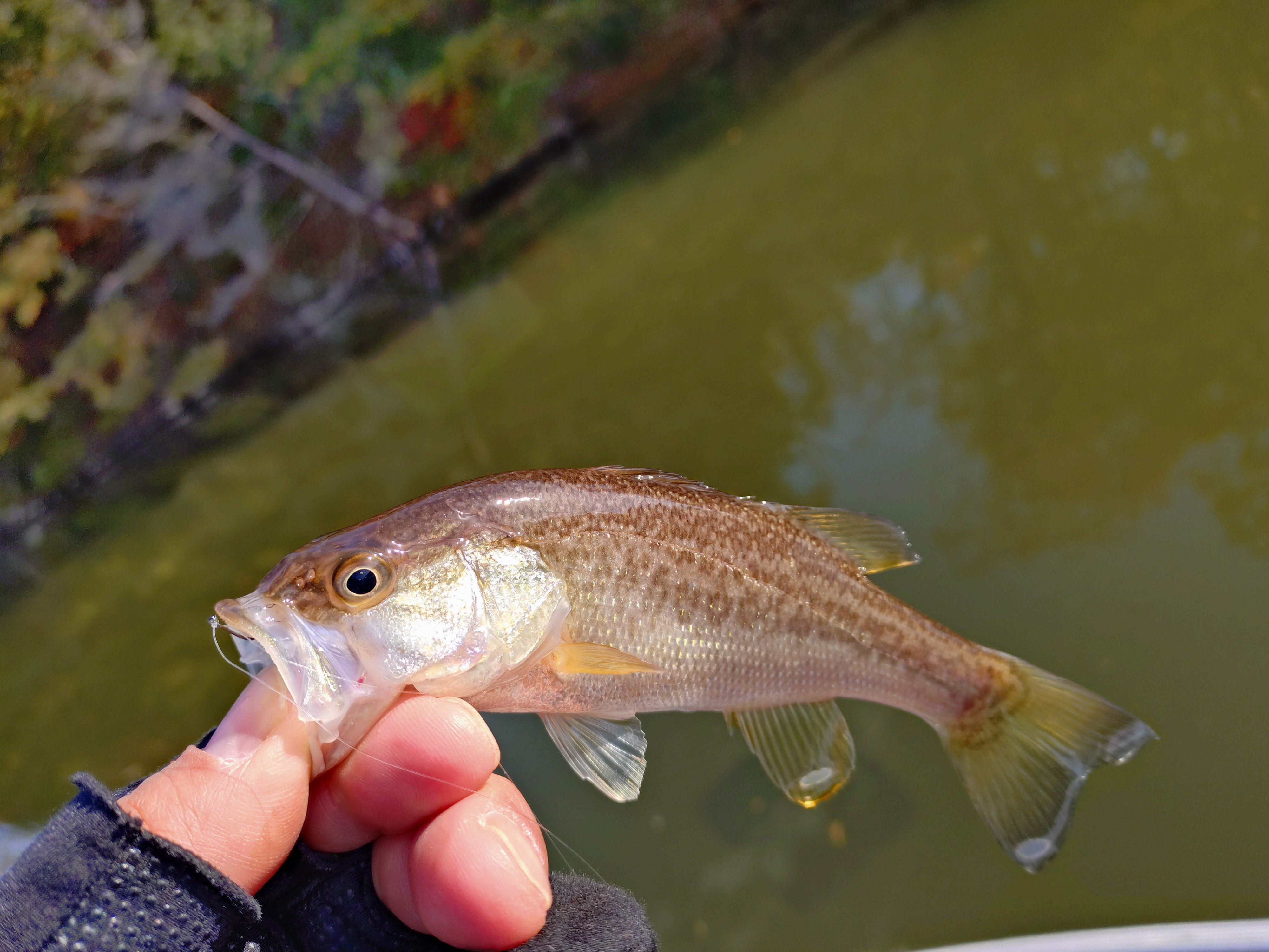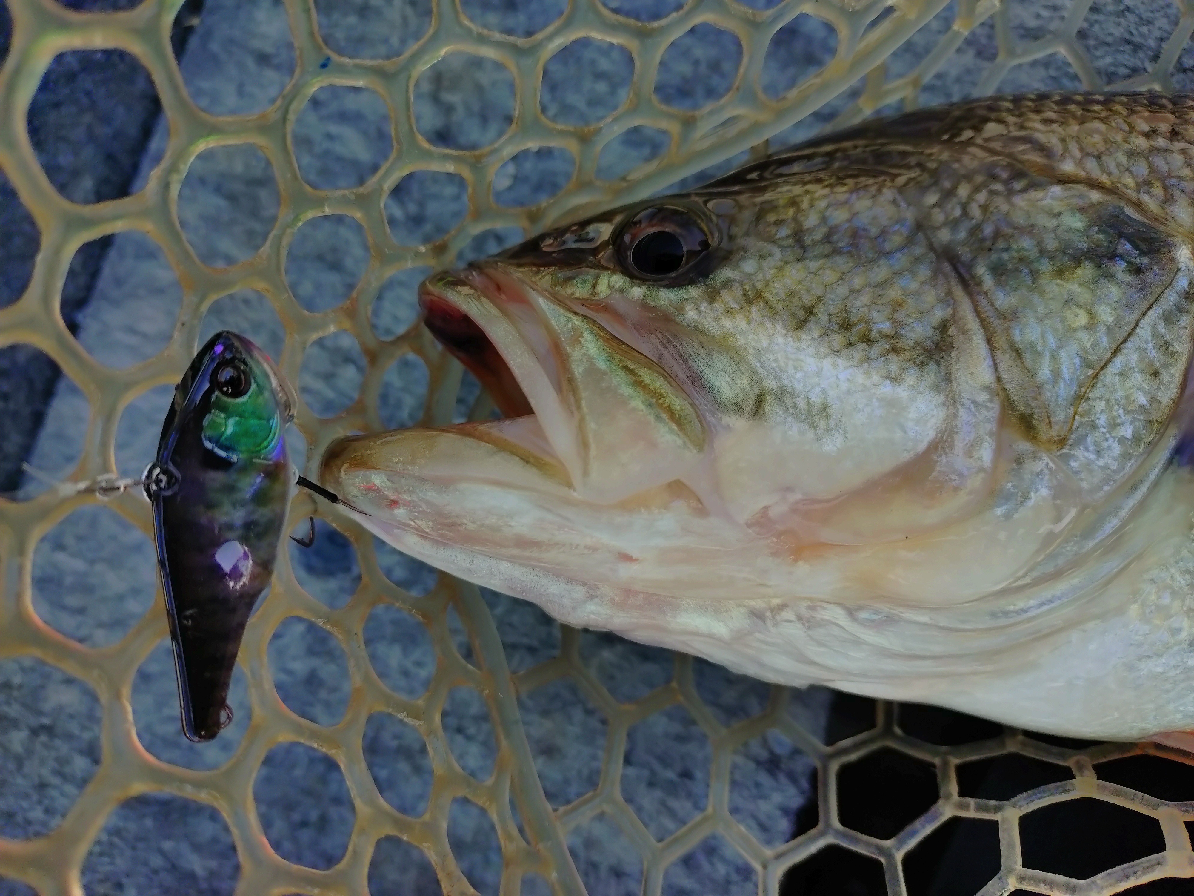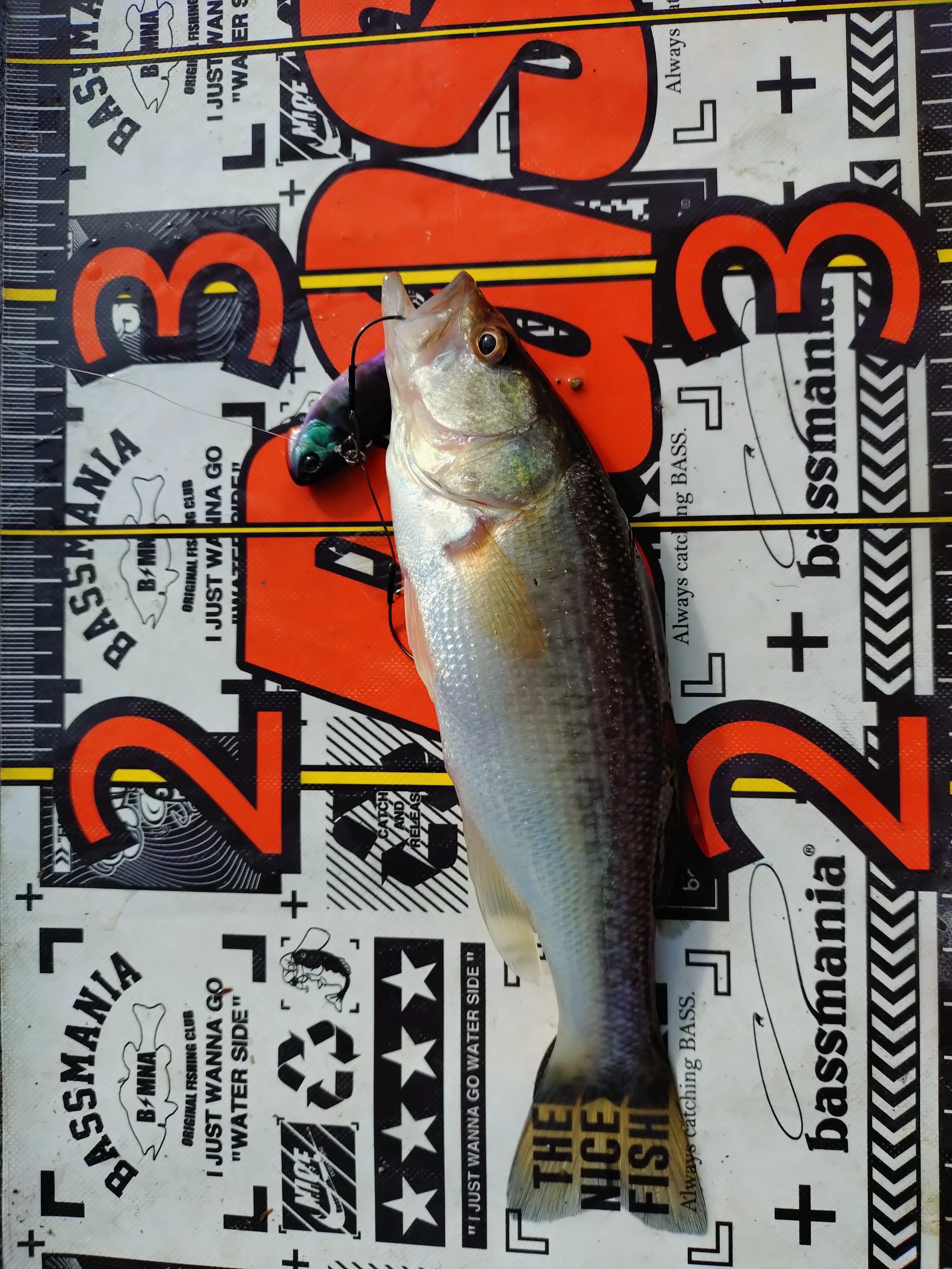 メタルバイブ系は様々な魚が釣れるので、上がってくるまでドキドキしながら水面まで巻き上げると、37cmのお腹ポッコリなバスが釣れてくれました(〃∇〃)