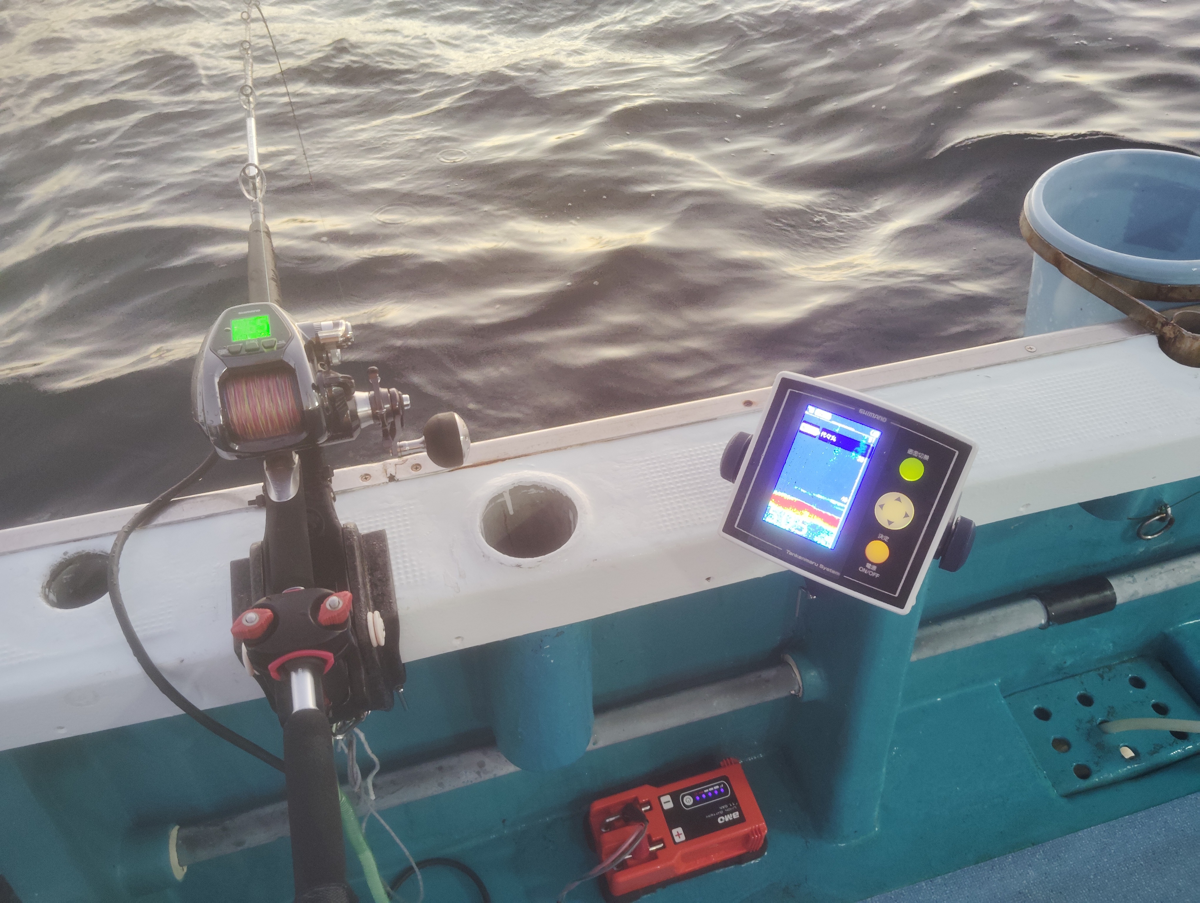 ベイトの反応は底から10m付近に集中していて狙いどころは絞れるものの、なかなか食わせられず大苦戦…。