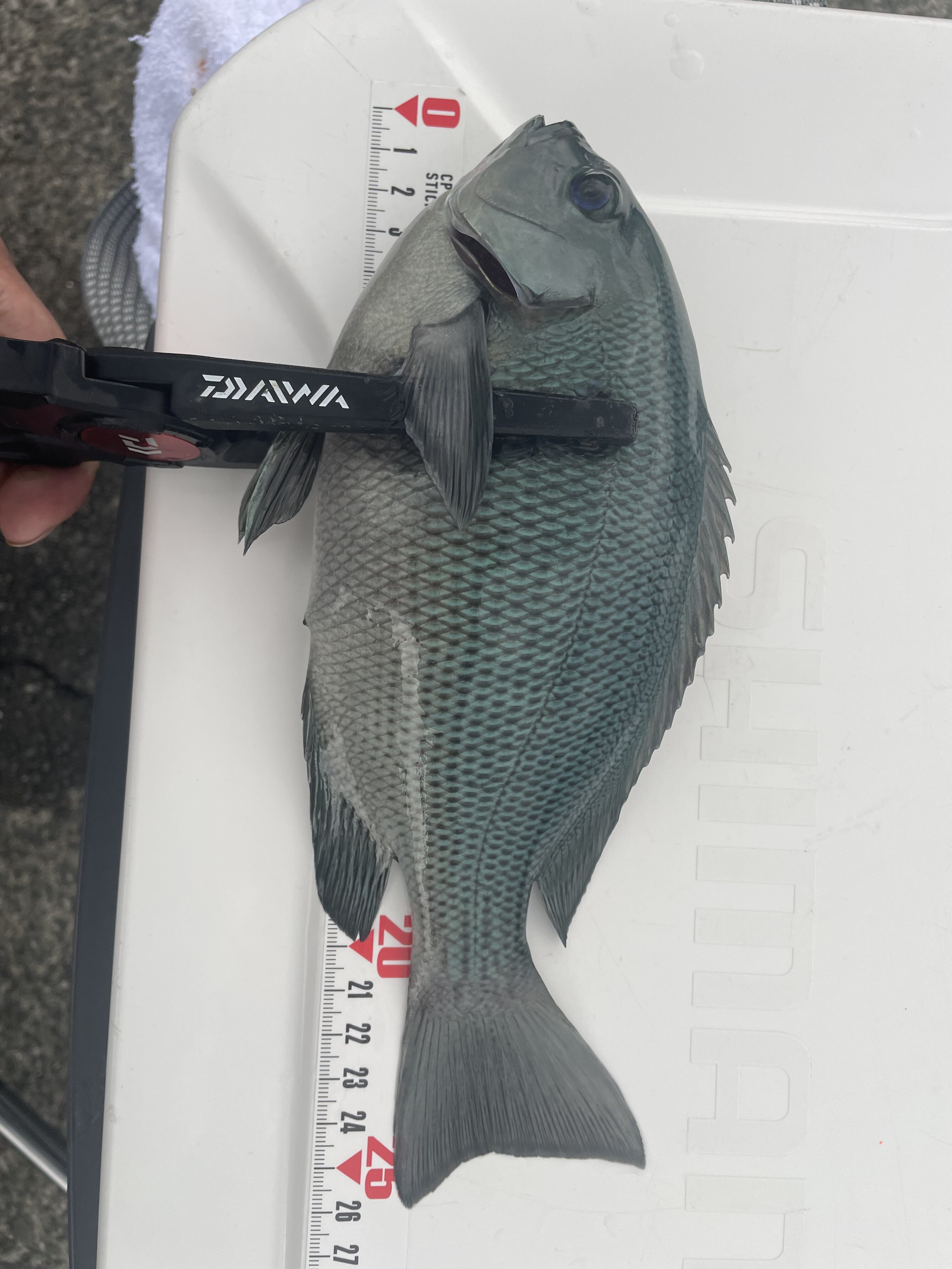 しばらく釣りを続けますが、全くアタリがないので少しハリスの長さを長くしてみると、ウキにアタリが出るようになりました😊カゴ釣りはちょっとした仕掛けの工夫で釣果が変わるのが楽しいですね