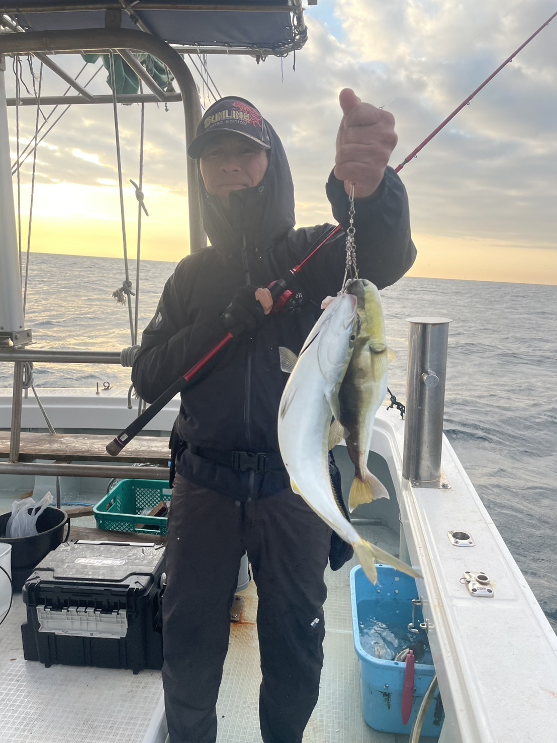 2025.12.04 印刷する トラフグ再挑戦 魚種 フグ サイズ 40センチ前後 数 サメ2、サバフグ4,青物1 釣り方 ☆その他海釣り 場所 三重県 天候 曇り スタッフ 鍾宥杰 店舗 堺店 釣行日 2025.12.01 コメント つり具のブンブン堺店の鍾宥杰です。 本日、再び三重県鳥羽市の魚勘丸さんへ行って参りました。 もちろんトラフグの再チャレンジです。 前回はトラフグ2匹の釣果でしたが、今回はちゃんと5匹までを揃いたいのでたくさんの種類のエサを用意して来ました。サンマとイワシとサバとイカの切身などなど。 最近の情報によると、イワシの方がいいということで、イワシの方が多めに用意しました。 6時くらいに出船、ポイント着いた時にまた暗いので、ライトアップをして頂いて、釣りを開始していました。但し暗いうちに当たりはほとんどなかったです。 約7時ぐらいに朝日が出て、魚の反応も少しずつ出て来ました。そして、竿先に強いコンコンという連続の当たりがあって、すぐに合わしたら、魚がかかりました、強い引きで、大きいトラフグかと思いきや、サメでした。 その後、船中の皆様も次々魚をゲットしましたが、全部サバフグと外道ばかりでした。 約2時間後、ポイント移動しても、同じサバフグのみでした。 結果は船中の皆さんはサバフグ多数、トラフグは1匹のみでした。本日のトラフグはお休みみたいので顔は見れなかった。 またリベンジします。宜しくお願いします。 使用した釣具 ロッド メガバス 8P-FUNE 178-2 リール バサルVT73L
