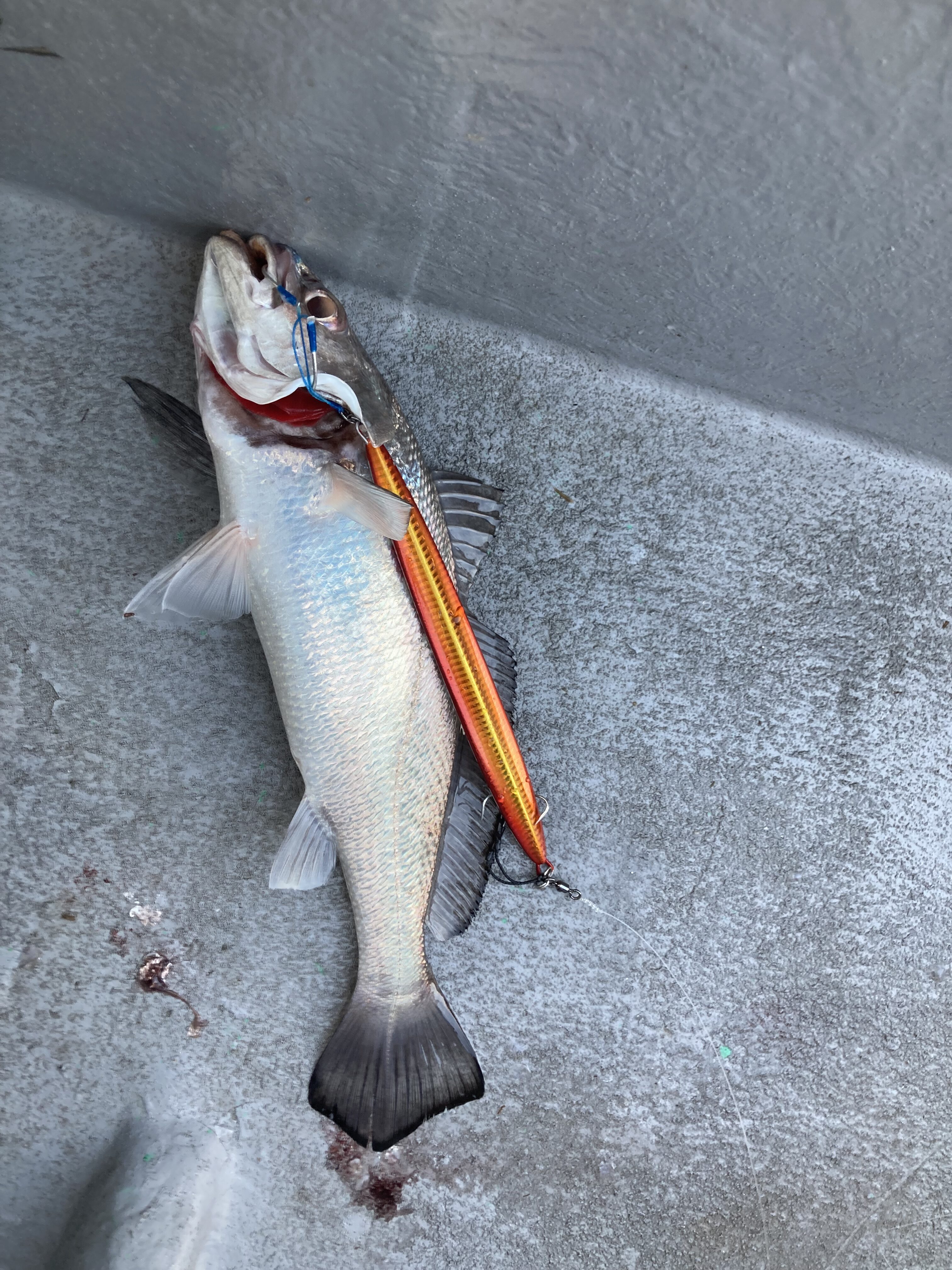 2025.12.04 印刷する 紀北のジギング&クログチ釣り! 魚種 ブリ/メジロ/ワラサ/ハマチ/イナダ/ツバス/ワカシ 数 メジロ/3匹、クログチ/6匹 釣り方 ☆ジギング 場所 和歌山県 天候 はれ/あめ スタッフ 森本 龍希 店舗 リンクスウメダ店 釣行日 2025.11.27 コメント 今日は太刀パターン開幕ということで、青物&クログチ狙いでいってきました! 今回乗る船は「MCL」さんです。 6時出船でポイントまで30分前後 いつもの友ヶ島付近で最初はクログチから! ジグのリアにイカを付けてベタ底を狙っていきます。 底に着いたら少しシャクってベタ底を根掛からないようにキープ! 上げすぎはあまり食ってこないので、ステイ多めの誘いでやっていくと… 早速ヒット! 上がってきたのは… クログチくん! ファーストヒットからの順調に次々とキャッチ! 周りはイカ餌以外にも、鯖の切り身でもヒットしてるので、今回は餌の種類はあまり関係ないくらい高活性なイメージでした! お次は青物ジギング! ブリもサワラもいるとのことなので期待が大です! タチパターンなのでガラパゴスのメタルジグロングタイプ230gからスタート! 底付近に反応があるので底から少しシャクってロングフォールを意識してアピールしていきます すると…… 糸ふけが止まりと素早く糸ふけを回収してヒット!! 上がってきたのは…… メジロくんでした! この後もパターンにハマり3本追加! 他の人もブリやらサワラやら釣れていい感じです! 満足のいく釣果でした! まだまだ釣れるので行くなら今がオススメです! 使用した釣具 ロッド ・シマノ:20ゲームタイプJ B60-4 リール ・シマノ:グラップラー300HG ライン PE2号 リーダー 40ポンド ジグ ガラパゴスのメタルジグロングタイプ230g、メジャークラフト:スロージグ300g 餌 イカ