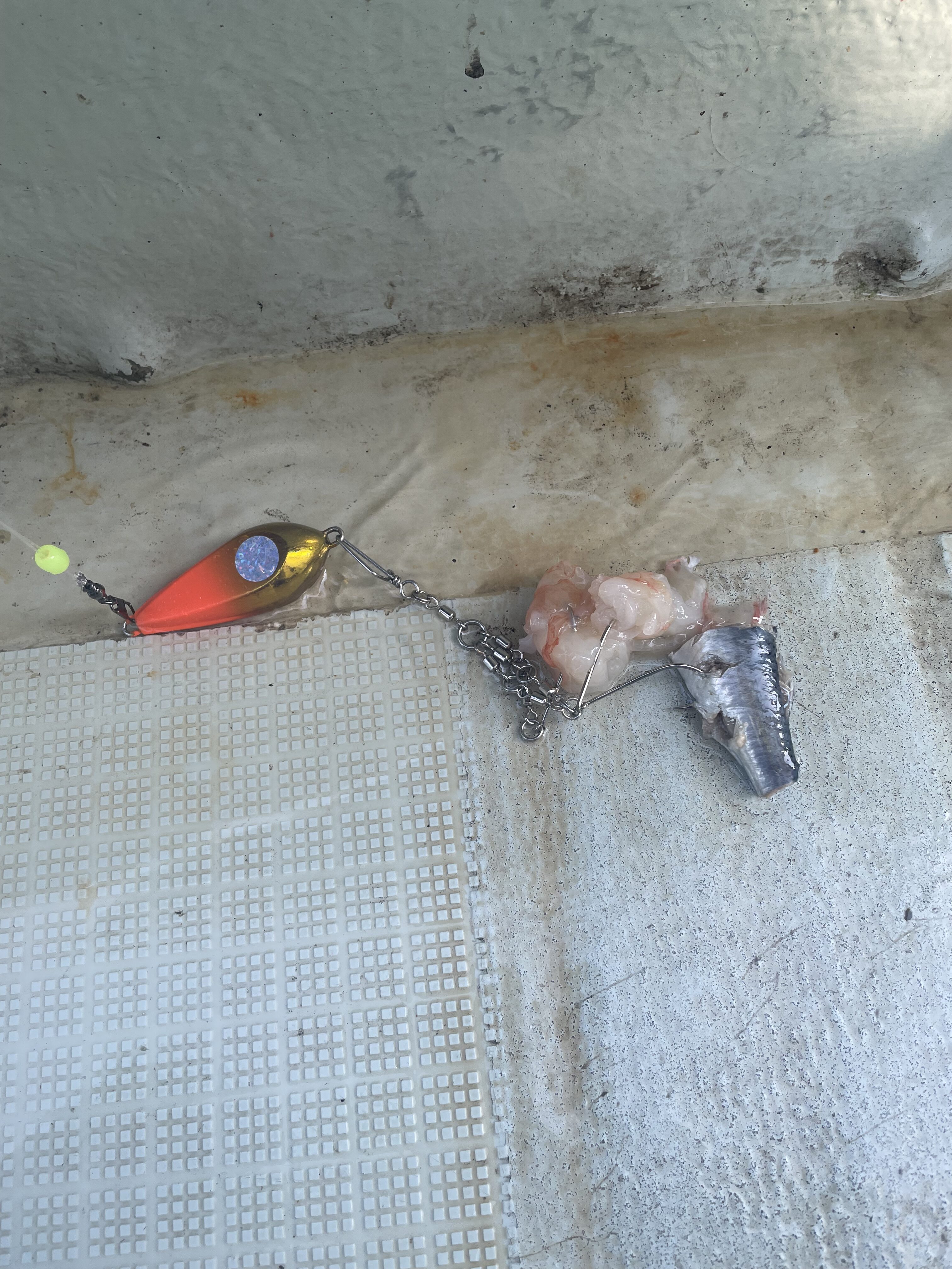 ポイントに着き仕掛け投入。底まで落として少しだけ巻いて待ってみます。。。が、反応なし。誘ってみますが反応なし(´;ω;`) たとえトラフグが釣れなくても何か魚を持って帰りたい。。。 始まったばかりなので焦らず頑張ろう!ってな感じで続けていきました。
