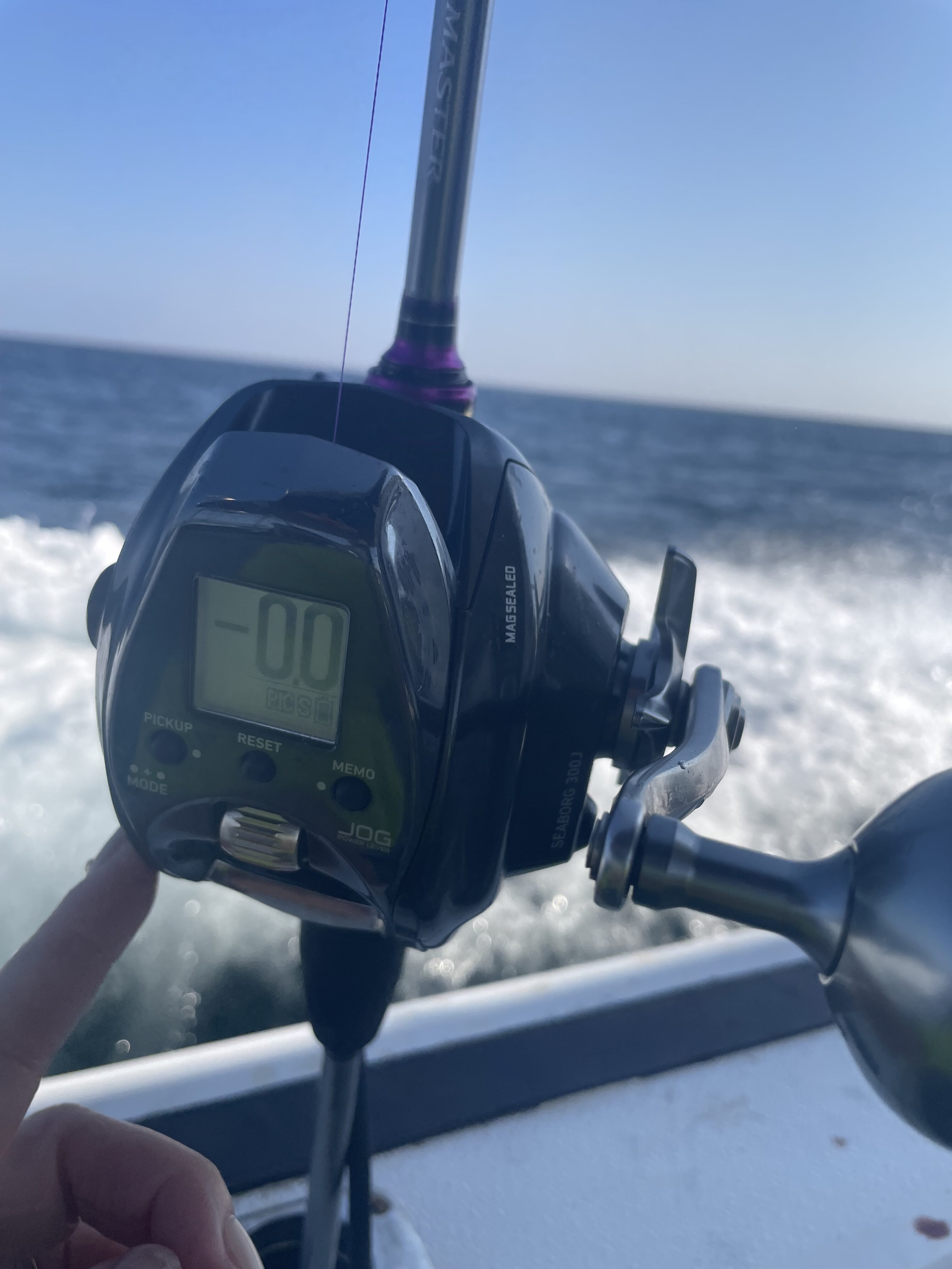 そんな感じでやってると誘ってる最中にグッと重くなり「何か掛かった!」と。電動リールを巻こうとしますが加減がわからず早いスピードで巻いてしまい結果スンと軽くなり魚はゲットできず。