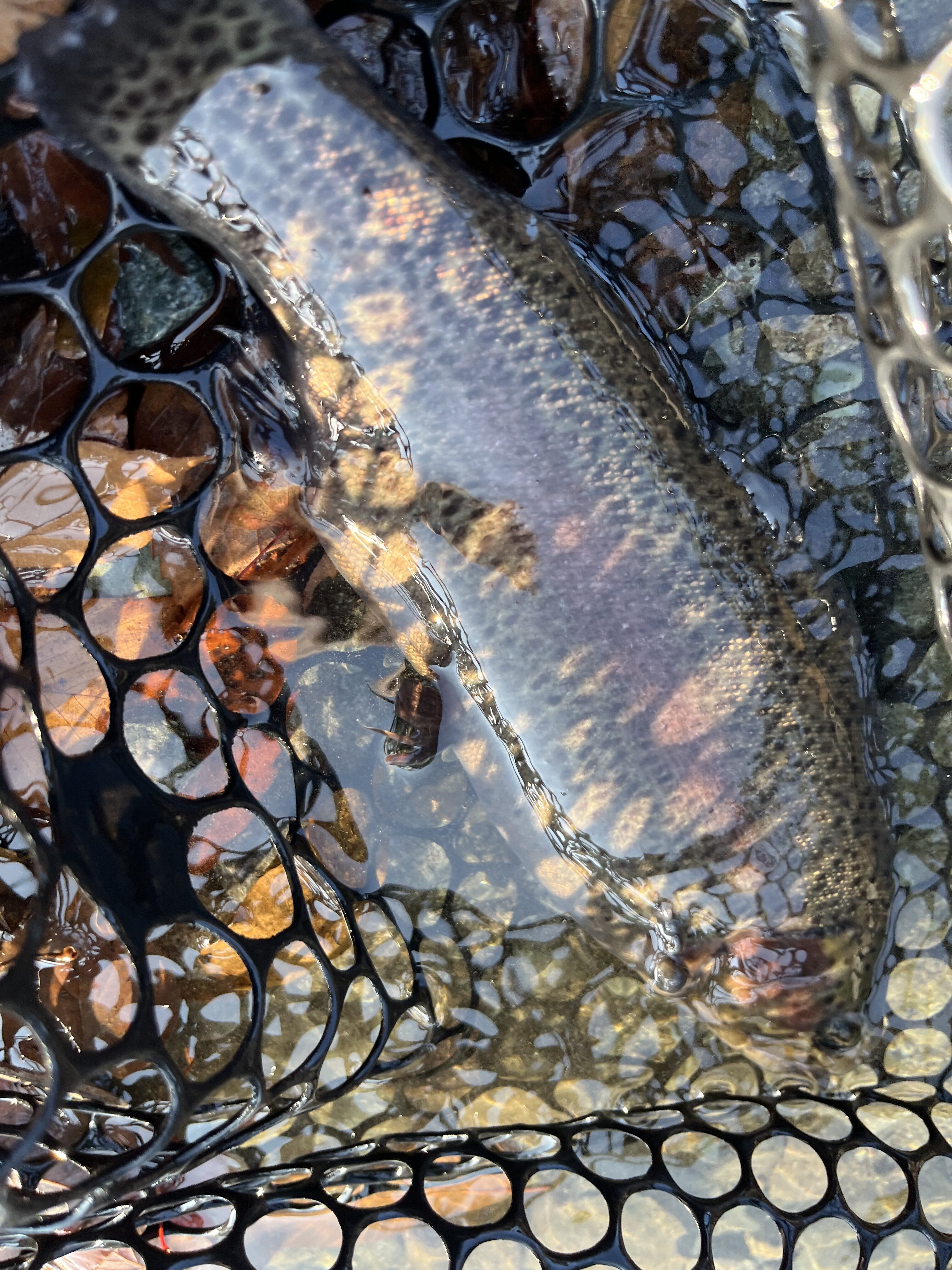 2025.12.05 印刷する 今季初エリアトラウト 魚種 イワナ ニジマス/レインボートラウト ヤマメ 釣り方 ☆エリアトラウト 場所 神奈川県 スタッフ 陶山蓮 店舗 川崎大師店 釣行日 2025.12.03 コメント 今季初の裏丹沢渓流釣り場へ行ってきました! 朝イチからinしてこの日はミノー縛りで釣りをすることに 先発はDDパニッシュ65F 朝イチなので活性高めの個体を狙い撃ちする事に 数頭してるとやる気のあるヤマメがアタック開始 開始早々にいいコンデションのヤマメをキャッチ その後もパニッシュでやる気がありそうな個体を狙い撃ち続行 少し陽が出てからは沈んでやる気のなくなったやつの目の前に高速巻きとジャークでリアクションバイトを誘発 イワナやアルビノのデカい個体がヒット ただ巻きの釣りも楽しいですがこの日は完璧にリアクション特化で遊び切りました その後もデカめの個体を選んではリアクションの釣りで数を伸ばしていく 道中放流もあり、小さめの個体もたくさん反応してくれましたが最終的にデカいサイズを取り切って終了としました 基本的にはどのルアーでも釣れる釣りだと思っているので自分で縛りをつけてあげてやるのも新鮮でかなり楽しめました 使用した釣具 ロッド プレッソAIR リール ルビアスエアリティ