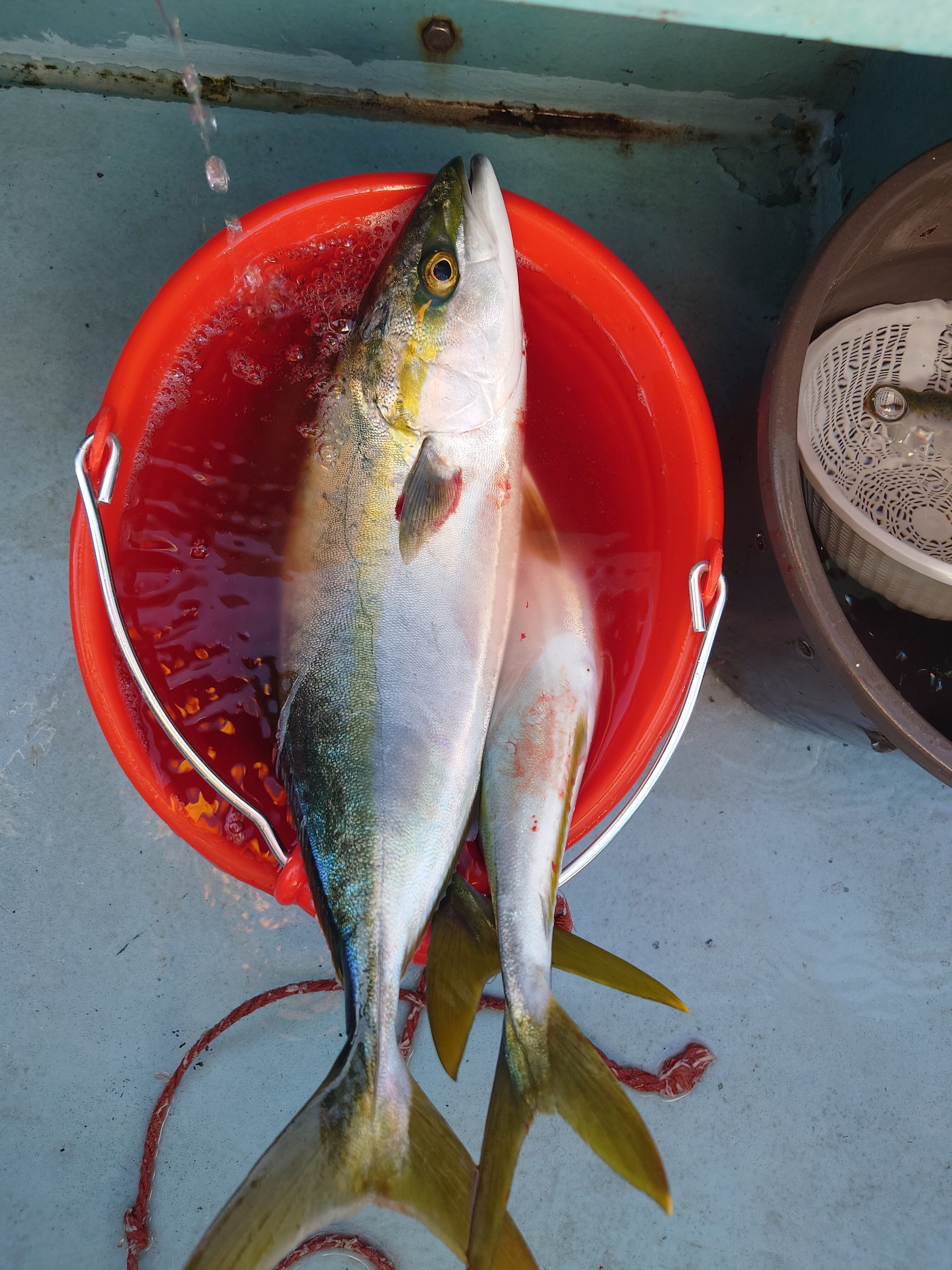 その後はハマチが船内あちこちで連れだし、私も1匹ゲット。