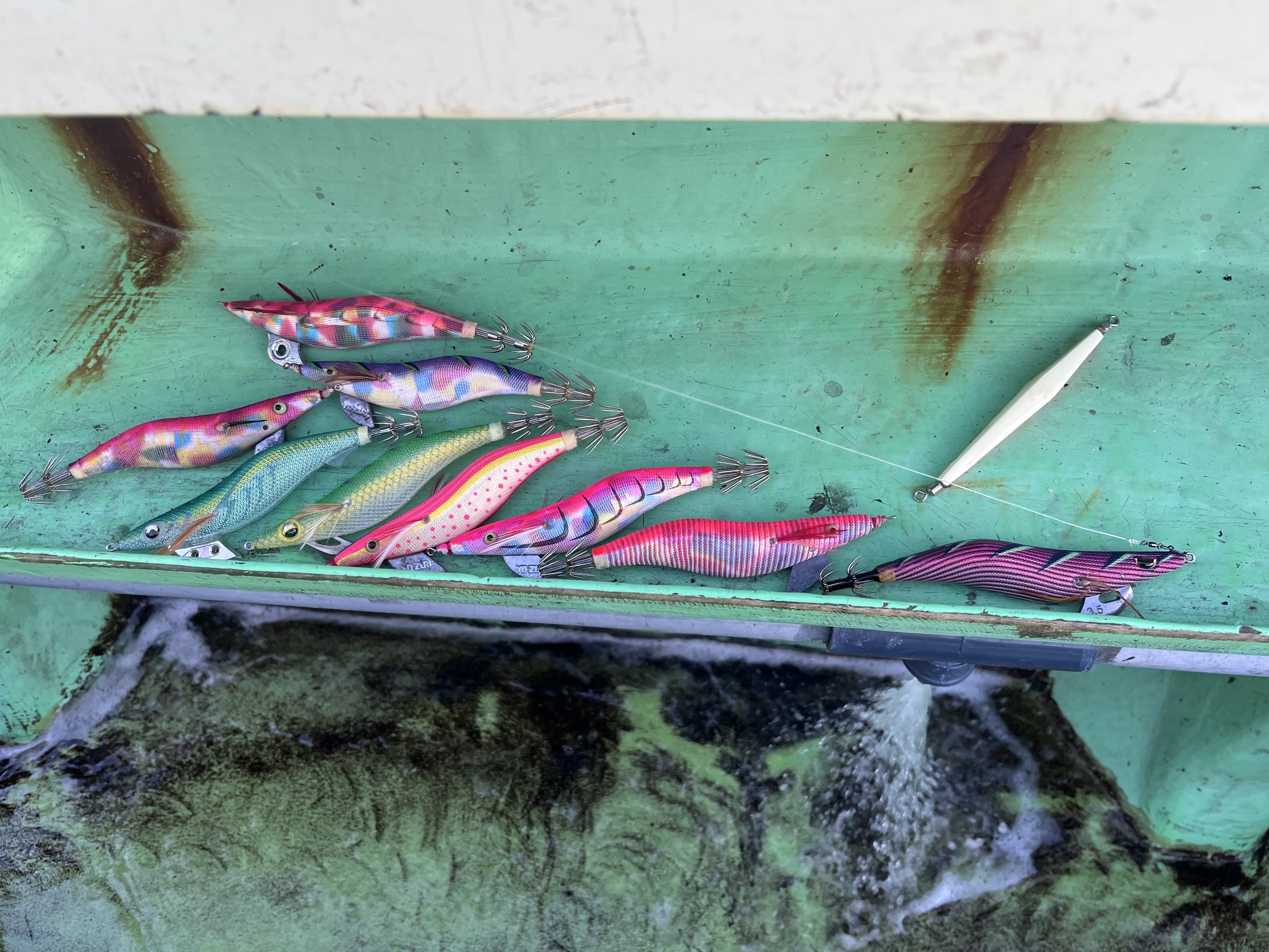 朝6時過ぎに出船…最初のポイントまではほんの僅かで投入の合図…川口さんに投入の仕方…指示棚まで落としたらシャクリの仕方…等々教わり最初は慣れず上手くシャクリが出来ずアタフタ…そうこうしてる内に右舷の方で船中初ヒットそしてその次は流石の川口さんにヒット✨ギュイーンと竿が曲がり本命アオリイカ✨凄いなぁー私も釣りたいなぁーと気持ちが高まります