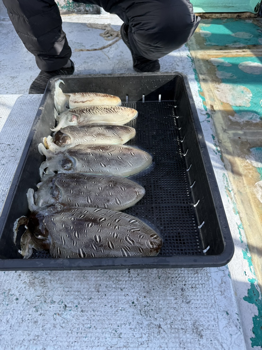 1投目からいきなり紋甲イカがヒット。その次も一瞬かかりましたがバラシ。活性が高そうですがその後は続きません。