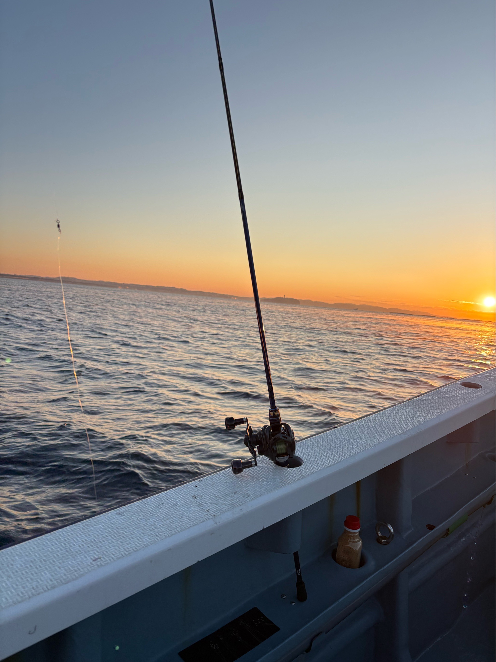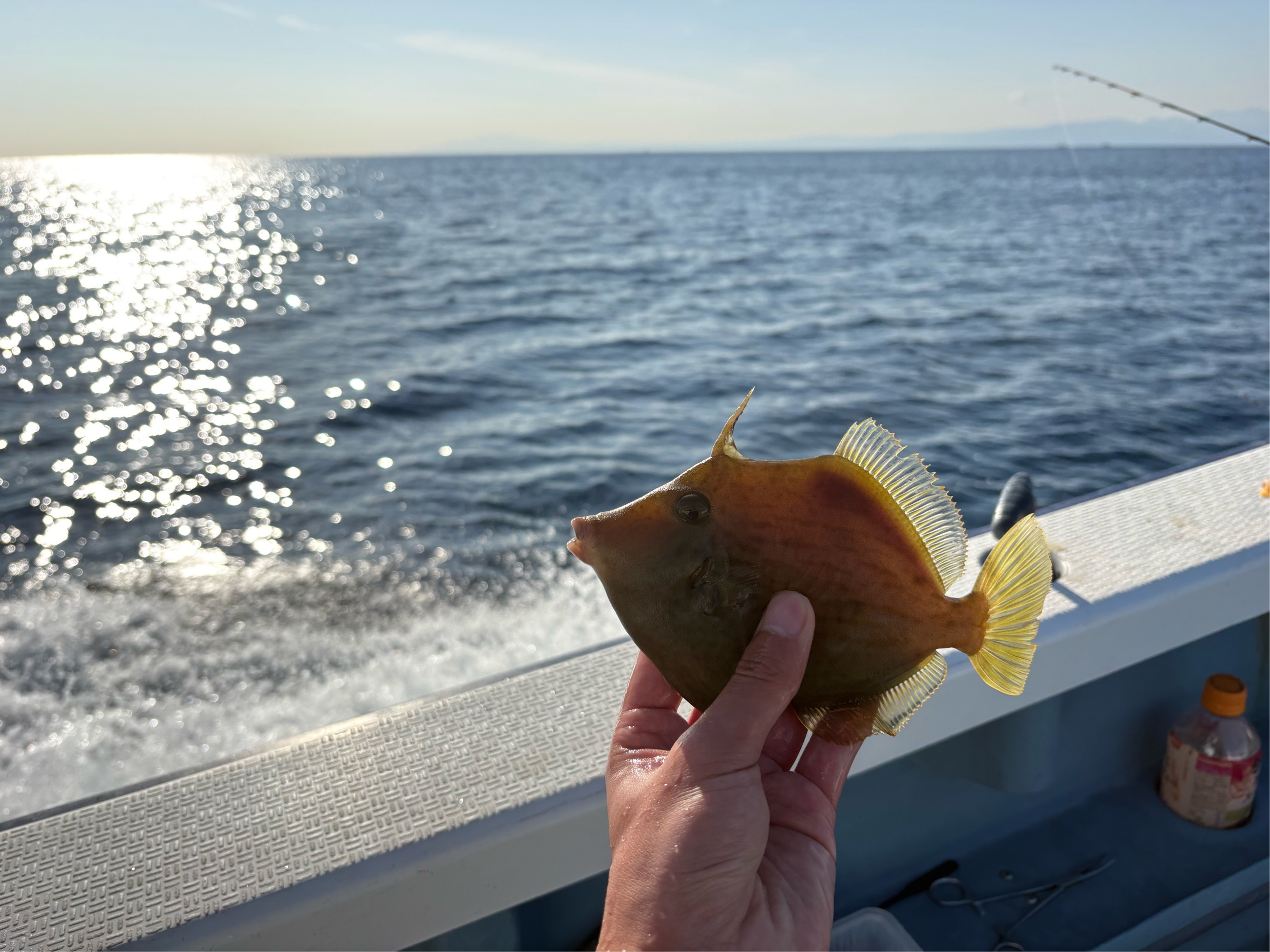 後半はまた腰越沖あたりを流しましたが、軽い中オモリを振ってもスカスカの潮のゆるさ。 最後の方は全体的に当たり止まってしまいましたが、終了間際にお隣の方がカワハギゲット!