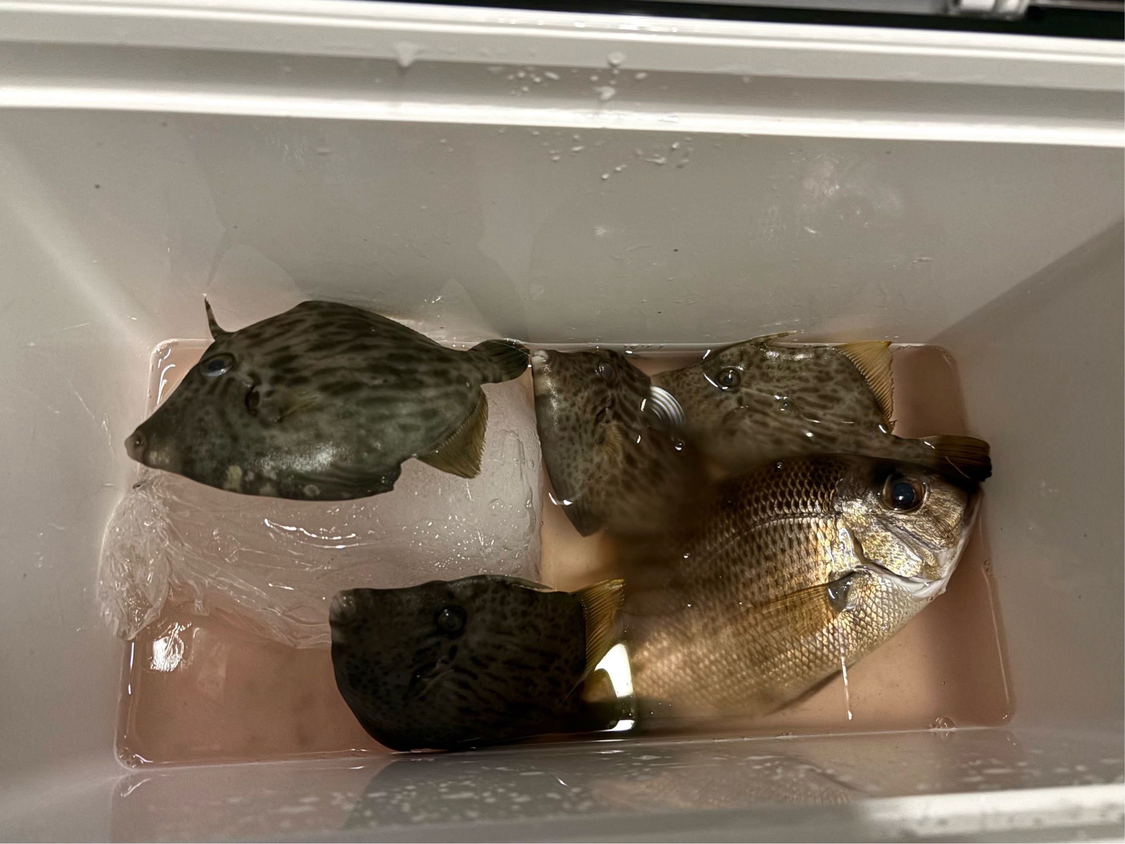 やはり宙で釣るべきだったような気はしますが、中オモリのサイズや個数、集寄の枚数を操作感の重さから調整して、ボトムメインに自分の得意な釣り方でなんとかカワハギを拾えた感じでした。