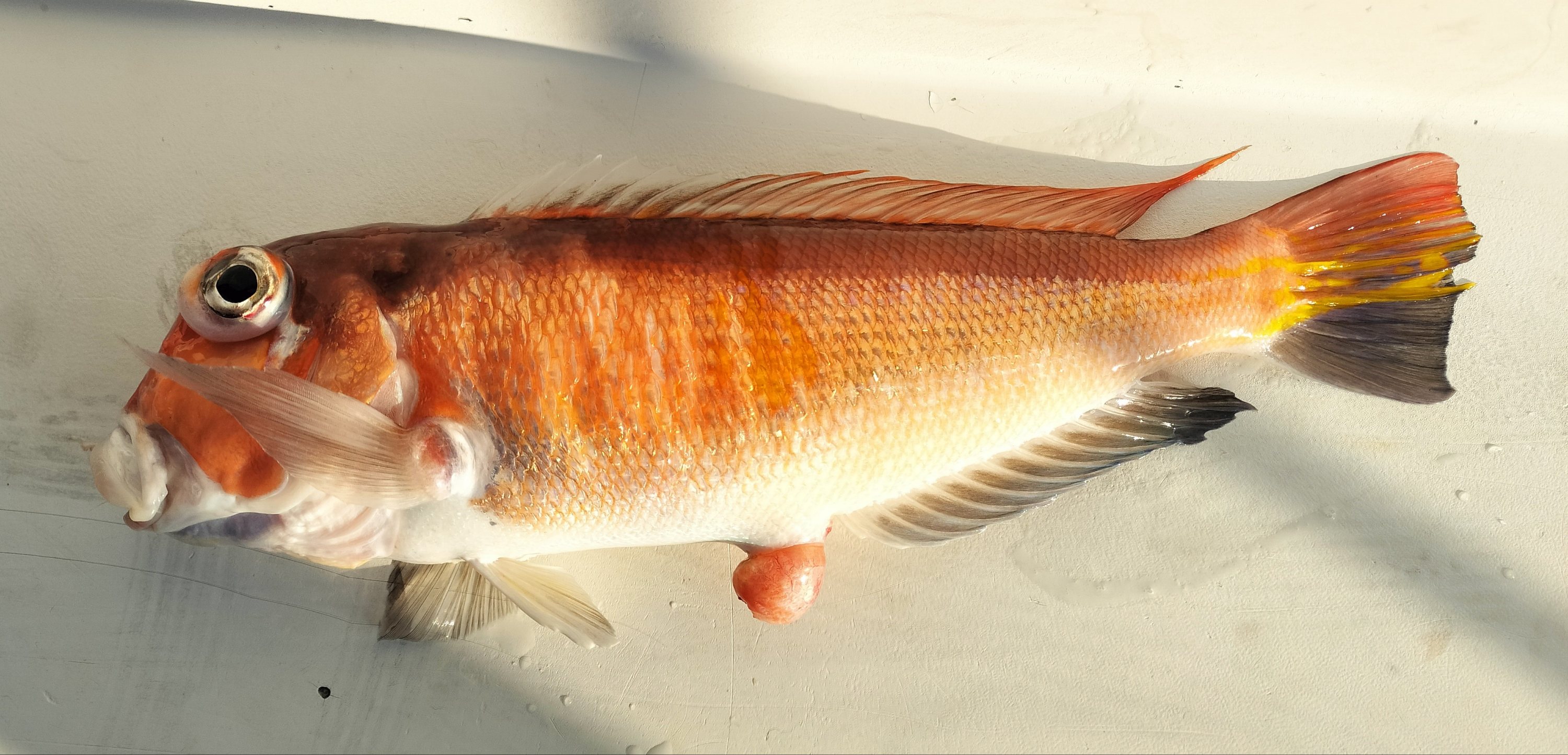 午前中に良型が混って特に反応の良かった漁礁周りを流すと、本命こそ口を使わずともソコイトヨリダイや良型のアマダイが姿を見せてくれたところでタイムアップ。