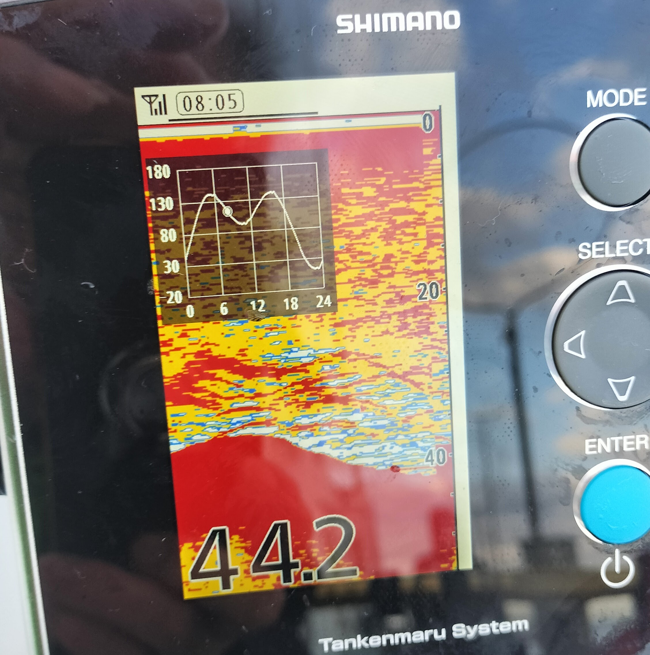 次の漁礁周りでは更に反応が良く、手元の探見丸にコマセを捕食するマダイが映し出されてアドレナリンが放出されるも状況は変わらず。