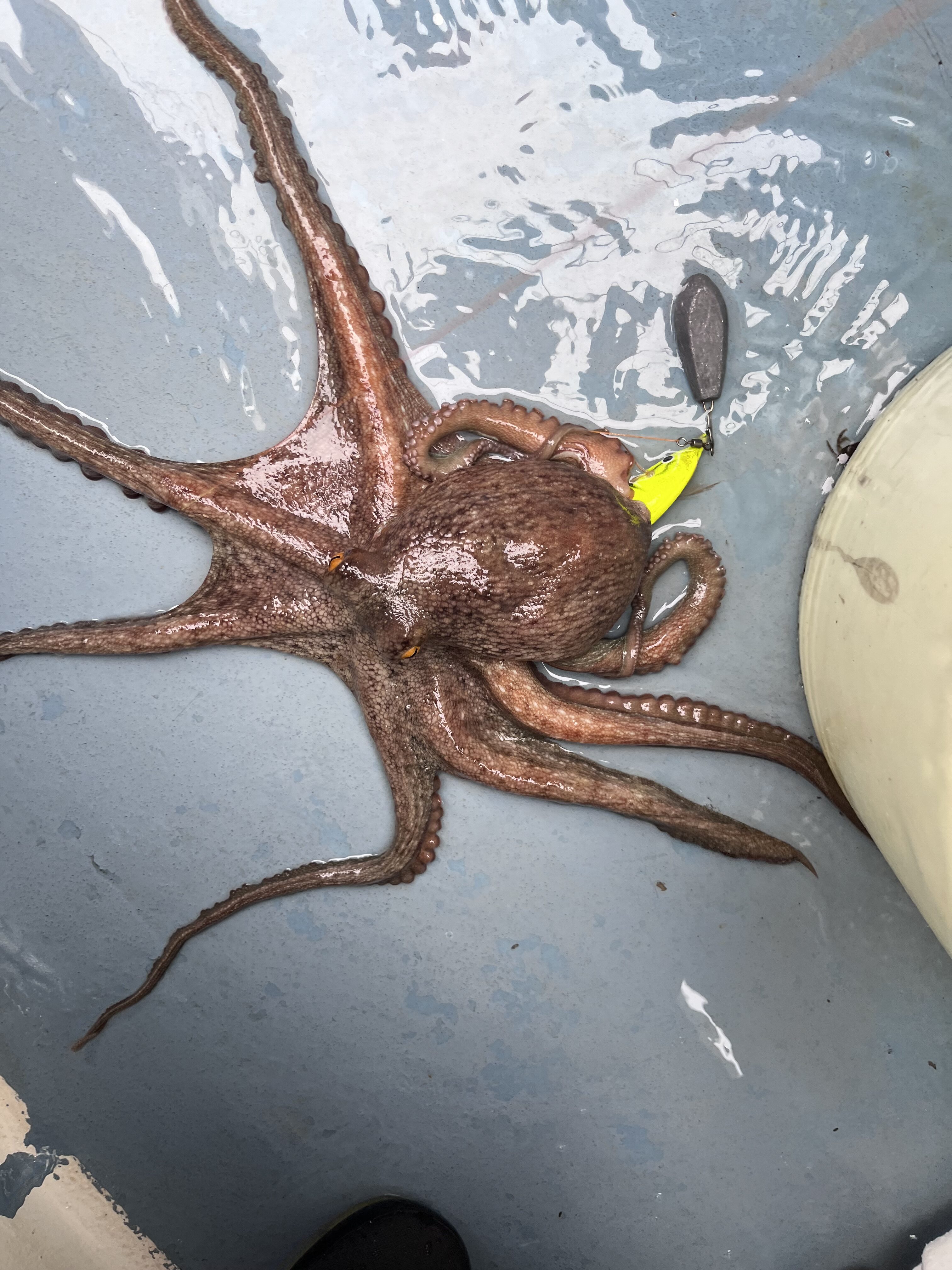 そんな中微かに根掛かりとは違うようなアタリが…上げてみると小ぶりながら本命タコ🐙来ました!!