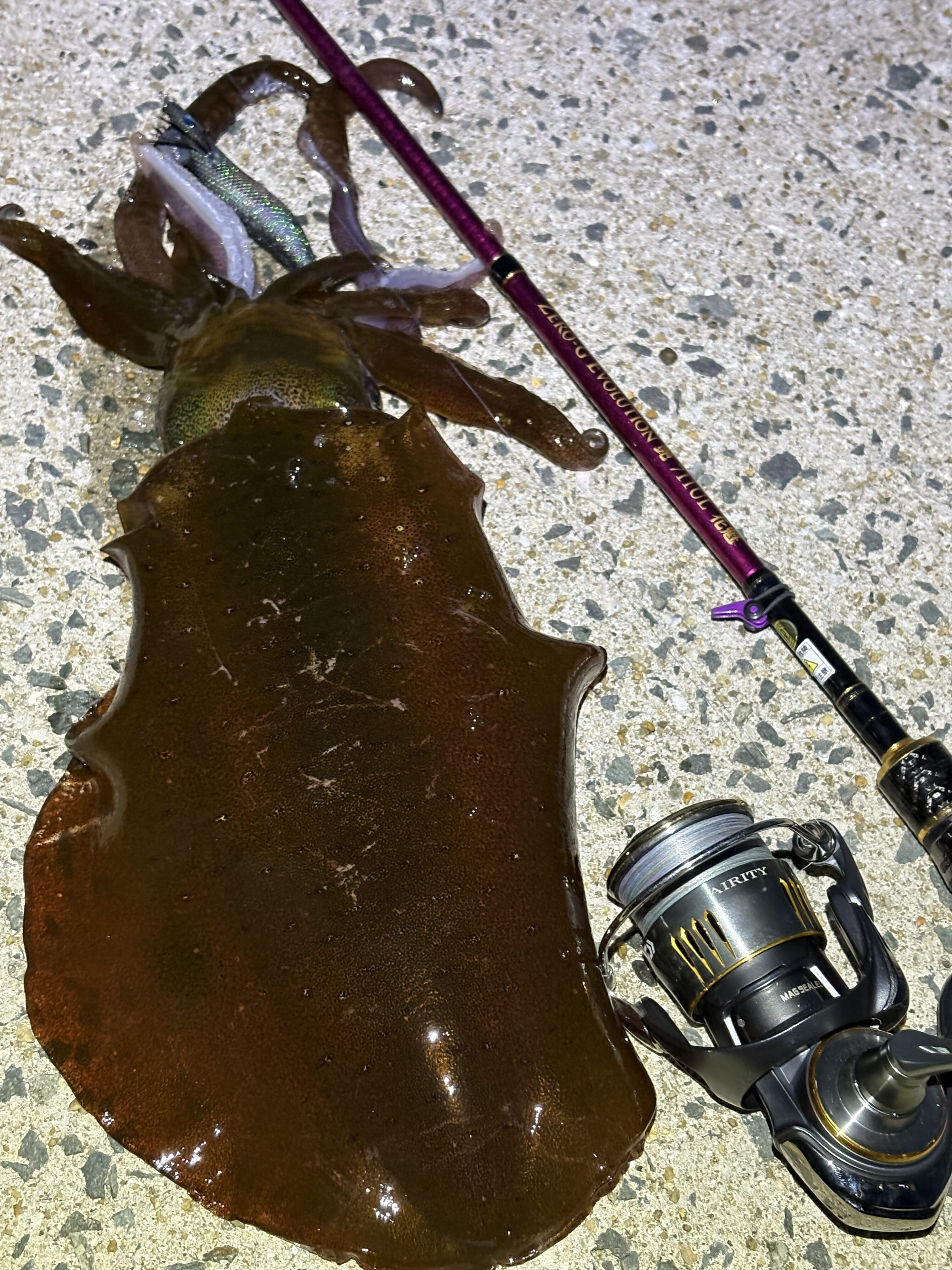 urocoさんのオイルブラックで700gくらいのアオリイカをキャッチ🦑!