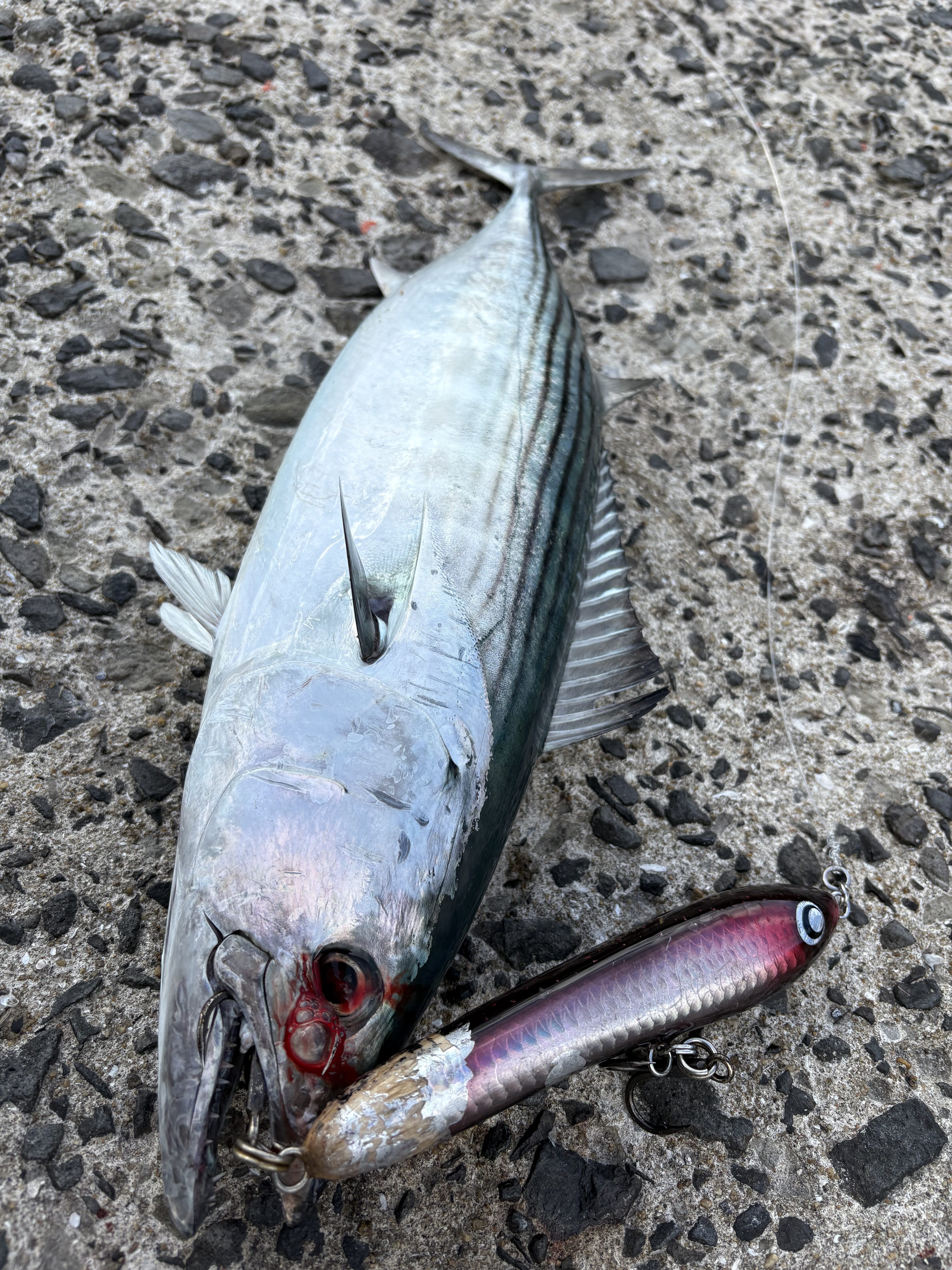2025.12.24 印刷する 五島列島釣行最終日 魚種 アオリイカ ヒラマサ サイズ 〜82cm 数 ハガツオ アオリイカ ヒラマサ 釣り方 ☆ショアキャスティング 場所 長崎県 スタッフ 大矢涼太郎 店舗 高槻店 釣行日 2025.12.22 コメント 高槻店大矢です! 五島列島、滞在5日目! 釣行最終日🎣 この日は夕方の便で島を出るので、早朝暗い時間から、エギングをして、午前中青物狙いのプラン! まずは4時〜7時までエギング🦑! 4〜6時まではなかなか、釣れませんでしたが、若干明るくなってきたタイミングでジアイ到来! urocoさんのオイルブラックで700gくらいのアオリイカをキャッチ🦑!その後連発で500gくらいのアオリイカ追加! そのタイミングで青物ができそうな明る佐になってきたので、青物狙いにチェンジ! BRS100MHMLにソルティガ5000H、PE3号のタックルでショアプラッキング🎣 風も吹いて波も立ち、雰囲気は抜群!、、、ですが朝マズメ、まさかの沈黙😭 もうダメかと思っていた納竿直前のお昼ごろ、何とハガツオの群れ到来!一緒に釣りに行っていた、島の人とダブルキャッチ!ルアーはScorpius170F美味しいお土産確保😋 その後、同行者にヒラマサがヒット!82cmとヒラ子でしたが、やっぱりヒラマサはかっこいい! この日の夕方の便で島を後にし、次の日ゆっくり大阪まで帰りました! 読んでいただきありがとうございました! 使用した釣具 竿 BRS100MHML リール ソルティガ5000H