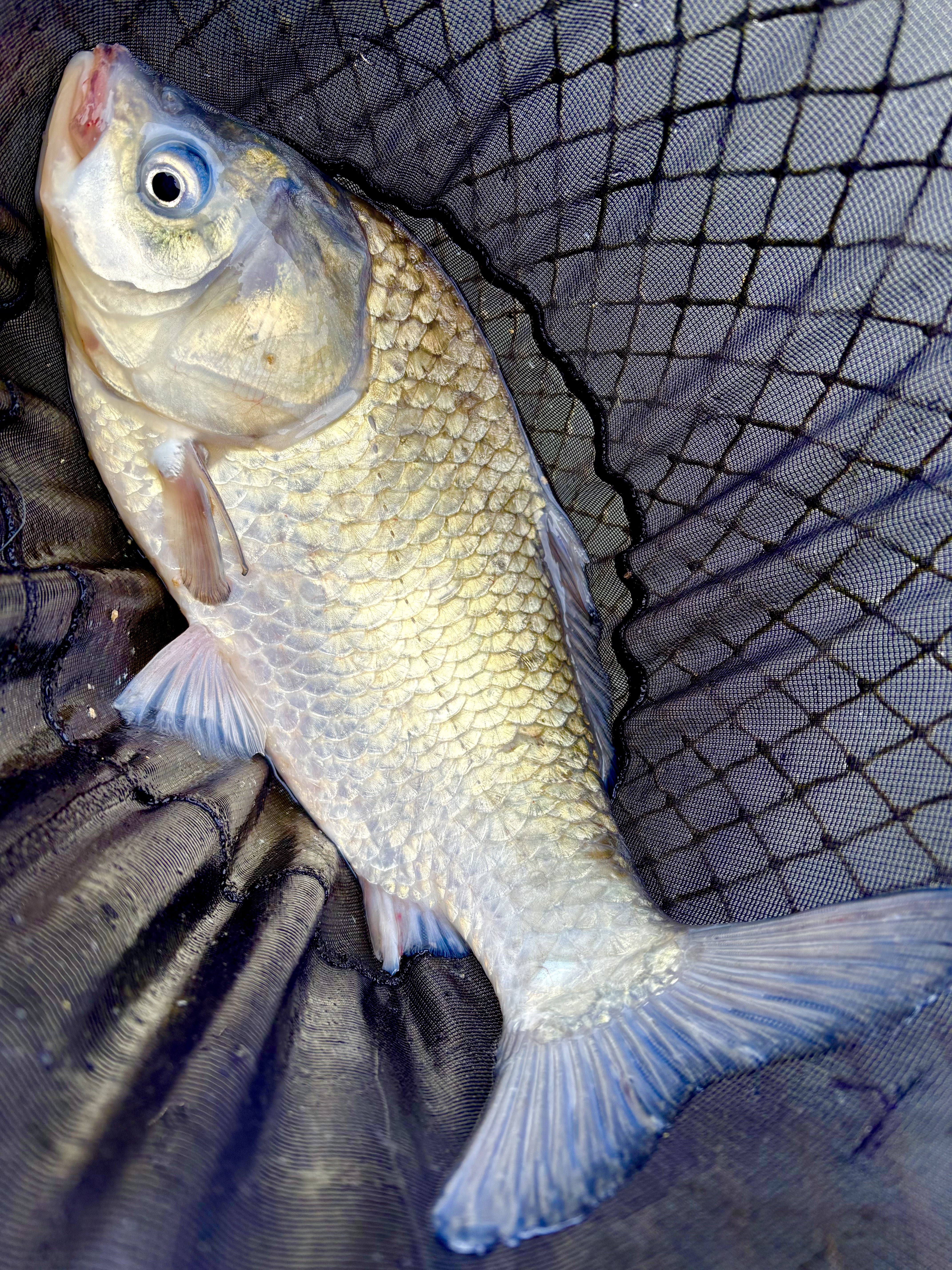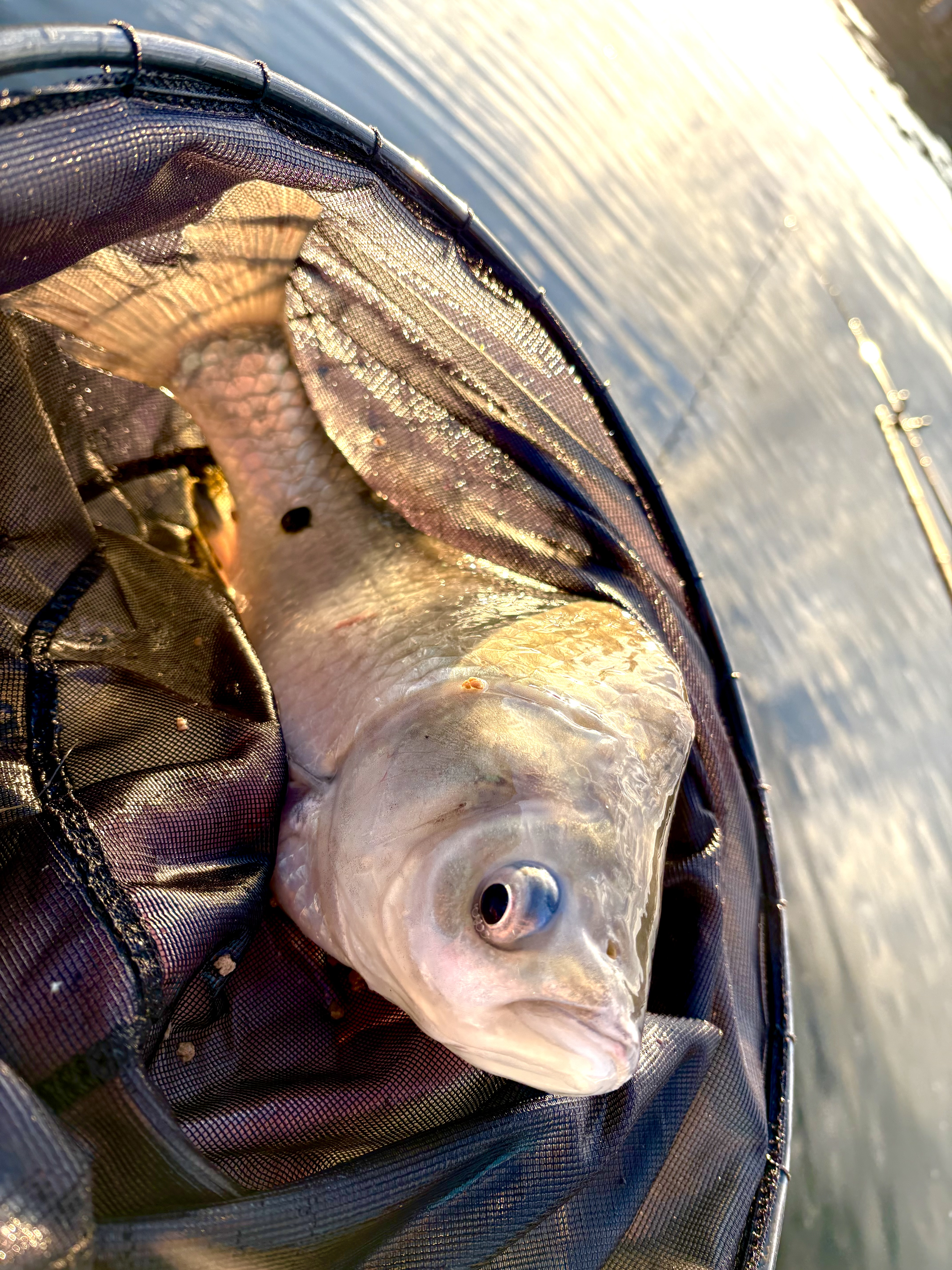 開始から1時間ほど。浮子が見にくいコンディションの中、ようやく待望のファーストフィッシュ!デコ回避です!